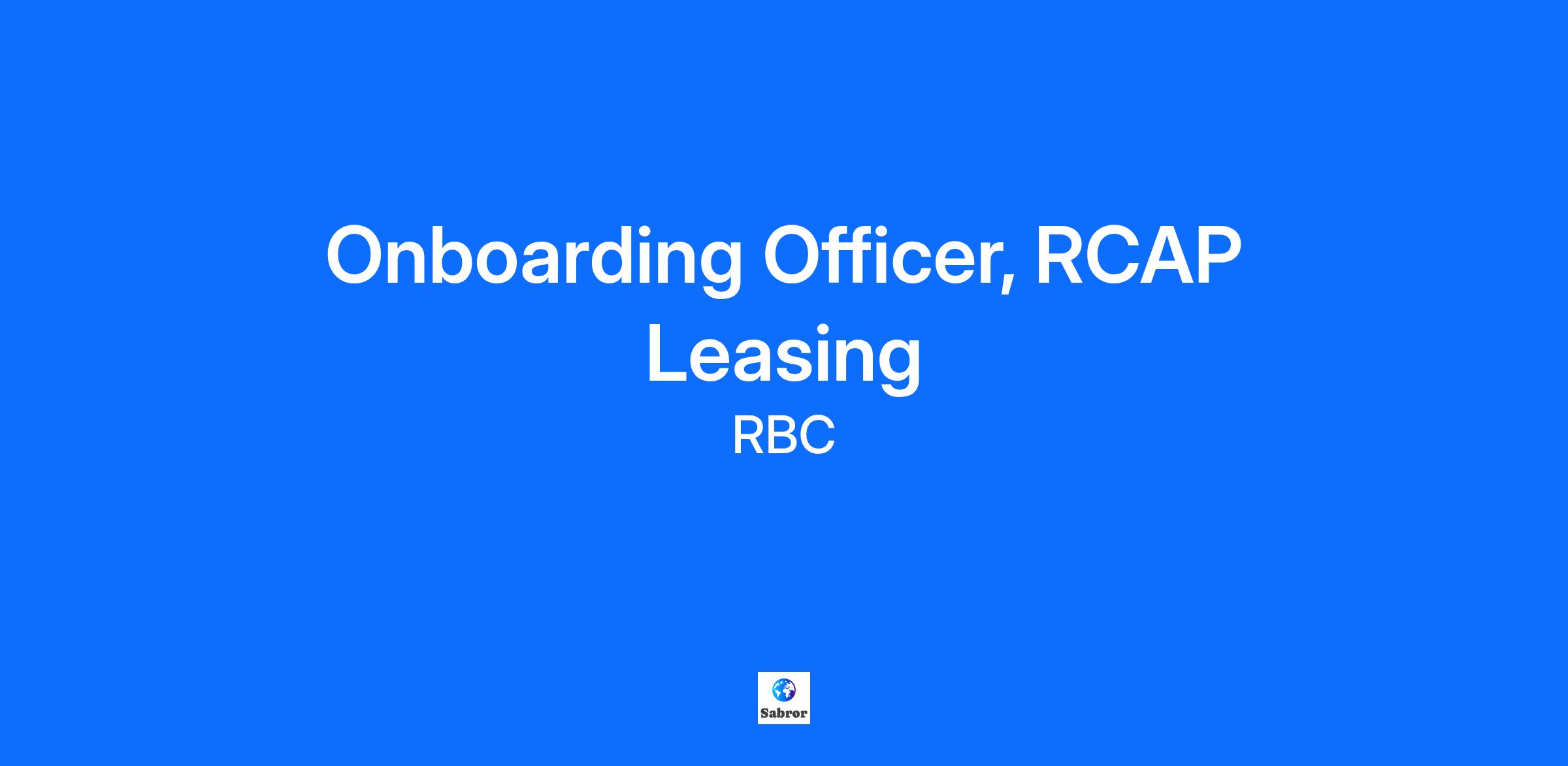 Onboarding Officer, RCAP Leasing