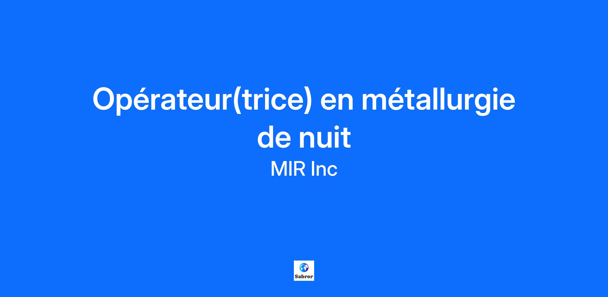 Notre partenaire industriel, une entreprise dans le domaine de l’aéronautique, recherche présentement un(e) opérateur en métallurgie pour joindre leur équipe. Les avantages : • Un programme complet d'assurance collective payée par l'employeur à 100% (médicale/dentaire/visuelle, invalidité court et long terme, voyages, compte crédit santé); • Un régime de retraite super compétitif où l'employeur contribue 7% si tu contribues 1%; • Programme de santé et mieux-être – remboursement 300$/an; • Banque d'heures; • Journées de maladie / familiales; • Prime d'assiduité; • Un programme de partage de profit annuel (max 3500$/an); • Vêtements de travail fournis (incluant nettoyage); • Une formation structurée pour t'aider à acquérir les compétences nécessaires à ton poste; • Une usine avec des technologies et des équipements modernes; • Une entreprise avec de hauts standards en matière de qualité, de santé-sécurité, d'environnement, d'éthique et d'expertise technique; • La chance de travailler avec des gens de talent qui partagent des valeurs de respect, d'intégrité et de collaboration; • Un milieu qui valorise et reconnaît l'innovation. Responsabilités : • Préparer et effectuer le montage des pièces; • Effectuer les opérations de traitement thermique ou de grenaillage à billes; • Effectuer les tests de laboratoire (dureté, traction, saturation); • Effectuer les inspections par essais non-destructifs (magnétoscopie et/ou liquide pénétrant); • Détecter et résoudre des problèmes techniques; • Effectuer l'inspection visuelle pour assurer la conformité aux spécifications; • Compléter la documentation d'Assurance qualité appropriée; • Contribuer à l'amélioration continue des opérations et à l'atteinte des objectifs en termes de sécurité, qualité, coûts, livraisons à temps. Exigences : • Études collégiales en métallurgie (DEC ou AEC) ou DEP en fonderie, DEP en montage mécanique en aérospatiale ou en montage de structure en aérospatiale, DEP en soudage-montage ou expérience équivalente à titre d'opérateur métallurgie; • Expérience en métallurgie; • Connaissances informatiques (de base); • Minutie / Rigueur; • Esprit d'analyse; • Initiative; • Autonomie; • Sens de l'organisation / Gestion des priorités; • Axé résultats. Conditions de travail : • Poste permanent de nuit, 40h/semaine; • Horaire du lundi au vendredi de 00h10 à 06h40; • Offre salariale : 30,13 à 45,50$/h, selon l'expérience; • Prime de nuit : 1$/h; • Poste en présentiel. Veuillez noter que seuls les candidat(e)s retenu(e)s seront contacté(e)s. Site Internet : http://www.mirinc.ca #mi1234