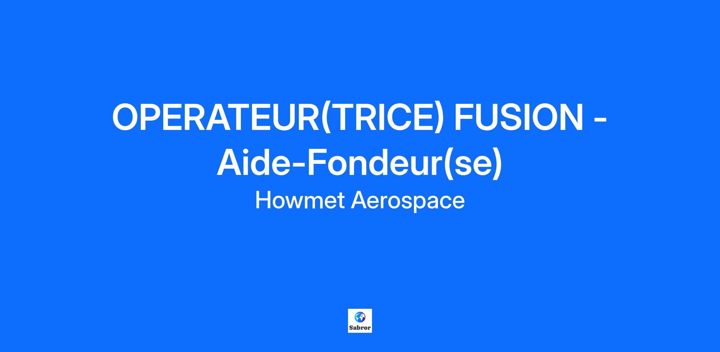 OPERATEUR(TRICE) FUSION - Aide-Fondeur(se)