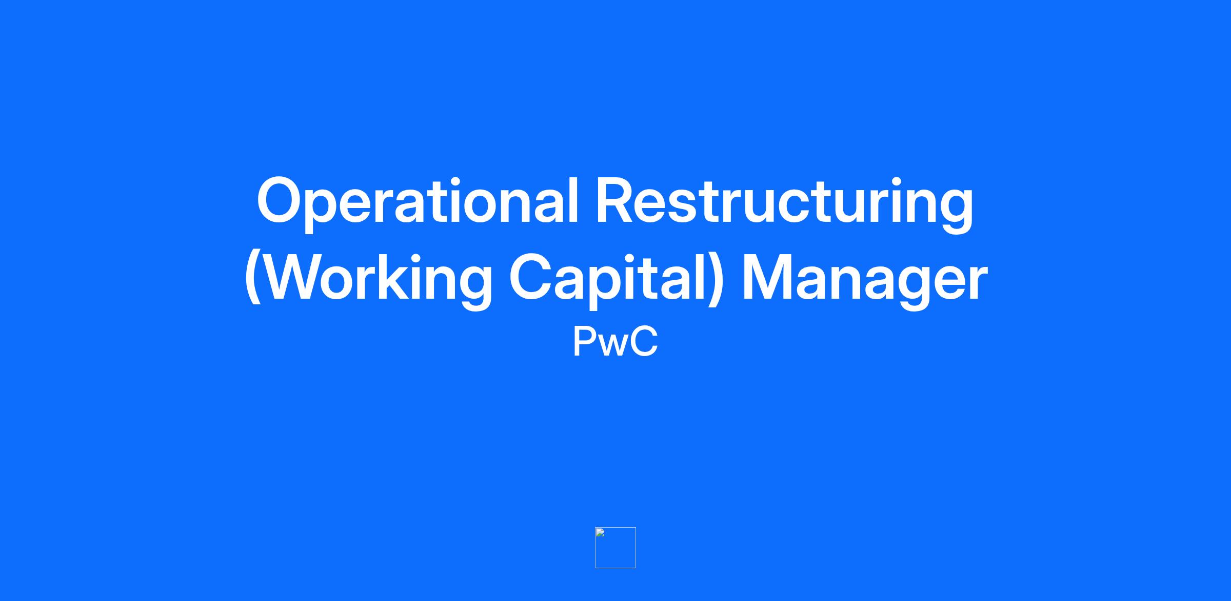 Line of Service Advisory Industry/Sector Not Applicable Specialism Deals Management Level Manager Job Description & Summary About the role: Our specialist Working Capital team is part of our broader Operational Restructuring team within Value Creation and Realisation. We work closely with our clients to develop sustainable solutions to free up cash from our client’s balance sheets. Our skills and knowledge are applied and gradually transferred to improve working capital management, leaving clients with sustainable performance improvement. As a Manager you will work with cross-functional stakeholders across many different Industries. You will be responsible for the assessment of current performance and leading change and transformation efforts. You will lead specific work-streams of projects and manage operational client stakeholders on a day to day basis. What your days will look like: You will focus mainly on working capital improvement areas matching your previous experience and expertise, including Reviewing the operational and financial performance of Inventory, Accounts Receivable and Accounts Payable Understanding key business processes, procurement and supply chain, and operational working capital challenges Financial analysis of opportunities for working capital reduction, within context of commercial requirements of the business Assessment of operational and management teams within an organisation, identifying skill gaps and training needs The role is for you if you have: Previous experience in Supply Chain, Credit Management/Receivables and Procurement roles, or Working capital consulting experience in the UK or continental Europe Experience in engagements to improve supply chain management, procurement, buying, collections management, inventory reduction or general working capital optimisation Good end-to-end understanding of flows of goods and services, information and money and how different functions cooperate internally and externally Sound financial analysis skills Strong commercial awareness and business analysis skills Proficiency in analytics and visualisation tools, such as Alteryx, Tableau or Power BI (is beneficial but not necessary) What you’ll receive from us: No matter where you may be in your career or personal life, our benefits are designed to add value and support, recognising and rewarding you fairly for your contributions. We offer a range of benefits including empowered flexibility and a working week split between office, home and client site; private medical cover and 24/7 access to a qualified virtual GP; six volunteering days a year and much more. Education (if blank, degree and/or field of study not specified) Degrees/Field of Study required: Degrees/Field of Study preferred: Certifications (if blank, certifications not specified) Required Skills Optional Skills Accepting Feedback, Accepting Feedback, Active Listening, Analytical Thinking, Bankruptcy Analysis, Bankruptcy Code, Bankruptcy Management, Bankruptcy Restructuring, Business Liquidations, Cash Flow Analysis, Client Management, Coaching and Feedback, Communication, Conducting Research, Corporate Development, Corporate Finance, Corporate Management, Creativity, Data Rooms, Debt Restructuring, Embracing Change, Emotional Regulation, Empathy, Financial Modeling, Financial Review {+ 17 more} Desired Languages (If blank, desired languages not specified) Travel Requirements Not Specified Available for Work Visa Sponsorship? Yes Government Clearance Required? No Job Posting End Date Are you ready to make a difference? Want to unlock new value by applying your unique perspective and talents? You can grow exponentially at PwC. Here, you can uncover hidden talents, build lifelong relationships rooted in trust and empathy and turn challenges into opportunities for innovation. We’ll help you grow your skills through challenging, meaningful work so you can go further.