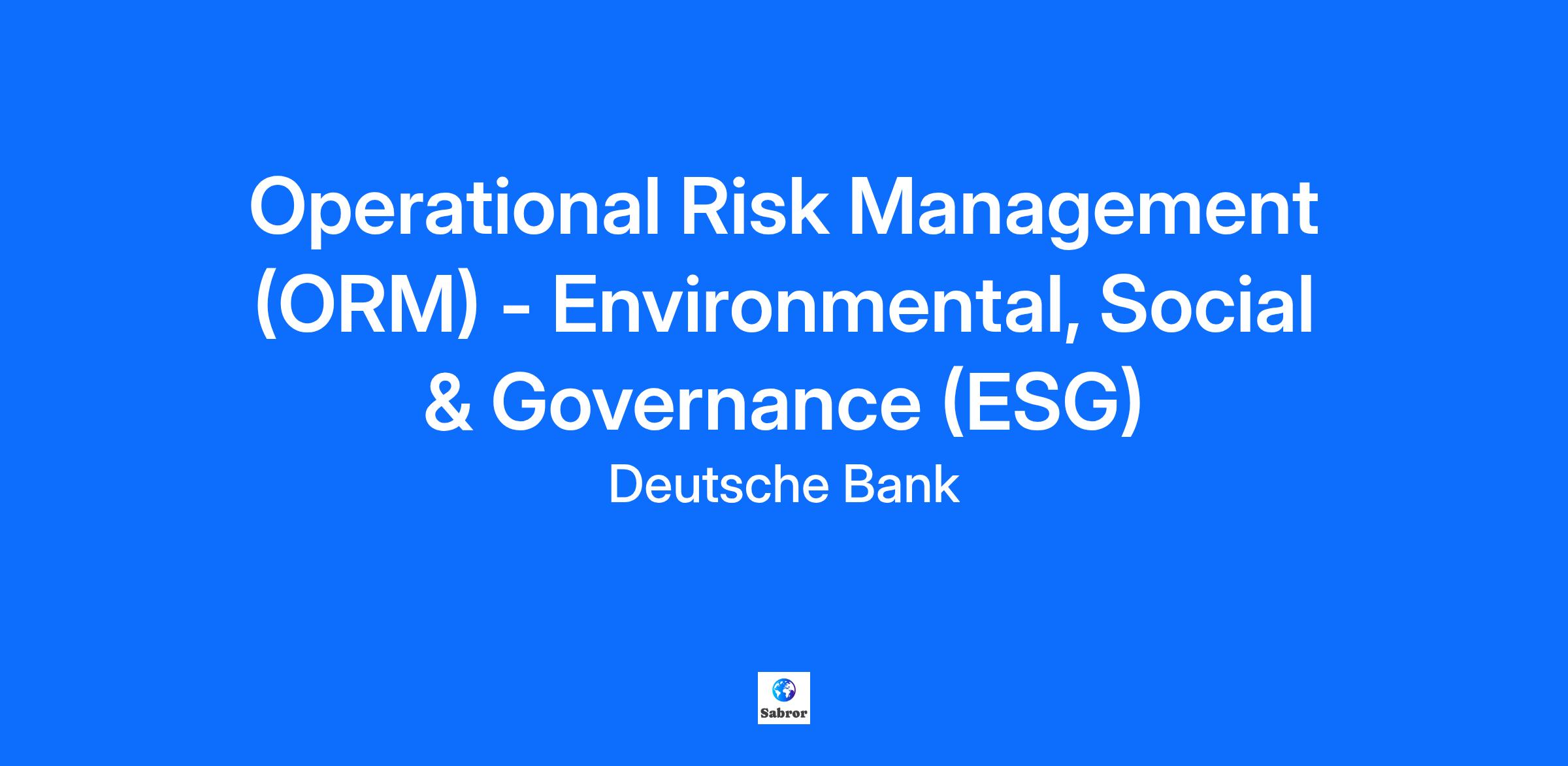 Job Description: Job Title Operational Risk Management (ORM) - Environmental, Social & Governance (ESG) Location London Corporate Title AVP Operational Risk Management (‘ORM’) is a department within the Risk Division. As a Second Line of Defence function, ORM is responsible for oversight across all aspects of non-financial risk, including risk identification and assessment, control framework, risk appetite and scenario analysis. You will be responsible for the integration and ongoing risk management of ESG within the ORM frameworks, including the associated policies, policy adherence, metrics, reporting and minimum control standards. What we’ll offer you A healthy, engaged and well-supported workforce are better equipped to do their best work and, more importantly, enjoy their lives inside and outside the workplace. That’s why we are committed to providing an environment with your development and wellbeing at its centre. You can expect: Hybrid Working - we understand that employee expectations and preferences are changing. We have implemented a model that enables eligible employees to work remotely for a part of their working time and reach a working pattern that works for them Competitive salary and non-contributory pension 30 days’ holiday plus bank holidays, with the option to purchase additional days Life Assurance and Private Healthcare for you and your family A range of flexible benefits including Retail Discounts, a Bike4Work scheme and Gym benefits The opportunity to support a wide ranging CSR programme + 2 days’ volunteering leave per year Your key responsibilities Supporting the continued integration of ESG into the Bank's operational risk control frameworks, including scenarios, the thematic approach with controls and metrics, and contextual data. Ongoing development and monitoring of the Operational Risk framework related to ESG. Playing a key role in the ownership of the associated ESG and reputational risk policy documents Working closely with the Reputational Risk and ESG team on changes to the respective frameworks and with the Mumbai team on framework adherence and reporting. Building relationships with key stakeholders across businesses and control functions Your skills and experience Experience in the financial sector with similar analysis and risk roles in the operational risk space Demonstrable experience in an ESG-related risk and controls focussed role in the financial sector Strong knowledge of key regulations related to ESG and experience in the implementation requirements. Excellent senior stakeholder management skills, ability to build constructive partnerships with diverse stakeholders and challenge where required Ideally operational risk experience and knowledge, particularly from a framework, risk and controls perspective Ability to work across a diverse group of stakeholders within a complex organisation and to quickly develop strong working relationships with a broad range of functions How we’ll support you Training and development to help you excel in your career Flexible working to assist you balance your personal priorities A culture of continuous learning to aid progression A range of flexible benefits that you can tailor to suit your needs We value diversity and as an equal opportunities’ employer, we make reasonable adjustments for those with a disability such as the provision of assistive equipment if required (e.g. screen readers, assistive hearing devices, adapted keyboards) About us Deutsche Bank is the leading German bank with strong European roots and a global network. Click here to see what we do. Deutsche Bank in the UK is proud to have been named The Times Top 50 Employers for Gender Equality 2025 for six consecutive years. Additionally, we have been awarded a Gold Award from Stonewall and named in their Top 100 Employers 2024 for our work supporting LGBTQ+ inclusion. If you have a disability, health condition, or require any adjustments during the application process, we encourage you to contact our Adjustments Concierge on adjustmentsconcierge@db.com to discuss how we can best support you. Alternatively, you can share your phone number, and a member of the team will be happy to call you to talk through your specific requirements. We strive for a culture in which we are empowered to excel together every day. This includes acting responsibly, thinking commercially, taking initiative and working collaboratively. Together we share and celebrate the successes of our people. Together we are Deutsche Bank Group. We welcome applications from all people and promote a positive, fair and inclusive work environment. For over 150 years, our dedication to being the Global Hausbank for our clients has been driven by our people – in around 60 countries and across more than 150 nationalities. Their deep understanding, insights, expertise, and passion help our clients navigate an increasingly complex world – be it in our Corporate Bank, our Private Bank, our Investment Bank or our Asset Management (DWS) division. Together we can make a great impact for our clients at home and abroad, securing their lasting success and financial security. More information at: Deutsche Bank Careers (db.com)