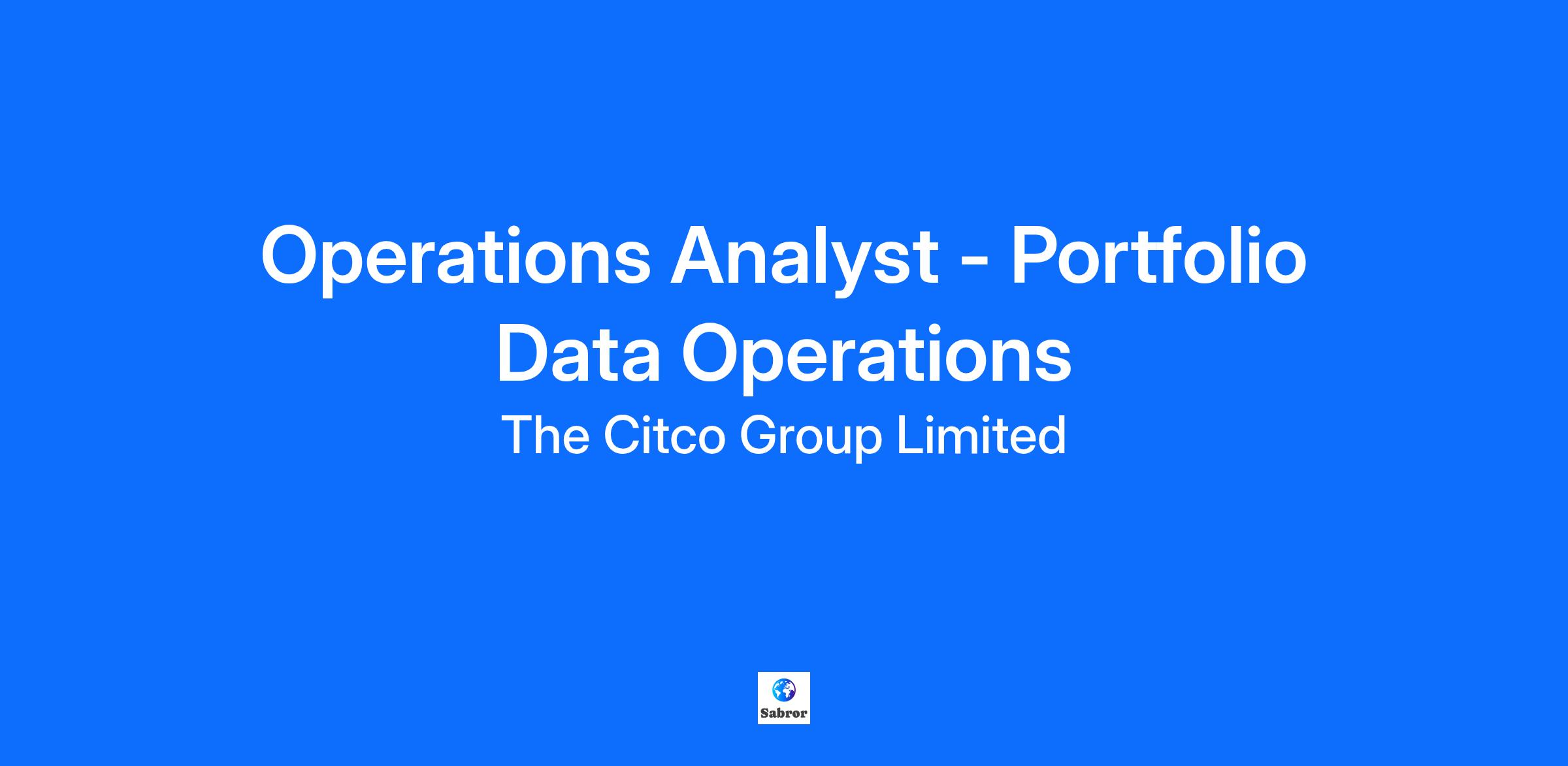 Operations Analyst - Portfolio Data Operations