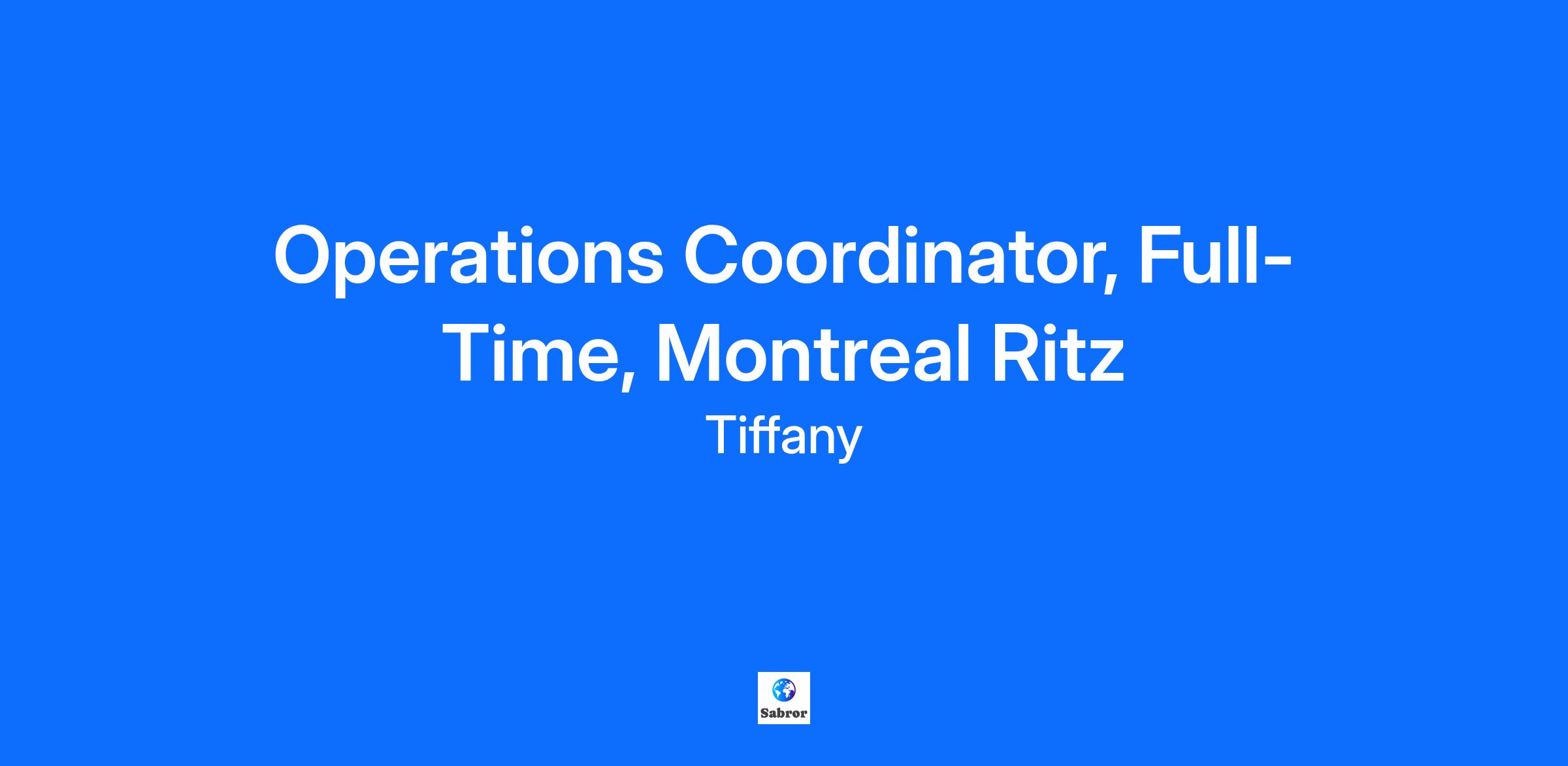 Operations Coordinator, Full-Time, Montreal Ritz