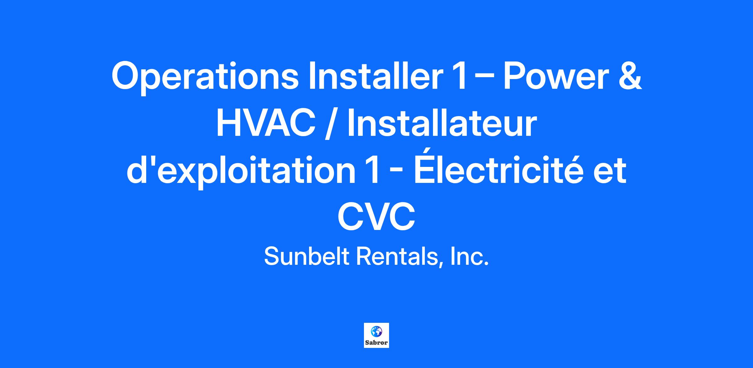 Operations Installer 1 – Power & HVAC / Installateur d'exploitation 1 - Électricité et CVC