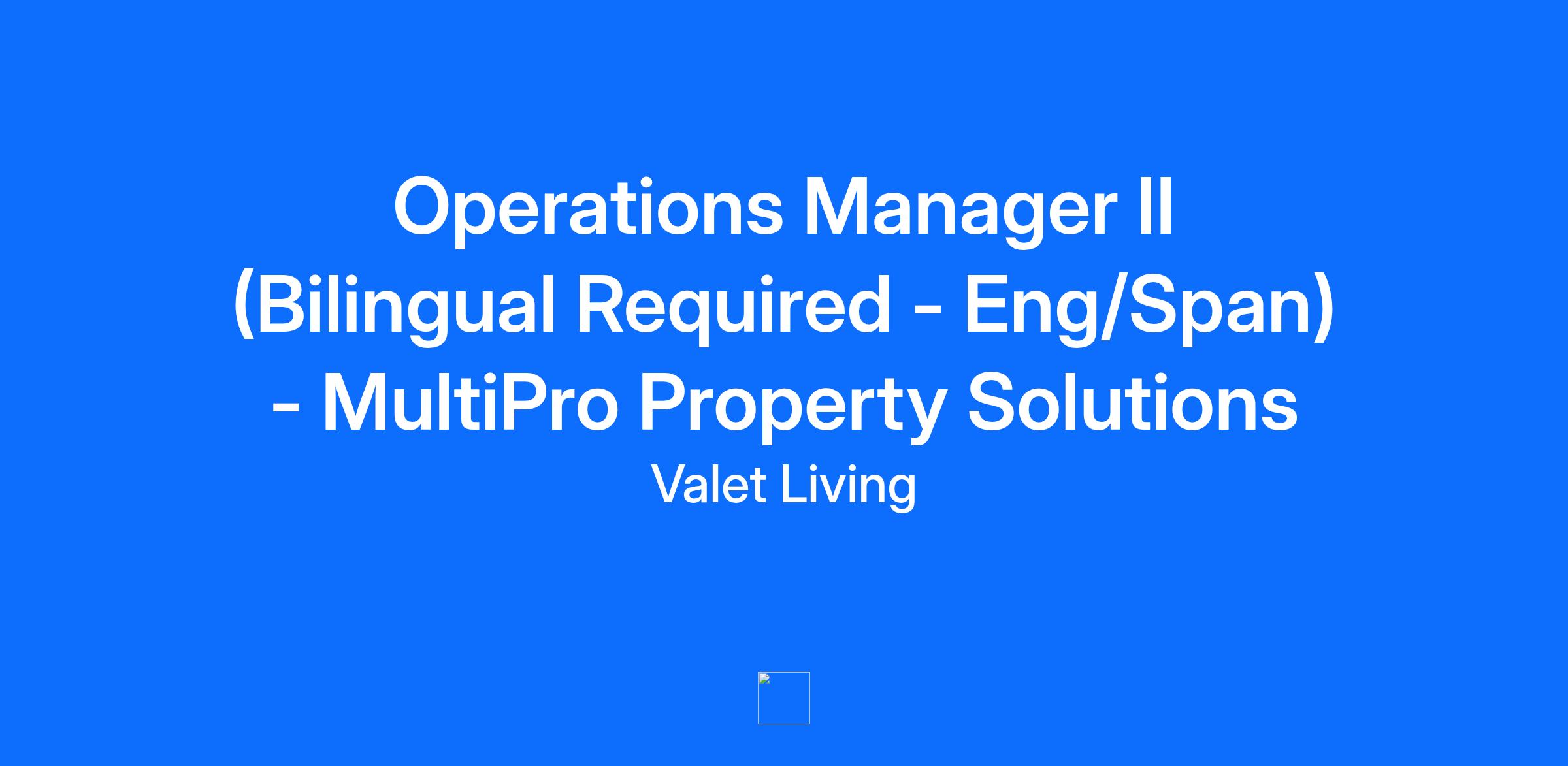 Lead Operations. Drive Growth. Grow Your Career. Are you an operations expert with a passion for optimizing processes, developing teams, and driving results? Do you thrive in an environment where managing multiple priorities and achieving business growth go hand in hand? If so, MultiPro Property Solutions is looking for you! As the Bilingual Operations Manager II, you will oversee the day-to-day operations of the branch, ensuring the smooth execution of make-ready, add-on, and renovation services for our multi-family clients. You will be responsible for managing staff and contractors, ensuring safety standards, maintaining quality, and ensuring client satisfaction. You’ll play a key role in enhancing operational efficiency, driving revenue, and meeting profitability targets. Working closely with Operations team members and other key stakeholders, you will foster client relationships and support the growth and success of the branch. Compensation & Work Environment Details: Competitive starting salary from: $97,000+ Bonus: Target bonus is 15% of annual salary (paid quarterly) Auto Allowance: Fixed bi-weekly payment + monthly variable mileage reimbursement Work Schedule: Flexibility to work outside standard hours as needed What You’ll Do: Manage Branch Operations: Lead and oversee daily operations, ensuring the efficient execution of projects and high client satisfaction. Handle coordinating schedules for branch staff and contractors. Drive Client Satisfaction: Build and maintain strong relationships with new and existing clients, ensuring their needs are met, and concerns are promptly addressed. Conduct site visits to ensure service compliance and quality. Enhance Operational Efficiency: Analyze and improve business processes, optimize workflows, and drive continuous improvements to increase operational capacity. Lead a High-Performing Team: Recruit, select, and manage branch staff and independent contractors. Provide training, coaching, and performance feedback to maximize productivity. Ensure Safety Standards: Oversee safety protocols and procedures, ensuring a safe work environment for all staff and contractors. Collaborate Across Departments: Work closely with the Branch Manager, Field Service Managers, and other teams to align operational strategies and achieve branch goals. Manage Business Development: Support proposal building and sales efforts, driving revenue growth and expanding service offerings with both new and existing clients. Represent MultiPro: Act as a key representative in client meetings, industry events, and trade shows to strengthen the brand and support business growth. What We’re Looking For: Leadership Experience: Minimum of 7 years of proven success in an operations management role, with experience in multi-family property services, light construction, or renovation projects. Bilingual: English/Spanish required. Client-Focused: Strong customer service skills, with the ability to develop and maintain relationships with key clients and stakeholders. Team Management: Demonstrated ability to recruit, train, and motivate teams, with a proven track record in leading teams to meet operational and financial objectives. Financial Acumen: Ability to analyze financial data, set targets, and drive profitability through effective management of resources. Sales Mindset: Experience with proposal building and driving new business opportunities. Project Management: Excellent organizational skills with the ability to manage multiple projects and competing deadlines. Tech-Savvy: Proficiency in Microsoft Office Suite, Salesforce and ability to learn new technology platforms quickly. Education: AA degree required, Bachelor’s degree preferred. Valid Driver’s License: Required, with frequent travel within your market. Physical Requirements: Ability to lift 50 lbs., walk properties (including stairs), and work in varying weather conditions. Why You’ll Love Working with Us: Work hard, grow fast. At MultiPro Property Solutions, we recognize talent, reward ambition, and promote from within. If you’re looking for a place where effort leads to opportunity, innovation is encouraged, and leadership is earned, you’ve found it. Comprehensive Benefits: Health Benefits: Medical, dental, and vision coverage for you and your family, plus HSA with employer contributions and Flexible Spending Accounts Financial Security: 401k with company match, life and disability insurance, AD&D, and business travel coverage Flexible Time Off: No preset accruals—manage your time and work-life balance your way, plus 10 company-paid holidays. Professional Development: Tuition reimbursement up to $5,250 per year and access to our online education center Additional Perks: Referral bonuses, pet insurance, associate assistance programs, discount programs, rewards, recognition, and free access to Torch Fitness virtual programs The final compensation offered will be determined based on various factors, including the candidate's location, level of experience, and skill set. As such, it may fall outside the range listed above. The application window is anticipated to close 60 days from the date the job is posted. Ready to take the next step in your leadership career and help us build something great? Apply today and join MultiPro in shaping the future of our branch #LI-AC1 Are you a current Valet Living employee? If so, click here to apply. Valet Living is an Equal Opportunity Employer that values the strength diversity brings to the workplace. We recruit, employ, train, compensate, and promote without regard to race, religion, creed, color, national origin, age, gender, sexual orientation, gender identity, marital status, disability, veteran status, or any other basis protected by applicable federal, state or local law. Valet Living is committed to working with and providing reasonable accommodations to individuals with disabilities. If, because of a medical condition or disability, you need a reasonable acc