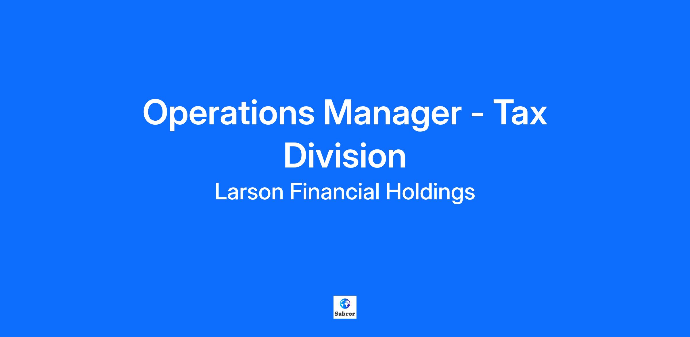 Join our dynamic team at Larson Tax Partners as an Operations Manager of the Tax Division, where you will lead our talented professionals in delivering exceptional tax services. In this pivotal role, you will drive strategic initiatives, ensure compliance with regulatory requirements, and foster a culture of excellence and innovation. Your expertise will guide our firm in providing unparalleled value to our clients, while your leadership will inspire and develop our team to achieve their highest potential.