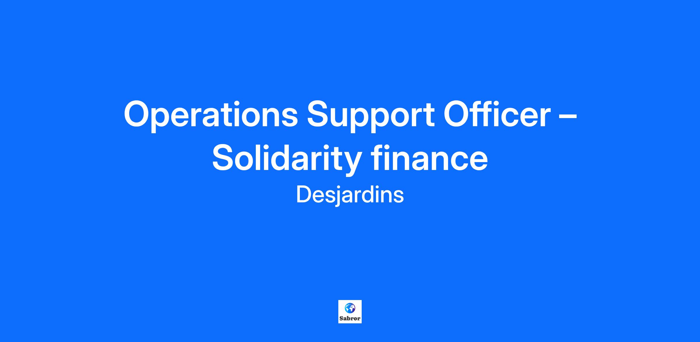 Operations Support Officer – Solidarity finance