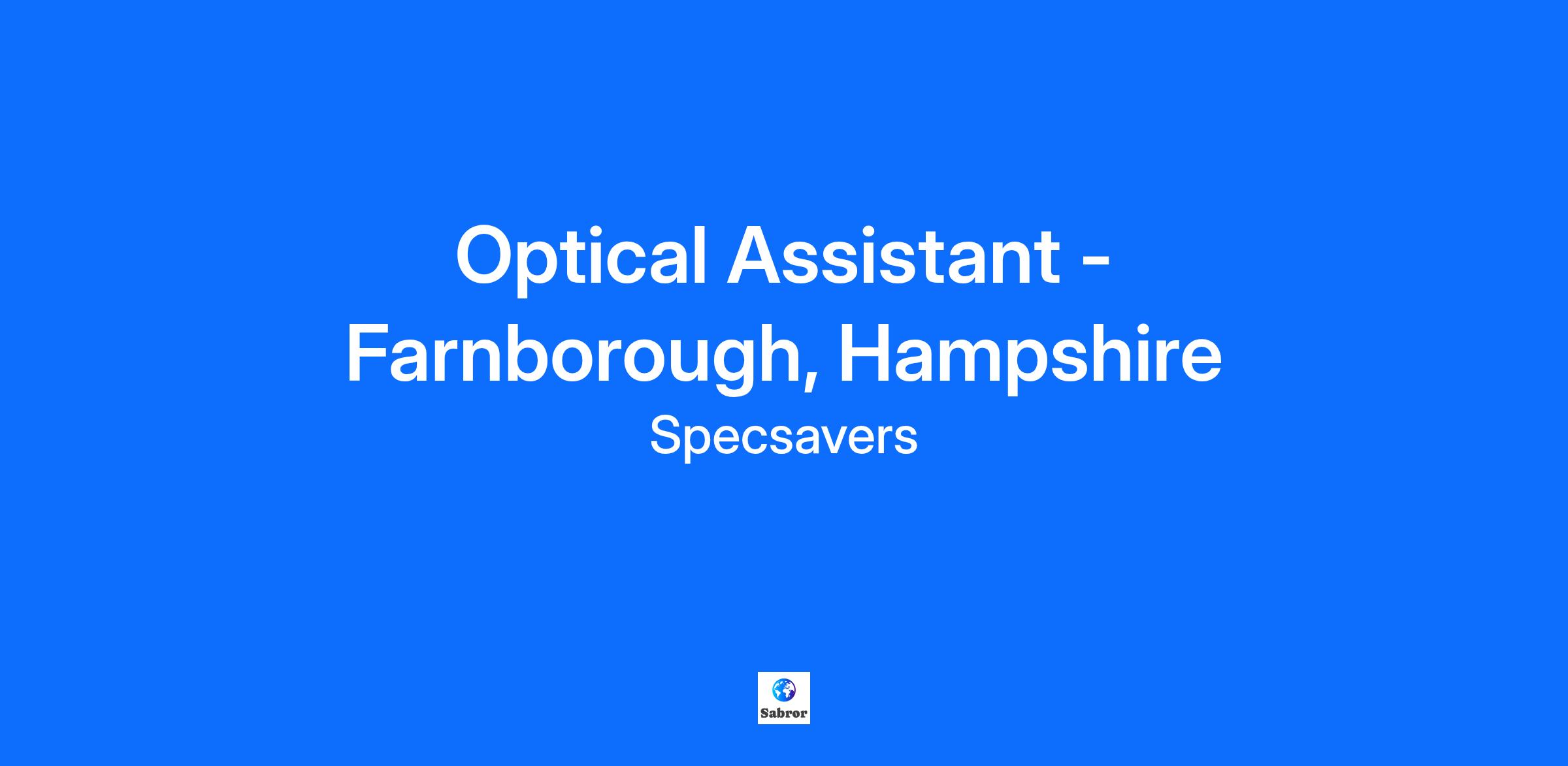 Optical Assistant - Farnborough, Hampshire