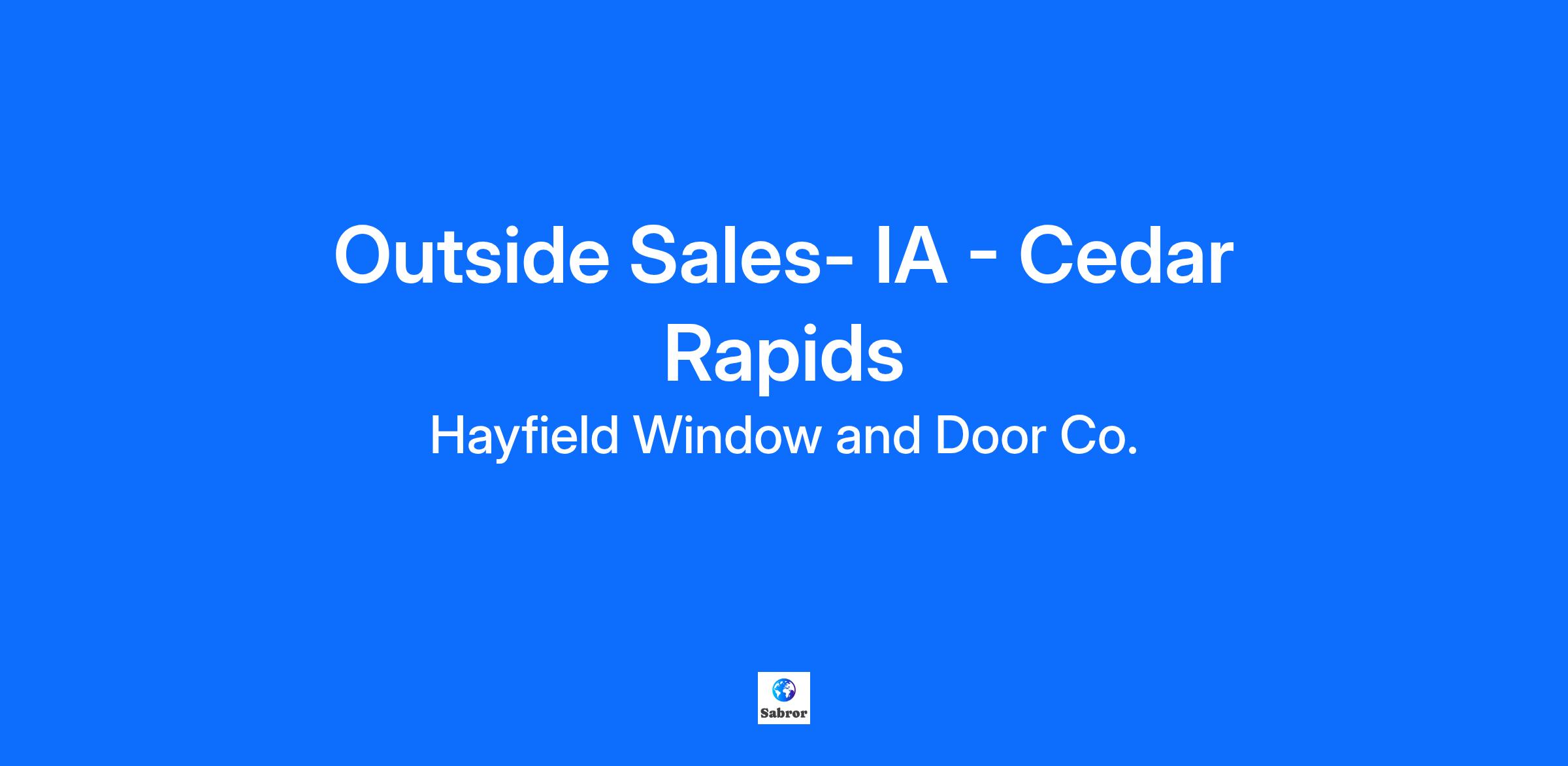 Outside Sales- IA - Cedar Rapids