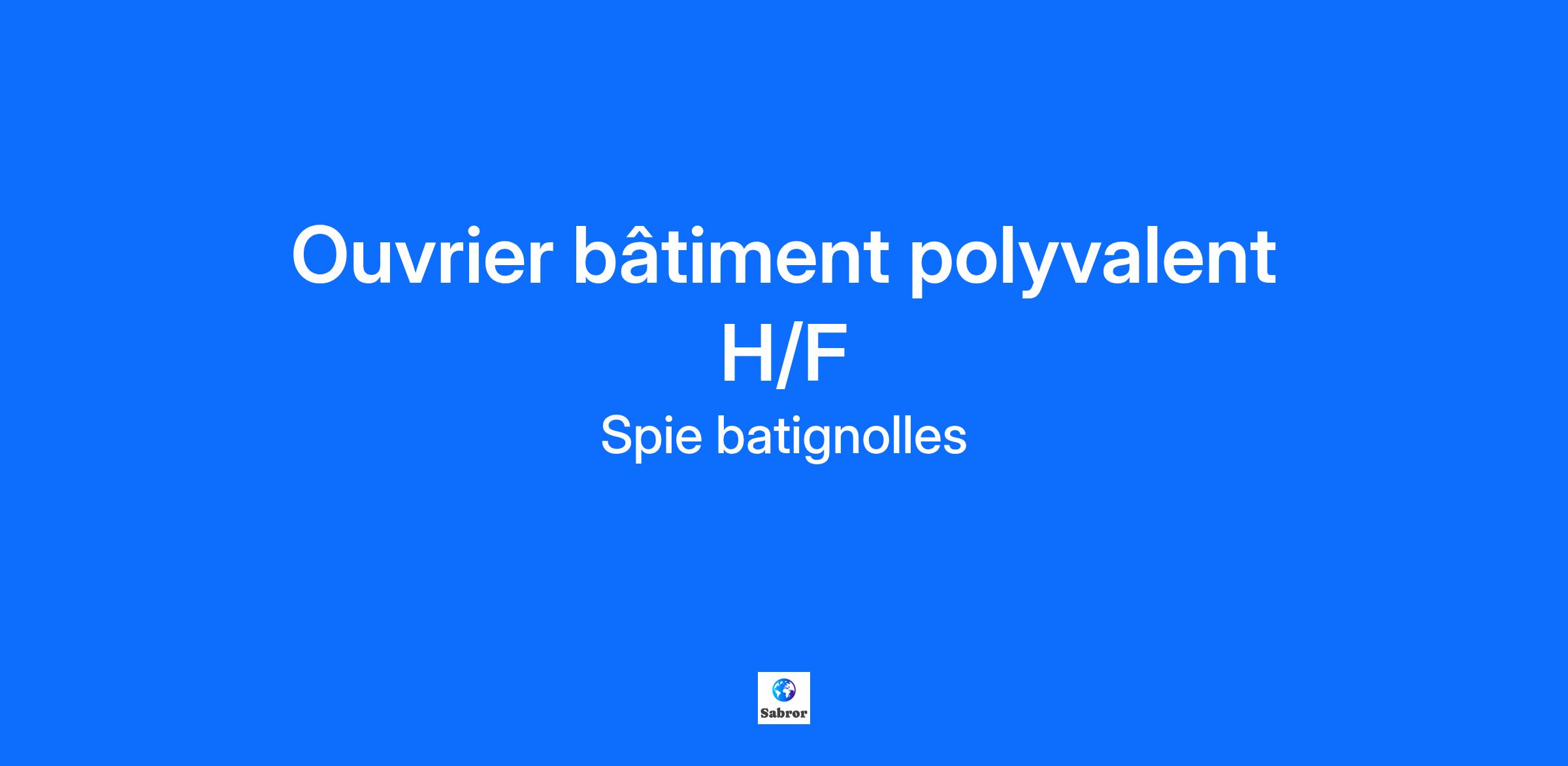 Description de l'entreprise Envie de construire bien plus qu'une carrière ? Chez Spie batignolles, groupe indépendant fier de ses plus de 9000 femmes et hommes, nous sommes au cœur des défis qui façonnent nos territoires, en France comme à l'international, et ça depuis plus de 175 ans ! Avec nos 7 branches d'activités : Les travaux publics, le génie civil et fondations, la construction, le paysage, l'immobilier, l'énergie, et les travaux maritimes (Groupe ETPO), découvrez comment votre talent peut s'épanouir au sein de nos équipes et contribuez à des réalisations qui comptent ! Description du poste En neuf comme en réhabilitation, Spie batignolles construction régions intervient sur l’ensemble du territoire national de la conception à la livraison sur tous les secteurs d’activité du bâtiment : industrie, équipements publics, santé, bureaux, logements, centres aquatiques, enseignement, hôtels et chalets, travaux maritimes et fluviaux, chais et châteaux. Le réseau Présance® est doté d’expertises techniques en propre et d’une autonomie de moyens, il développe une offre de solutions techniques TCE (gros œuvre, génie civil/second œuvre, finitions), au service d’une large clientèle (Industrie, Commerce, Collectivités Locales, Santé ...), dans la réalisation de travaux en propre et avec ses sous-traitants partenaires. Dans le cadre de notre accroissement de nos activités, nous recherchons un Ouvrier polyvalent du bâtiment pour nos chantiers basés Cherbourg. Sous la responsabilité du chef d’équipe, vos missions seront : Suivre les consignes données par le chef d‘équipe Exécuter les consignes de réalisation Prendre soin du matériel Renseigner le client et/ou les usagers Aider le chef d’équipe à préparer le matériel Aider à la vérification des approvisionnements Appliquer les consignes d’hygiène, sécurité et protection de l’environnement. Qualifications Vous êtes mobile, véhiculé et possédez le permis B. Vous êtes titulaire d’un Bac pro ou d’un CAP en bâtiment, et vous bénéficiez d’une première expérience réussie. Vous aimez travailler en équipe, vous maitrisez les différents outils de chantier. Vous êtes motivés et souhaitez rejoindre une entreprise dynamique et en croissance ? Et si c’était vous ? Venez nous raconter votre parcours, et commencez une belle aventure professionnelle chez nous ! Informations complémentaires Chez Spie batignolles, nous misons sur l'égalité des chances et la non-discrimination. Seules vos compétences et votre savoir-être comptent. Nous offrons un environnement inclusif et équitable où chacun, quel que soit son profil, peut s'épanouir et contribuer pleinement. Nous sommes convaincus que cette richesse de talents et de perspectives est un moteur essentiel pour notre performance et notre capacité à innover. Vous avez l'ambition de laisser votre empreinte ? Venez concrétiser vos projets et construire le monde de demain avec nous.
