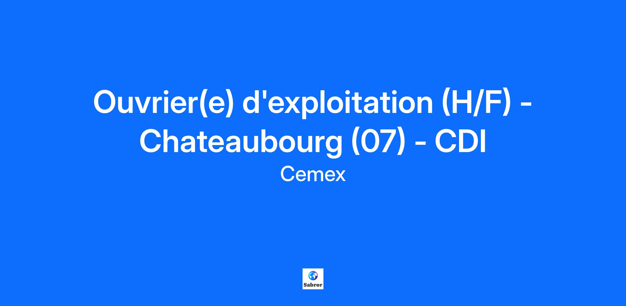 Cemex est un leader mondial de l’industrie des matériaux de construction, présent dans plus de 50 pays. En France, nous sommes un acteur de premier plan du béton prêt à l’emploi, des granulats et de la gestion des déchets du BTP, avec plus de 1 800 collaborateurs et plus de 260 implantations réparties sur une grande partie du territoire. Notre entreprise est engagée dans une démarche RSE ambitieuse, à l’écoute de ses collaborateurs et de ses clients, et bénéficie d’une forte culture fondée sur la collaboration. Société à mission depuis 2023, notre raison d’être est d’ouvrir la voie pour créer et mettre en œuvre des solutions minérales durables afin de construire un avenir meilleur au service des générations actuelles et futures. Dans le cadre du développement de son activité, CEMEX recrute un(e) Ouvrier(e) d’exploitation (H/F) en CDI basé(e) à Chateaubourg (07). Vous aurez pour missions principales : Sous la responsabilité du Chef de carrière, vos missions seront de : piloter, surveiller, nettoyer et d’entretenir les installations. Descriptif du poste : Vous assurez principalement les missions ci-dessous : Production et Maintenance Réaliser la production en vérifiant l’approvisionnement du poste de travail en éléments nécessaires à la production, à partir d’instructions. Surveille le bon fonctionnement de l’installation à l’aide d’une supervision, le cas échéant. Participe à l’entretien courant de l’installation conformément aux consignes d’entretien. Participe à la maintenance préventive et corrective des installations Développe sa polyvalence (conduite d’installation, fabrication des big bag et gabions…) Signale tout dysfonctionnement de l’installation et peut être amené à intervenir ou à effectuer un premier diagnostic afin de préparer l’intervention de la maintenance. Au besoin, conduit les engins de chantiers permettant d’assurer l’approvisionnement et/ou la maintenance de l’installation mais également procède au déstockage des produits finis et/ou au chargement des clients. Renseigne quotidiennement les registres de production et de maintenance. Ponctuellement et en fonction des besoins, conduit les engins de chantier Qualité : S’assure visuellement de la qualité des produits fabriqués et signale le cas échéant toute dérive. Prévention – Sécurité : Applique et fait appliquer les règles de sécurité en vigueur dans l’entreprise. Déclare les situations dangereuses et les presque accidents. Signale sans délai toute anomalie dans les dispositifs de sécurité sur l’ensemble du matériel. Interrompt la marche de l’installation pour toute anomalie sérieuse sur les dispositifs de sécurité. Environnement : Applique les consignes relatives au respect de l’environnement en vigueur sur la carrière. Communication Communique oralement à sa hiérarchie toute observation ou anomalie relative au fonctionnement du site. Travail en journée du lundi au vendredi Profil du poste : Vous possédez une première expérience dans le domaine du bâtiment ou de la production (menuisier, peintre, électricien, maçon, manœuvre, couvreur). - Connaissance de base en Mécanique (appréciable) - Habilitation électrique (appréciable) - et/ou CACES chargeur/ télescopique (appréciable) Vous avez le sens du relationnel, êtes organisé(e) et rigoureux(se) et respectueux(se) du matériel. Vous aimez la polyvalence et savez travailler en équipe. Rémunérations et avantages : Salaire : Entre 2000 € et 2200 € en fonction du profil sur 13.4 mois (13ème mois et prime vacances) Système d’annualisation sur 36h40 hebdomadaire avec jours de récupération Prime d’activité semestrielle d’un montant maximal de 550 € Titre restaurant de 10 € dont 6 € part patronale (60 %) et 4 € part salariale (40%) Convention collective des matériaux de construction et industrie des carrières Mutuelle et prévoyance entreprise Comité social et Economique d’entreprise Participation & Intéressement Le poste est à pourvoir : Chateaubourg Vous bénéficierez d’un environnement de travail dynamique, enrichissant et motivant grâce à la diversité des contacts et des missions. N’hésitez plus, rejoignez-nous ! Dans le cadre de notre politique diversité et inclusion, nous garantissons le respect de la non-discrimination à l’embauche. Toutes les candidatures sont étudiées et seules votre personnalité et vos compétences comptent.