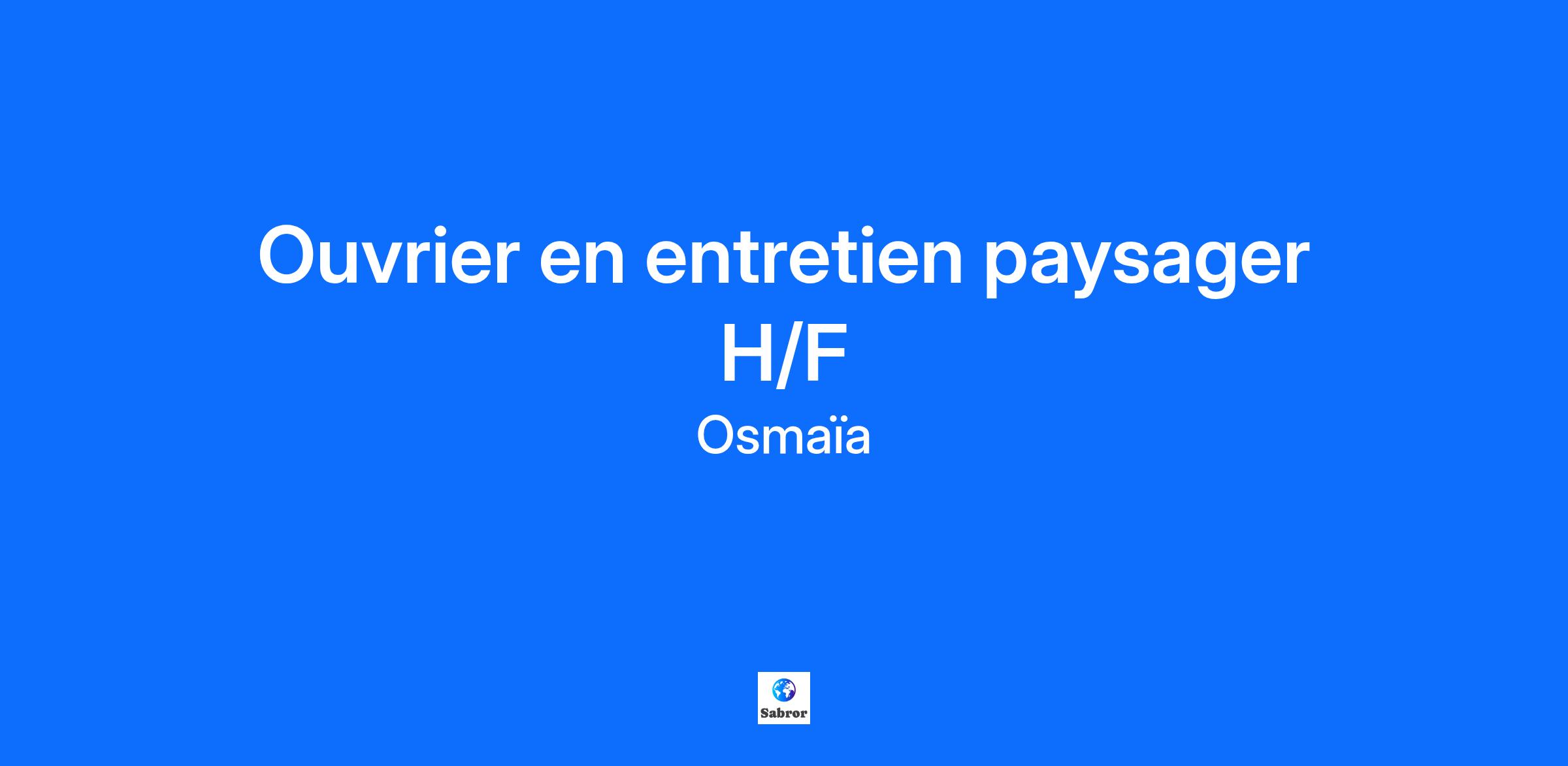 Osmaïa se positionne comme un des acteurs principaux dans le domaine de l'aménagement paysager en France. Avec plus de 40 implantations réparties dans l’hexagone et en Suisse, il s'appuie sur une vingtaine de marques locales bien établies. L'approche du groupe repose sur le renforcement des marques régionales, solidement enracinées dans leurs territoires respectifs et partageant des valeurs communes telles que l’inventivité, l’agilité, la bienveillance et la rigueur. Notre philosophie : Guidés par la nature, nous nous engageons chaque jour préserver la biodiversité et remettre l’expérience de la nature au cœur de notre quotidien pour le bien-être de tous. Chez Osmaia, nous sommes convaincus que chaque talent a sa place. Qu’il soit associé à un handicap visible ou invisible, nous proposons un accompagnement sur mesure pour construire un avenir professionnel épanouissant. Chez Mugo, nous nous engageons à créer un avenir meilleur en réintroduisant la nature partout et sous toutes ses formes. Nos ingénieurs, agronomes, cultivateurs, jardiniers, architectes, paysagistes, fleuristes et apiculteurs passionnés et engagés y contribuent au quotidien. C'est grâce à nos 500 collaborateurs que nous sommes aujourd'hui leader sur l'ensemble des métiers du paysage en France. Si vous aussi vous souhaitez replacer la nature au cœur de notre vie et intégrer une entreprise en forte croissance, alors rejoignez nous ! Vous souhaitez mieux nous connaître ? : https://www.mugo.fr/ https://www.osmaia-group.com/ Afin de poursuivre notre croissance, nous sommes aujourd’hui à la recherche pour notre entité Pellegrin et Fils d'un ouvrier en entretien paysager H/F Directement rattaché au Second d'agence vos missions seront les suivantes : •Port des EPI • Prendre soin de sa propre sécurité et de sa santé ainsi que celles des autres personnes •Veiller à ce que le matériel de chantier utilisé possède toutes les sécurités •Mettre en place la signalisation de chantiers le cas échéant • Se conformer aux règles de sécurité propres à chaque chantier •Signaler à la direction tout manquement qu’il aura pu observer en matière de sécurité au sein de l’entreprise • Respect des consignes de travail dictées par sa hiérarchie Votre profil : Titulaire d’un CAPA ou supérieur en formation Paysage, vous possédez une expérience réussie d’au moins 1 à 2 ans au poste similaire. Vous êtes reconnu pour votre rigueur, votre autonomie, ainsi que votre passion. Localisation du poste : SAINTE GENEVIEVE DES BOIS (91) Contrat : CDI Rémunération : 2090,39€ brut selon profil.