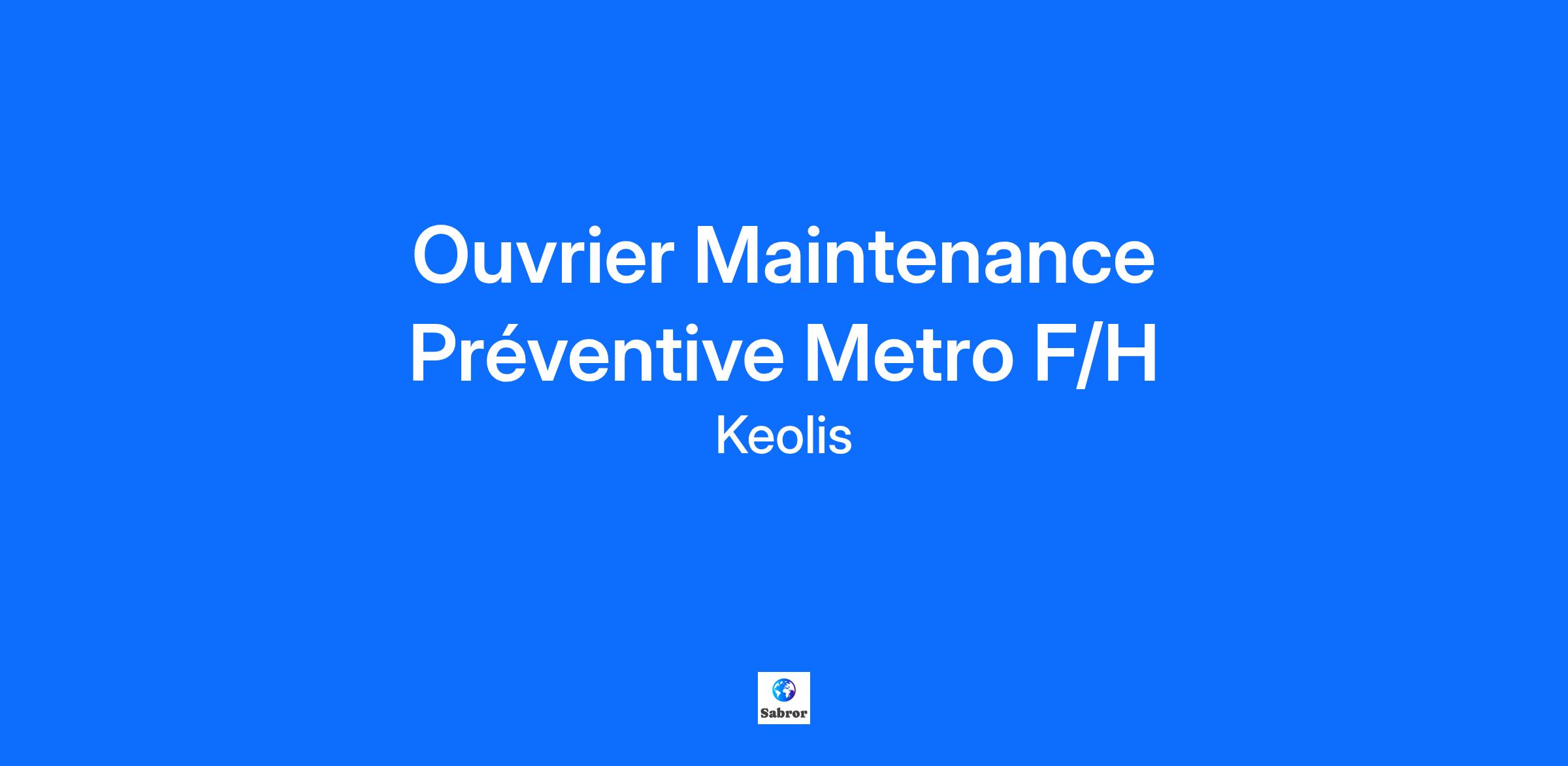 Ouvrier Maintenance Préventive Metro F/H Maintenance Keolis, leader mondial de la mobilité partagée, facilite le quotidien de millions de voyageurs. Nous proposons des solutions de transport en commun sûres, performantes et durables qui renforcent l'attractivité des territoires. En 2024, le Groupe a réalisé un chiffre d'affaires de 7,7 milliards d'euros. Présent dans 13 pays, nous sommes convaincus que nos 70 000 collaborateurs sont la clé de notre succès. Contexte Keolis Lille Ilevia exploite le réseau des transports en commun de la Métropole Européenne de Lille sous la marque commerciale Ilévia. Fort de ses 2 500 collaborateurs, Keolis Lille Ilevia place le voyageur au cœur de ses préoccupations, de la maintenance du réseau à la mise en place de nouveaux services, en passant par la relation client. Nous recrutons, au sein de l'atelier de maintenance métro 4 Cantons (Villeneuve d'Ascq), un ouvrier maintenance préventive métro f/h en CDI. Missions A ce poste, vous serez en charge de : Réaliser la maintenance préventive sur le matériel rolant métro déposé à l'aide d'un mode opératoire et suivant une planification établie par son responsable hiérarchique(inspection, visite et révision) dans le respect des règles de sécurité Rendre compte à sa hiérarchie du travail réalisé et des anomalies constatées (dysfonctionnements, détériorisation anormale...) Proposer des améliorations des pratiques à partir de son retour d'expérience Ranger et nettoyer l'atelier dans le respect des règles Le poste est basé à Villeneuve d'Ascq (59).Profil Vous disposez du niveau CAP/BEP (niveau V de l'Education Nationale) en maintenance, mécanique, électromécanique, électrotechnique ou hydraulique. Vous avez des connaissances en mécanique, électromécanique, électropneumatique, hydraulique et savez diagnostiquer une panne. Vous réalisez des opérations de maintenance et savez respecter un mode opératoire. Vous relayez l'information (ascendante, descendante, écrite ou orale). Vous êtes rigoureux/rigoureuse, disponible et avez le respect des délais. Vous disposez de capacité d'adaptation. Le poste est à pouvoir en horaires de journée, vous pouvez être amené(e) à travailler en horaires postés. Le travail est essentiellement debout, avec du port de charges lourdes et du travail en hauteur. Vous disposez des habilitations engins de manutention. Ce que nous avons à offrir Prime de 13ème mois Prime de vacances Mobilité encouragée et accompagnée sur tout le territoire national Pourquoi nous rejoindre ? Un modèle managériale favorisant des relations professionnelles solides, basées sur la confiance mutuelle permettant à chacun et chacune de libérer son plein potentiel Une ambition de devenir leader de la mobilité bas carbone et d'améliorer ses performances environnementales (prévention des pollutions; optimisation de la consommation d'énergie...) Des politiques fortes en termes de diversité et de non-discrimination (labellisé GEEIS depuis 2016 et signataire de la charte diversité) Informations complémentaires : Si votre poste est en lien direct avec la sécurité des personnes et des biens vous serez susceptibles de faire l'objet d'une enquête administrative. Décret n°2017-757 du 3 mai 2017 et n°2022-770 du 2 mai 2022 Rejoignez Keolis : Épanouissez-vous, transformez le secteur des transports et faites la différence chaque jour.