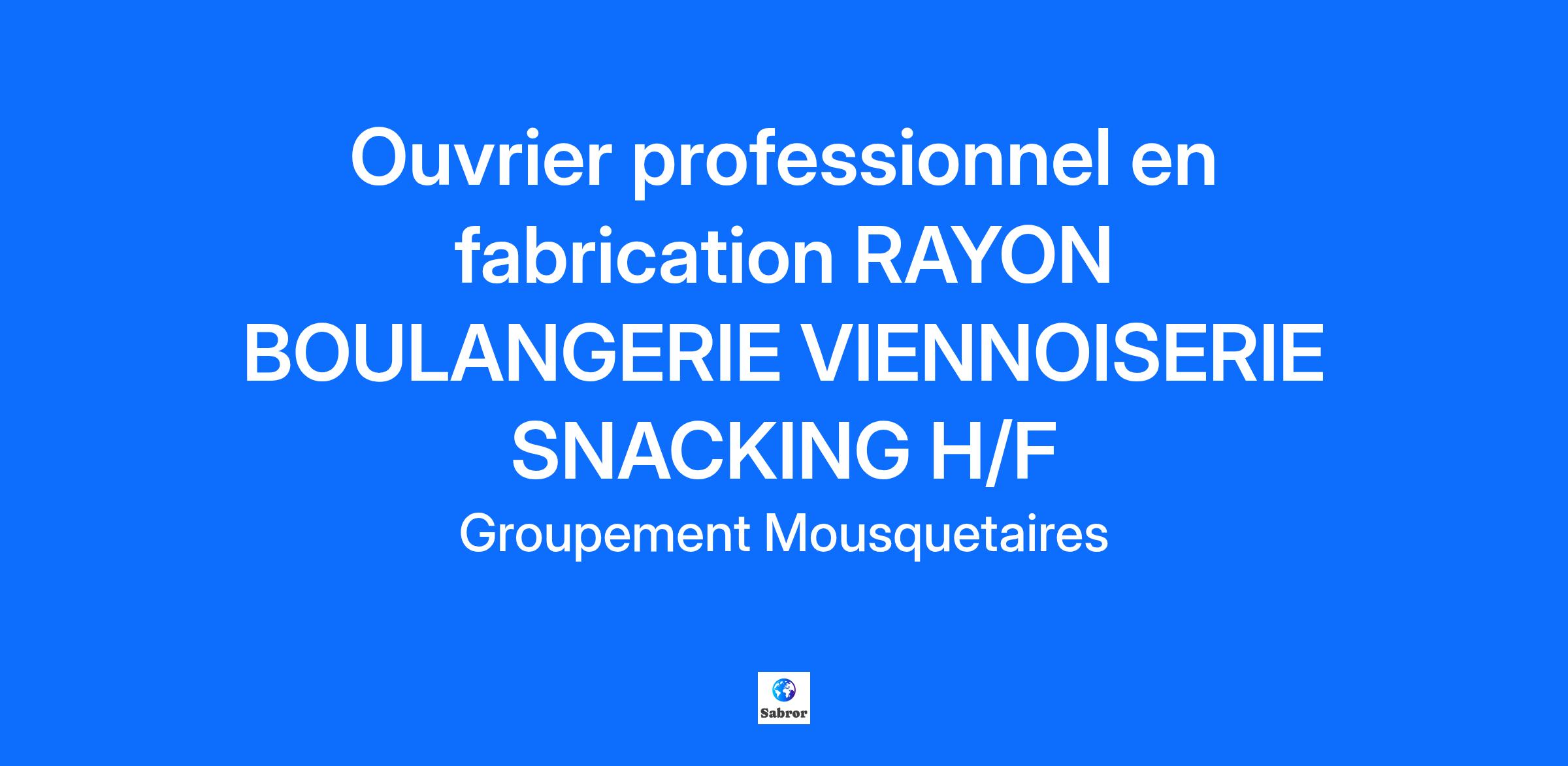 Description de l'entreprise Le Groupement Les Mousquetaires, ce sont 7 enseignes de la grande distribution, 150 000 collaborateurs et plus de 3 000 chefs d'entreprise indépendants ! Intermarché & Netto fait du mieux manger accessible à tous une réalité. Notre indépendance et la diversité de nos métiers nous permettent de répondre aux attentes des Français et nous propulsent au rang de 3e distributeur. Chaque métier compte pour écrire l'avenir de la distribution alimentaire. Prêt.e à faire la différence ? Rejoignez-nous ! Description du poste Pour seconder notre boulanger, assurer les tâches courantes nécessaires à la transformation et/ou à la fabrication des produits du rayon : pains, viennoiseries, snacking.... La mise sous emballage des produits destinés au libre-service, assurer la qualité du remplissage des rayons, la rotation des produits. Respect des règles d'hygiène et de qualité, des règles de sécurité en vigueur ; port d'une tenue vestimentaire spécifique fournie et entretenue par la société. Qualifications Avoir de l'expérience dans les métiers de bouche : boulangerie, cuisine, traiteur..... Avoir le CAP BOULANGER serait un plus