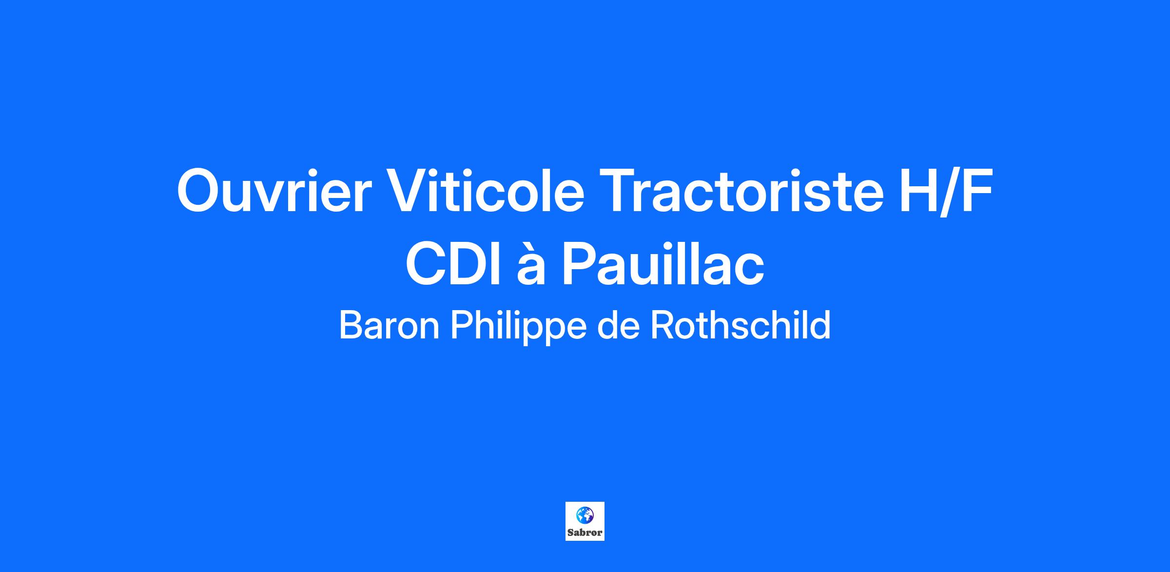 Baron Philippe de Rothschild S.A., Société de production et de négoce de vins de grande notoriété, recherche un(e) Ouvrier Viticole Tractoriste H/F en CDI pour Château Clerc Milon à Pauillac. Au sein de Château Clerc Milon, vous rejoindrez l’une de nos équipes composées d’une dizaine de personnes. Rattaché/e au Chef de Culture, vos principales missions seront, entre autres, les suivantes : Participer à l’ensemble des travaux viticoles manuels (taille, épamprage, levage, palissage…) ; Assurer la conduite de tracteurs pour les travaux mécanisés (travaux du sol, traitement, rognage…) ; Respecter les règles d’hygiène et de sécurité. VOTRE PROFIL : Vous avez entre 3 et 5 ans d’expérience professionnelle réussie sur des missions viticoles et/ou tractoristes ; Vous êtes reconnu(e) pour votre bon esprit d’équipe, fiabilité, assiduité, adaptabilité, dynamisme et votre goût du travail bien fait ; Vous souhaitez vous investir durablement dans une carrière au sein de la société Baron Philippe de Rothschild. Vous partagez les engagements portés par la Société : la Passion, le Respect et l’Excellence. Pour de plus amples informations, consultez notre site Société : www.bpdr.com