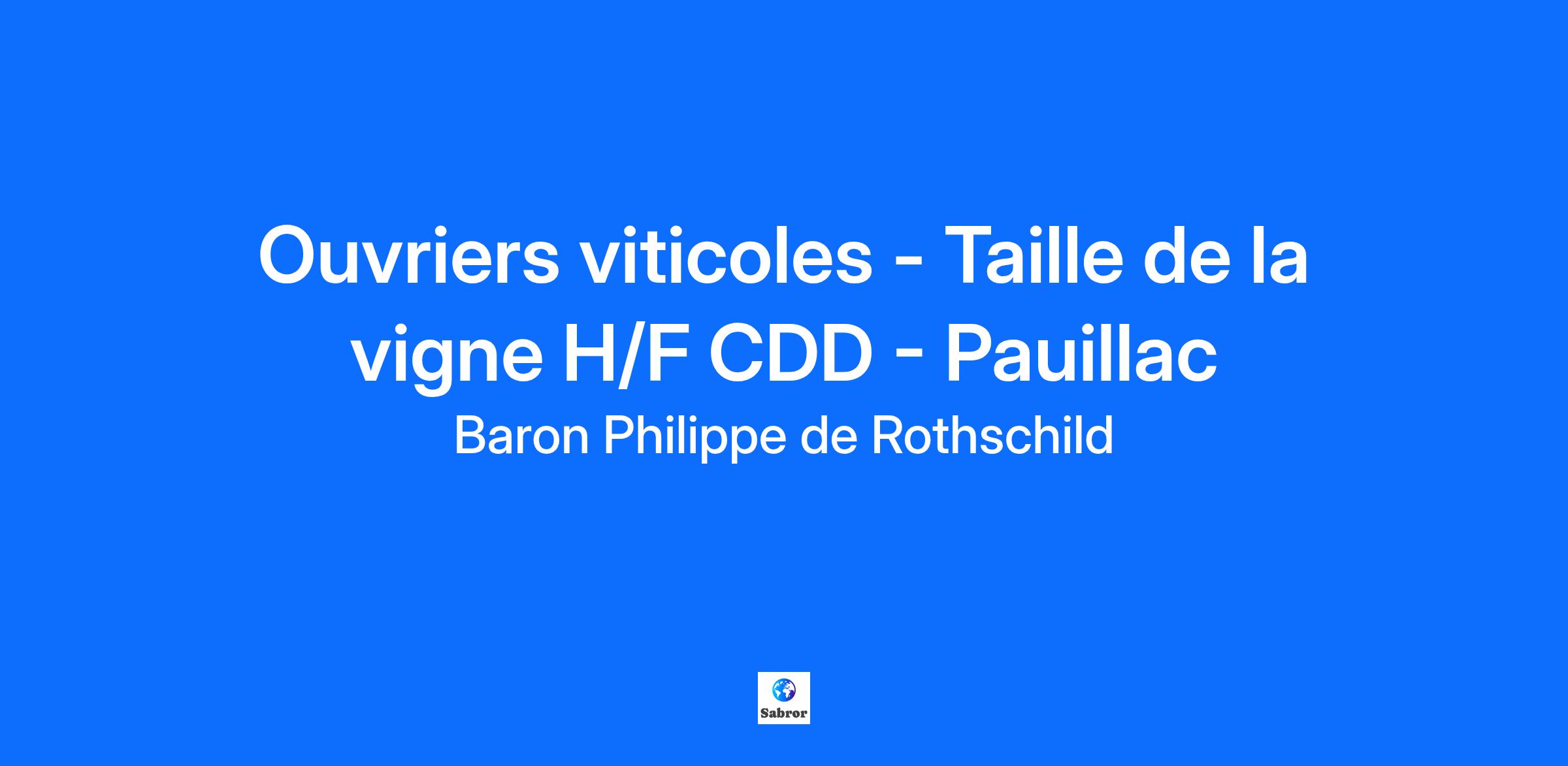Baron Philippe de Rothschild S.A., Société de production et de négoce de vins de grande notoriété, recherche un(e) Ouvriers viticoles – Taille de la vigne H/F en CDD saisonnier à partir de Novembre 2025 pour nos Châteaux autour de Pauillac. Rattaché(e) au Chef de culture, vous intégrez une de nos trois propriétés et aurez pour principales missions : - Taille de la vigne - Réparation du palissage VOTRE PROFIL : Vous avez idéalement de l'expérience en taille, motivé(e) et soucieux(se) du travail bien fait, vous appréciez travailler en équipe et êtes reconnu(e) pour votre dynamisme et votre rigueur. Pour de plus amples informations, consultez notre site Société : www.bpdr.com