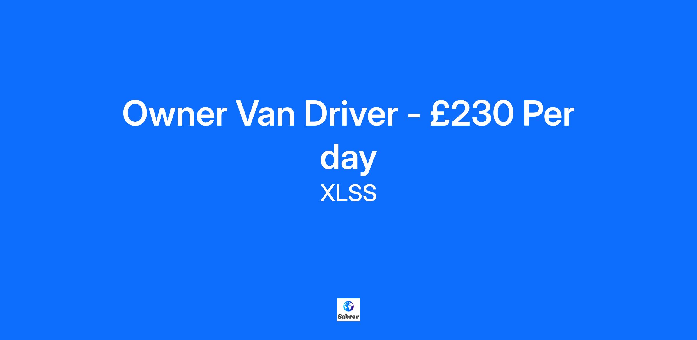 Job Description Owner Van Delivery Drivers to work with our Client from their depot in Bradley Stoke, Bristol over the busy period leading up to Christmas. Applicants should have previous experience in a Multi-Drop Parcel environment and you must have your own Van similar to a Vivaro or Transit custom with the correct insurances including delivery for hire and reward. Deliveries and collections are all within an area no further than 40 miles from the depot. **£230 Per Day** - Monday To Friday with additional work available Saturdays. - Start time 9am with a finish time of approx 6pm. - Weekly Pay. - **£300 recommend a friend scheme. Additional Information All your information will be kept confidential according to EEO guidelines.