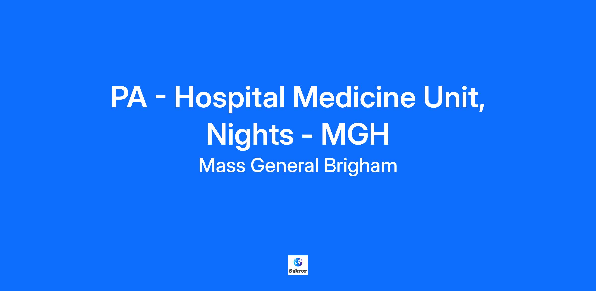 Site: The General Hospital Corporation Mass General Brigham relies on a wide range of professionals, including doctors, nurses, business people, tech experts, researchers, and systems analysts to advance our mission. As a not-for-profit, we support patient care, research, teaching, and community service, striving to provide exceptional care. We believe that high-performing teams drive groundbreaking medical discoveries and invite all applicants to join us and experience what it means to be part of Mass General Brigham. This is a NIGHT role (6:45pm-7am) and includes a rotation of weekends and holidays (major and minor) and a weekend commitment. General medical inpatient or ICU experience is preferred with a minimum of at least 2 year of PA experience required; however, applicants with other PA experience may be considered. Candidates with direct patient care experience as a PA on an inpatient medicine floor or in the ICU are strongly preferred. Job Summary The Physician Assistant (PA) is a licensed provider. The PA is responsible for the assessment and management of various populations of patients, medical and/or surgical, including diagnostic and therapeutic interventions, development of appropriate plans of care and ongoing evaluation. Does this position require Patient Care? Yes Essential Functions -Provides direct care, counseling, and teaching to a designated patient population in the ambulatory, inpatient, operative, and/or procedural setting. -Performs complete histories and physical examinations. -Orders, interprets, and evaluates appropriate laboratory and diagnostic tests. -Develops appropriate plans of care and follow-up based on the outcomes of diagnostic, laboratory, and physical examination findings. -Orders medications and writes prescriptions according to organizational and regulatory policies and procedures. -Consistently provides high quality and timely documentation including admission and progress notes, procedure notes, operative notes and discharge summaries. -Performs bedside procedures as are appropriate to the patient population. Qualifications Education Master's Degree Physician Assistant required Can this role accept experience in lieu of a degree? No Licenses and Credentials Physician Assistant , MA Experience Experience as a licensed Physician Assistant preferred Knowledge, Skills and Abilities - Skilled in taking medical histories to assess medical condition and interpret findings. - Ability to maintain quality control standards. - Ability to react calmly and effectively in emergency situations. - Ability to interpret, adapt and apply guidelines and procedures. - Ability to communicate clearly and establish/maintain effective working relationships with patients, medical staff and the public. Additional Job Details (if applicable) Remote Type Onsite Work Location 55 Fruit Street Pay Range $120,390.40 - $170,456.00/Annual Grade 7 At Mass General Brigham, we believe in recognizing and rewarding the unique value each team member brings to our organization. Our approach to determining base pay is comprehensive, and any offer extended will take into account your skills, relevant experience if applicable, education, certifications and other essential factors. The base pay information provided offers an estimate based on the minimum job qualifications; however, it does not encompass all elements contributing to your total compensation package. In addition to competitive base pay, we offer comprehensive benefits, career advancement opportunities, differentials, premiums and bonuses as applicable and recognition programs designed to celebrate your contributions and support your professional growth. We invite you to apply, and our Talent Acquisition team will provide an overview of your potential compensation and benefits package. EEO Statement: The General Hospital Corporation is an Equal Opportunity Employer. All qualified applicants will receive consideration for employment without regard to race, color, religious creed, national origin, sex, age, gender identity, disability, sexual orientation, military service, genetic information, and/or other status protected under law. We will ensure that all individuals with a disability are provided a reasonable accommodation to participate in the job application or interview process, to perform essential job functions, and to receive other benefits and privileges of employment. To ensure reasonable accommodation for individuals protected by Section 503 of the Rehabilitation Act of 1973, the Vietnam Veteran’s Readjustment Act of 1974, and Title I of the Americans with Disabilities Act of 1990, applicants who require accommodation in the job application process may contact Human Resources at (857)-282-7642. Mass General Brigham Competency Framework At Mass General Brigham, our competency framework defines what effective leadership “looks like” by specifying which behaviors are most critical for successful performance at each job level. The framework is comprised of ten competencies (half People-Focused, half Performance-Focused) and are defined by observable and measurable skills and behaviors that contribute to workplace effectiveness and career success. These competencies are used to evaluate performance, make hiring decisions, identify development needs, mobilize employees across our system, and establish a strong talent pipeline. Combat disease. Hold a hand. Help people. Impact the world. Mass General Brigham is a passionate, welcoming community where minds meet caring hearts. Come be a part of the world’s most powerful force in medicine, where every role is important in changing lives. Are you ready? Our history includes New England hospitals founded over 200 years ago, some of the first and most prestigious hospitals in the world. Built on the legacy of two leading academic medical centers, we’re more than a system—we’re leaders in the practice of medicine. Mass General Brigham is committed to serving the co