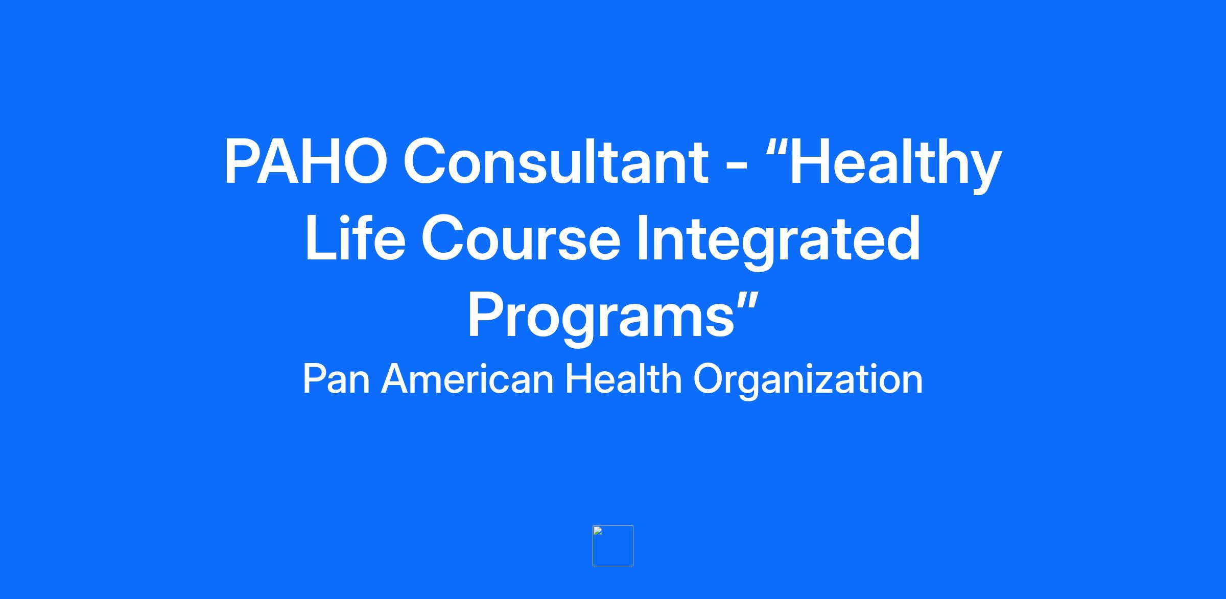 OBJECTIVE OF THE OFFICE/DEPARTMENT This is a requisition for employment at the Pan American Health Organization (PAHO)/Regional Office of the World Health Organization (WHO) Contractual Agreement: Non-Staff - International PAHO Consultant Job Posting: December 9, 2025 Closing Date: December 22, 2025, 11:59 PM Eastern Time Primary Location: Off Site Organization: HSS Health Systems and Services Schedule: Part time PURPOSE OF CONSULTANCY Position title: PAHO Consultant - “Healthy Life Course Integrated Programs” Background The primary objective of the Department of Health Systems and Services is to strengthen health systems based on Primary Health Care, support the transformation of national health systems to improve equity and resilience, strengthen Primary Health Care (PHC), and address the relevant issues related to human resources as health systems move towards the achievement of Universal Health. Its work encompasses the following areas: integrated services delivery, strengthening of health systems governance and stewardship; developing efficient and equitable financial mechanisms to ensure adequate public funding of the health system; human resources for health, life course; the Virtual Campus of Public Health, and Women’s, Maternal, Neonatal and Reproductive Health. Unit Background The Life Course Unit (HL) within the Health Services and Systems Department (HSS): a) Supports implementation of evidence-based multidimensional strategies to approach populations and individuals’ health needs, while considering demographic, epidemiologic and other transitions. b) Promotes multisectoral public health policies, plans, programs, and interventions using a life course approach leveraging the capacity of health systems to improve wellbeing and healthy trajectories of individuals and populations. c) Provides technical cooperation to strengthen integrated and person-centered care, especially in primary health care, to boost and maintain health capacities and guarantee a more effective approach to disease and risk factors across the life span. d) Promotes good practices to prevent and address bottlenecks for effective access and coverage that respond to health needs during the life span, especially in populations living in conditions of vulnerability. e) Generates continuous education to increase workforce capacity to address individuals and populations needs with a life course perspective. f) Strengthens multiagency and multisectoral alliances to guarantee collaboration towards effective work in health and development for all at all ages, leaving no one behind. DESCRIPTION OF DUTIES: Responsibilities Under the direct supervision of the Unit Chief of Life Course (HSS/HL), the consultant is expected to: a. Provide technical, programmatic, and policy assistance for the integration of life course, oral, and sensory health into PHC and UHC strategies, aligned with the HL Work Plan 2026–2028. b. Support finalization of the framework LC document and the document on integrated care in the first two decades of life. This will include organizing a regional consultation process and incorporating feedback into the documents c. Support the development, finalization, and country adoption of integrated care documents on oral and sensory health d. Collaborate on the implementation of strategic roadmaps and national plans for hearing and ear care, and oral health e. Facilitate technical cooperation for surveillance, including population-based surveys (hearing, DMFT) and monitoring of GOHAP implementation f. Strengthen partnerships with WHO Collaborating Centers and interagency mechanisms g. Perform other related duties, as assigned. Specific products/ Deliverables expected *Product payment with Certifying manager approvals is only issued once Mandatory Courses have been completed in PMIS system. 1. LC Expert Regional Consultation Meeting—Umbrella Document on integrated care Develop the concept note, methodology, and consultation report for the umbrella document on the integrated care framework. The report will include expert contributions gathered during the consultation. Due date: March 15, 2026 2. 2 Frameworks: Life Course document and integrated care in the first two decades of life document that includes regional consultation process feedback. Due date: March 15, 2026 3. Expert Consultation Meeting—Prepare concept notes and consultation reports for expert meetings on a) Sensory and b) Oral as part of the series of document on integrated care. Due date: April 15, 2026 4. Final version of oral and sensory health integrated care documents, ensuring incorporation into PHC/UHC frameworks. Due date: May 15, 2026 5. Progress reports on GOHAP 2023–2030 milestones achieved in the Region. A report on implementation activities included in countries road map covering progress made. Due date: June 30, 2026 6. Dissemination report across the region of oral and sensory health integrated care documents. Due date: July 20, 2026 7. Training reports and preparation of regional webinars and in Oral health, EHC and Life course based on commitments and work plans proposed by countries. The report will document professionals trained and tools disseminated. Due date: August 30, 2026 8. Technical reports on survey results and country progress towards GOHAP monitoring targets. Due date: October 15, 2026 9. Regional webinars on GEF7 based on the commitment included in the work plan within the framework of the Minamata Convention. Due date: November 30, 2026 10. Report of support for the developing technical guidelines and good practices for integrating care across the life course in the region. Due date: December 12, 2026 1 Deliverable 1 and 2 | March 30 2026 | USD $15,800.00 2 Deliverable 3 and 4 | May 30 2026 | USD $14,650.00 3 Deliverable 5 and 6 | July 30 2026 | USD $15,000.00 4 Deliverable 7 and 8 | October 30 2026 | USD$15,300.00 5 Deliverable 9 and 10 | December 31 2026| USD $15,500.00 [ADDITIONAL JOB DESCRIPTIO