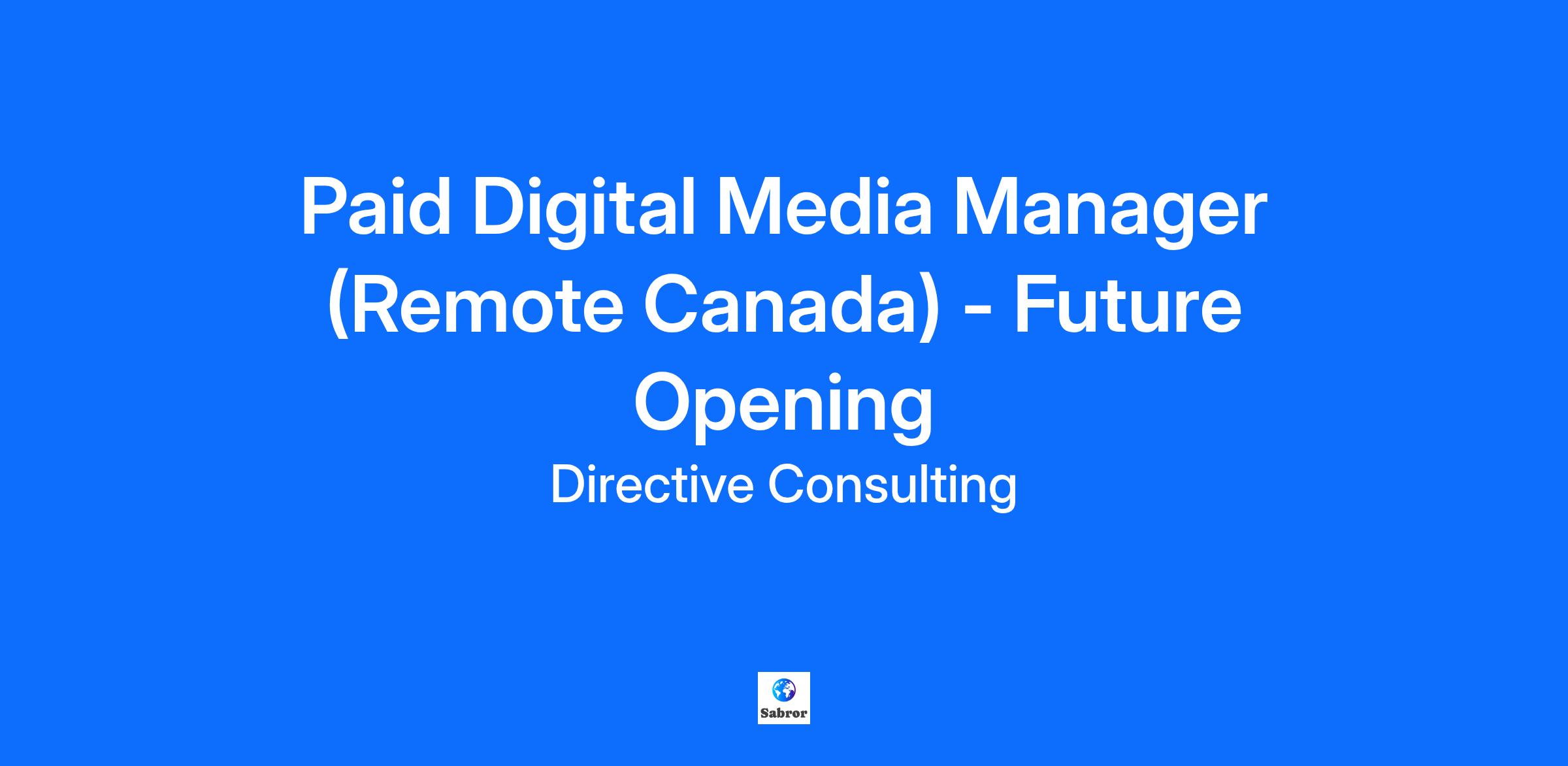 Paid Digital Media Manager (Remote Canada) - Future Opening