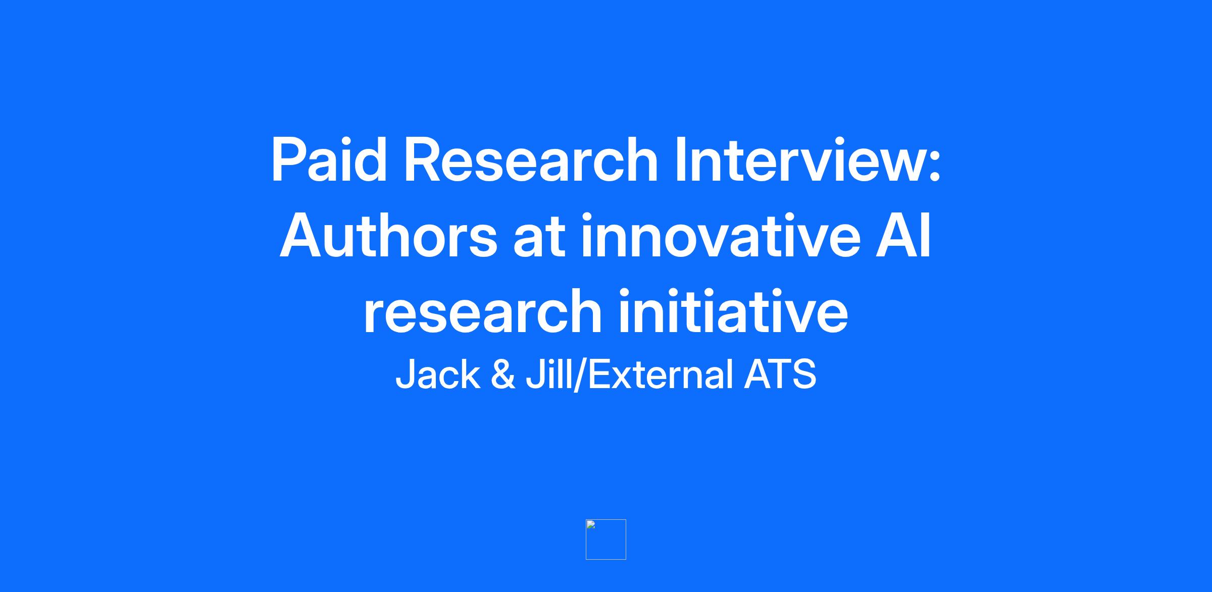 We are recruiting this role on behalf of a customer. To apply, speak to Jack, our AI recruiter. Jack will ensure you are considered for this role and can help you discover others if you ask. Paid Research Interview: Authors Company Description: Innovative AI research initiative Job Description: We are seeking established authors to participate in a paid research interview. Your insights will be critical in developing advanced AI prompts focused on interview processes, thriving in professional environments, and personal development strategies. This is a one-off opportunity to directly contribute to cutting-edge AI learning and knowledge building. Location: Remote Why this role is remarkable: Contribute directly to shaping an advanced AI’s understanding of human interaction and career success. Influence the future of AI-driven learning tools with your expertise. Flexible, one-off engagement with a direct impact, no long-term commitment required. What you will do: Participate in a structured, paid research interview to share your authorial insights. Provide expert perspectives on recruitment, technology, or self-improvement topics. Help shape AI learning models by contributing to prompt development. The ideal candidate: Published author (books or blogs) in recruitment, technology, or personal development. Demonstrates expertise and a unique perspective on human capital, technology trends, or personal growth. Excellent communicator with the ability to articulate complex ideas clearly. How to Apply: Step 1. Visit our website Step 2. Click Speak with Jack Step 3. Login with your LinkedIn profile Step 4. Talk to Jack for 20 minutes to share your experience and insights Step 5. If the hiring manager would like to meet you, Jack will make the introduction