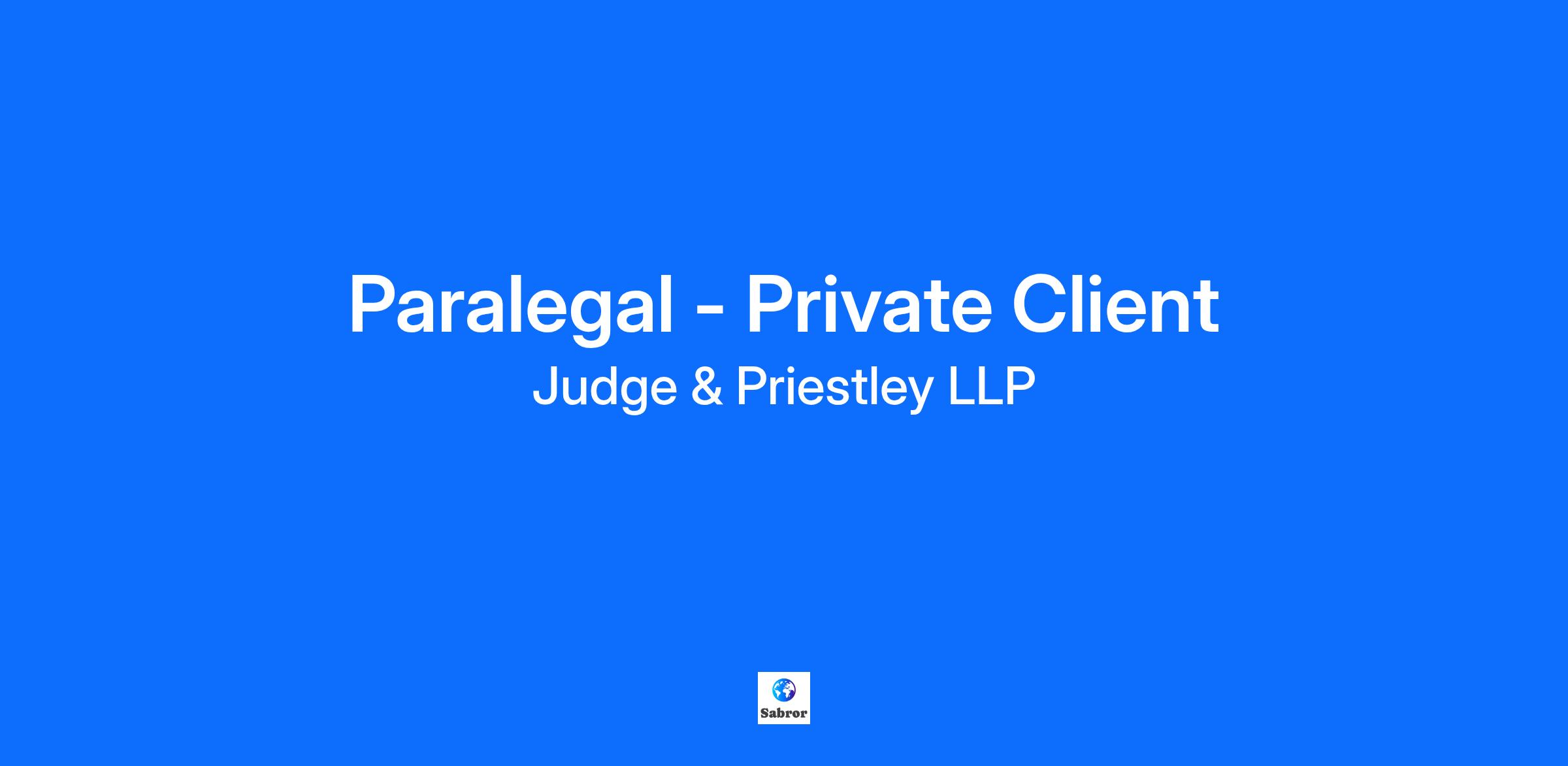 Paralegal - Private Client Department: Private Client Employment Type: Full Time Location: Bromley Description Exciting Opportunity at Judge and Priestley Solicitors LLP Our Values Expert -We will invest in the continual development of our people, team and also technology to ensure that we continue to be experts in all that we do. Professional- We are accountable to our clients, colleagues, and all those with whom we engage to ensure that we are open, transparent and act with integrity in all that we do. Friendly - Whilst at all times being professional, we will ensure that we are approachable and seek to put those with whom we deal, at ease in their dealings with us. Judge & Priestley are currenrtly hiring for a Private Client Paralegal to be based in our Sidcup office. ⚖️ J&P are proud to be listed in The Legal 500. We are a leading regional law firm, serving a wide range of commercial and private clients across London and the surrounding counties, from our Head Office in Bromley. Established since 1889, we’ve come a long way and today we are a modern, progressive practice, proud of our record on diversity and inclusion and reputation for training and promoting staff from within the business. Listed in the Legal 500, our Private Client team has grown significantly in recent years and is now one of the biggest teams in the south east, supporting and advising clients on a comprehensive range of personal matters including: estate planning, tax, trust, contentious and non -contentious probate, wills and powers of attorney and elderly client affairs. The team members support clients making important personal decisions and through often challenging and difficult times in their lives and take pride in their empathetic approach, interacting with clients in a supportive manner, in clear terms which are easily understood. We are currently looking for candidates for Beckenham, Blackheath, Sidcup and Bromley. Key Responsibilities As a paralegal in the team, you will be working with solicitors and partners to support their activities. From an early stage, you will be encouraged, under supervision, to take on direct client contact and documentation drafting as part of your training and progression. You should be a bright enthusiastic candidate with proven academic aptitude and have the genuine desire and talent for a career in law. As an able and committed team player you should enjoy legal research and be committed to taking the lead on enhancing your knowledge to ensure you have a strong understanding of the law. You also have a practical problem-solving approach to your work and the ability to think creatively whilst working efficiently in a fast-paced environment. This opportunity is much more than a job, it is a career. Skills, Knowledge and Expertise Completed the Legal Practise Course and have a keen interest in Private Client Completed either a qualifying law degree minimum 2:1 or non law degree, minimum grade 2:1 along with GDL graded at commendation or above Strong verbal and written communication skills Benefits Profit Share Scheme We want all our employees to have a share in the success of the firm. This non contractual bonus is paid in June based on the profit from the previous financial year. Medicash Once you have passed probation, you will be enrolled into our scheme which provides cashback on a range of health services. In addition, we also offer an Employee Assistance Programme and high street discounts. Birthday off If you birthday falls on a working day, you can have that day off as an extra day’s leave. Pension All employees are entitled to join our auto enrolment pension scheme. You will be enrolled in the pension after 3 months of employment dependent on age and salary. Death in Service Insurance All employees will be entitled to 2 x salary. Please ensure you complete your nomination form in your new starter pack. Annual leave You will receive an additional day’s holiday after every two years of service to a total maximum of 30 days. Legal Fees After one years’ service, you will be entitled to a contribution towards legal fees. The rules to this can be found in the staff handbook. Recruitment Incentive We offer £500 referral bonus to say thank you for introducing a job candidate that becomes employed by J&P and passes their probation. Season Ticket Loan After probation, you are entitled to apply for an interest free advance for a season ticket to use public transport to reach your place of work. Cycle to Work Scheme Allows you to make a saving of 25% - 39% on the retail price of a bike.