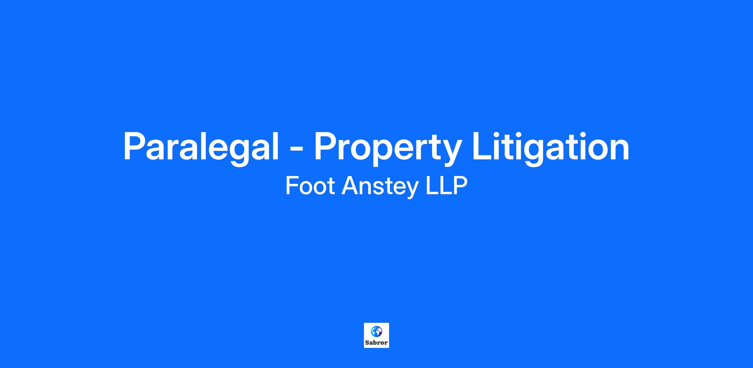Job Title: Property Litigation Paralegal Ready to take your career to the next level? We’re one of the UK’s most forward-thinking law firms, built on a foundation of innovation, collaboration, and ambition. Join us, and let’s shape the future together. ________________________________________ The role in 60 seconds * Role: Paralegal * Team: Property Litigation * Location: Hybrid working from Bristol, Southampton or Exeter * Working Pattern: Full-time * Why this role matters: If you're keen to work with a highly collaborative team and to gain invaluable exposure to a range of exciting clients, this could be the ideal opening for you ________________________________________ What you’ll do In this role, you’ll: * Be assisting in a wide range of property litigation matters concerning development land (including telecoms) and property contracts as well as landlord and tenant matters such as dilapidations, break notices, forfeiture and breach of lease covenants * Work as part of a friendly and supportive team who will train and help to develop your skills * Engage in pre-action correspondence with third parties * Take instructions from clients and regularly keep them updated * You will also be responsible for supporting senior fee earners on their own cases, helping with discrete tasks or larger projects across the team ________________________________________ What we’re looking for We’re seeking someone who thrives in a fast-paced, client-focused environment and brings: * 1 years + experience as a paralegal. * Litigation experience is preferable but not essential * Ability to demonstrate commercial awareness and business aptitude * A methodical approach with an extremely high level of attention to detail, content, and presentation of work * You’ll share our passion for innovation, collaboration, and achieving great things together. ________________________________________ Join a seriously ambitious firm At Foot Anstey, we’re committed to making a difference for our people, our clients, and society. Here’s what makes us stand out: * An ambitious growth strategy that opens up opportunities for our people to make their mark. * A client base that spans household names, thriving startups, and ambitious enterprises. * A culture built on our values of being refreshingly human, entrepreneurial, inclusive and collaborative. * A strong focus on being a responsible business with a commitment to sustainability and giving back to our communities. * Comprehensive professional development and training – whatever your role and level we have training that will support you to achieve your goals. ________________________________________ Progressive benefits tailored to you We believe our people are our greatest asset. That’s why we offer a comprehensive benefits package designed to support your professional growth and personal wellbeing, including: * Competitive salary and performance-linked bonus. * Employee sabbaticals. * Enhanced parental leave policies. * Private healthcare and wellbeing initiatives (e.g., mental health support, gym memberships). * An open, flexible working environment. * For a full list of our competitive benefits package, please click here [https://www.footanstey.com/careers/life-at-foot-anstey/our-benefits/] ________________________________________ Ready to apply? * Hit the "Apply Now" button. * Send us your CV and a quick note on why this role is perfect for you. * Our team will review your application and be in touch, whatever the outcome. * Invited for interview? * With a straightforward process typically involving two interviews, our talent acquisition team will guide you through every step, ensuring you feel confident and prepared to show us what you can do. * We’re here to support your individual needs. If you require any adaptations or adjustments, we’re more than happy to accommodate these. Before your interview, we’ll contact you to discuss the themes we’ll cover and answer any questions you might have. * If you’d like to visit our offices prior to your interview or would like help testing your kit for your virtual interview, just let us know. Let’s make your next career move the start of something extraordinary.