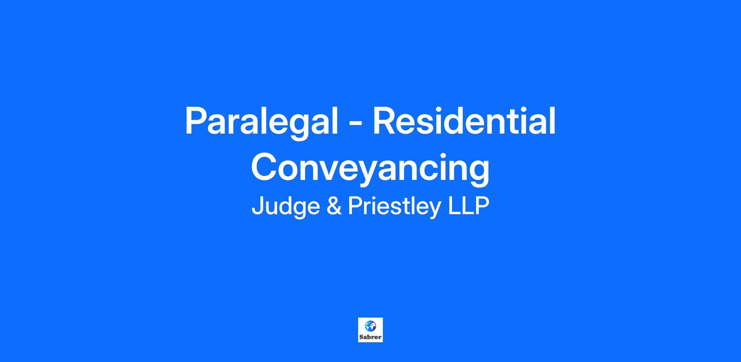 Paralegal - Residential Conveyancing Department: Conveyancing Employment Type: Full Time Location: Sidcup Description Exciting Opportunity at Judge and Priestley Solicitors LLP Our Values Expert -We will invest in the continual development of our people, team and also technology to ensure that we continue to be experts in all that we do. Professional- We are accountable to our clients, colleagues, and all those with whom we engage to ensure that we are open, transparent and act with integrity in all that we do. Friendly - Whilst at all times being professional, we will ensure that we are approachable and seek to put those with whom we deal, at ease in their dealings with us. Are you a paralegal with conveyancing experience with a qualifying law degree? Are you looking to manage your own caseload and seeking a career opportunity within a leading regional law firm? Then this is the job for you! Key Responsibilities Our experienced and close-knit Conveyancing Team are looking for an enthusiastic and committed individual to join them. You will have the opportunity to join a team accredited with the Law Society's Conveyancing Quality Scheme, the mark of excellence for the home buying process. Assisting the residential conveyancing solicitor you will use your excellent communications skills to contact/meet prospective clients, providing them with information about our services and liaise with all parties such as agents, mortgage brokers, lenders, local authorities and Land Registry. You will also carry out pre and post-exchange processes, for example drafting documents, undertaking searches, completing registrations, issuing documents to relevant parties, producing financial statements and typing reports. This is a great opportunity for a bright enthusiastic individual with proven academic aptitude and have the genuine desire and talent for a career in law. As an able and committed team player you should enjoy legal research and be committed to taking the lead on enhancing your knowledge to ensure you have a strong understanding of the law. You also have a practical problem-solving approach to your work and the ability to think creatively whilst working efficiently in a fast-paced environment. *Please see attached job description for further information. Skills, Knowledge and Expertise Skills, Knowledge and Expertise Ideally you will have experience of working in a similar conveyancing role You will have a good overview of residential conveyancing processes and terminology Qualifications Educated to GSCE A-C grade standard in Maths and English (or equivalent) Qualifying Law degree and Legal Practice Course (desirable) Benefits Profit Share Scheme We want all our employees to have a share in the success of the firm. This non contractual bonus is paid in June based on the profit from the previous financial year. Volunteer Sabbatical We offer our employees up to 2 days paid leave a year to contribute towards our CSR efforts. Long Service Awards We recognise long service through special lunches, extra time off and a monetary reward. Wellbeing - Worklife Central This multi-format programme covers four main topic areas: Careers, Families, Wellbeing and Inclusion. Support and resources are available through a wide range of online live talks, support groups and workshops, long and short-form videos accessible on demand and a library of articles, blogs and podcasts. Medicash You will be enrolled into our scheme which provides cashback on a range of health services. Pension All employees are entitled to join our auto enrolment pension scheme. You will be enrolled in the pension after 3 months of employment dependent on age and salary. Generous & Flexible Annual leave We have a minimum of 25 days across the firm and you will receive an additional day’s holiday after every completed year of service to a total maximum of 30 days. You are also able to carry over up top 5 days of unused holiday entitlement. Birthday off If your birthday falls on a working day, you can have that day off as an extra day’s leave. Maternity, Paternity and Adoption Leave We include family friendly policies when after two years’ service you will be eligible for our enhanced maternity, paternity and adoption leave. Death in Service Insurance All employees will be entitled to 2 x salary. Legal Fees After one years’ service, you will be entitled to a contribution towards legal fees. Recruitment Incentive We offer up to £2,000 (dependent on level of seniority) referral bonus to say thank you for introducing a job candidate that becomes employed by J&P and passes their probation. Season Ticket Loan After probation, you are entitled to apply for an interest free advance for a season ticket to use public transport to reach your place of work. Cycle to Work Scheme Allows you to make a saving of 25% - 39% on the retail price of a bike.