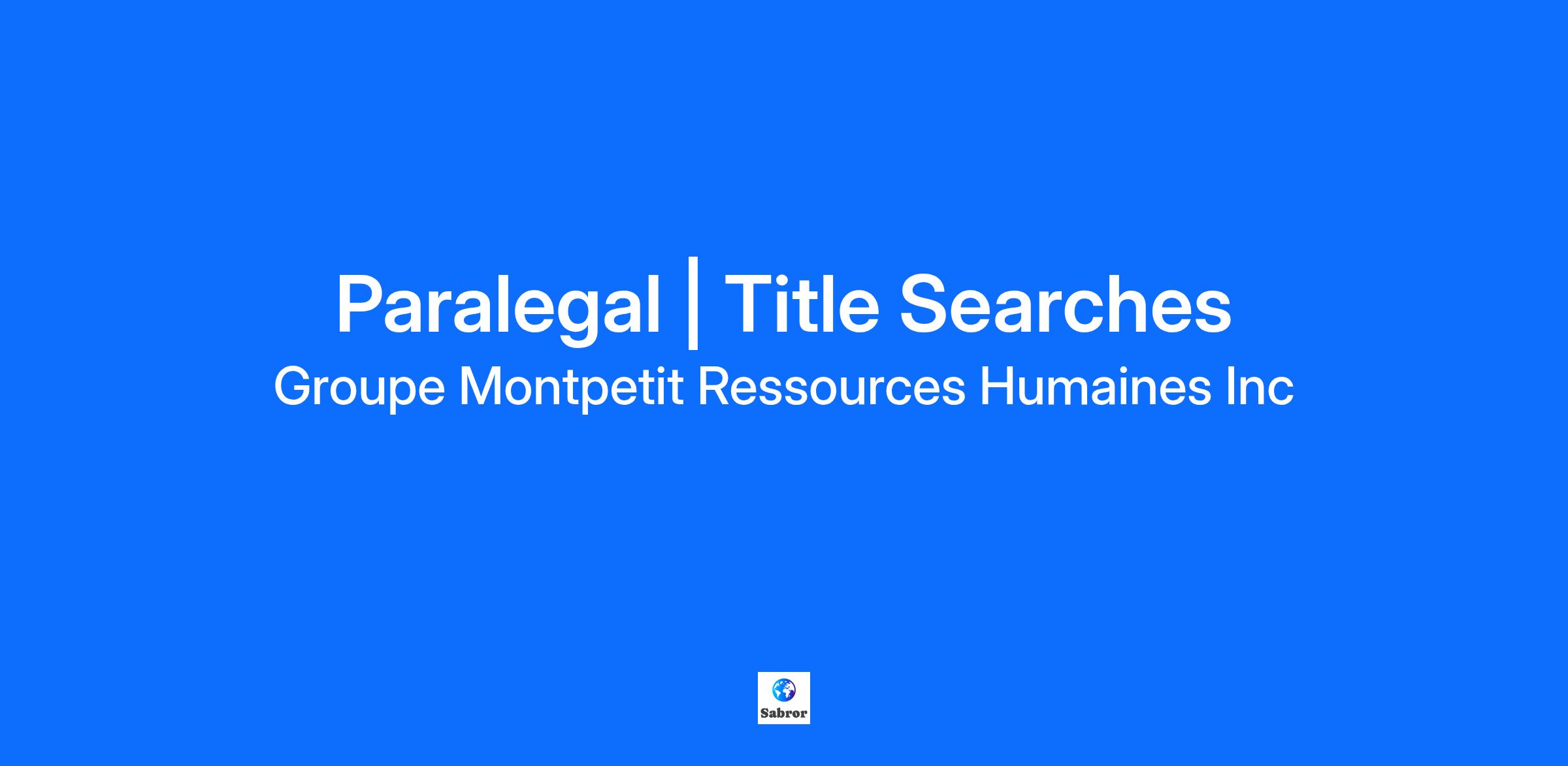 Paralegal | Title Searches Would you like to join a team of passionate professionals in a well-established firm? Here's an excellent opportunity for a Paralegal with real estate experience! Located in downtown Montreal, this employer offers competitive compensation, full benefits and the opportunity to work primarily from home! Don't wait any longer, we want to meet you! YOUR ROLE: * Review and analyze title reports; * Searches in the various databases available (Land Registry, Registrar of Companies, etc.); * Communicate with title insurance companies; * Prepare and draft documents related to real estate transactions; * Support the team by ensuring deadlines are met. SKILLS REQUIRED: * DCS in Paralegal Technology or other relevant training; * Experience in a similar position; * Good level of oral and written bilingualism; * Thoroughness, organizational skills and team spirit; * Professionalism, autonomy and good judgment. INTERESTED IN THIS CHALLENGE? We look forward to meeting you! Please send us your application in complete confidentiality at: rh@groupemontpetit.com [droit@groupemontpetit.com], specifying the reference number: 25-0203P. We thank all candidates for their interest in this position. However, only candidates selected for an interview will be contacted. We recognize the value of diversity and subscribe to the principles of equality in employment. Professional coaching services are available at extra cost. CNESST - License number : AP-2000442