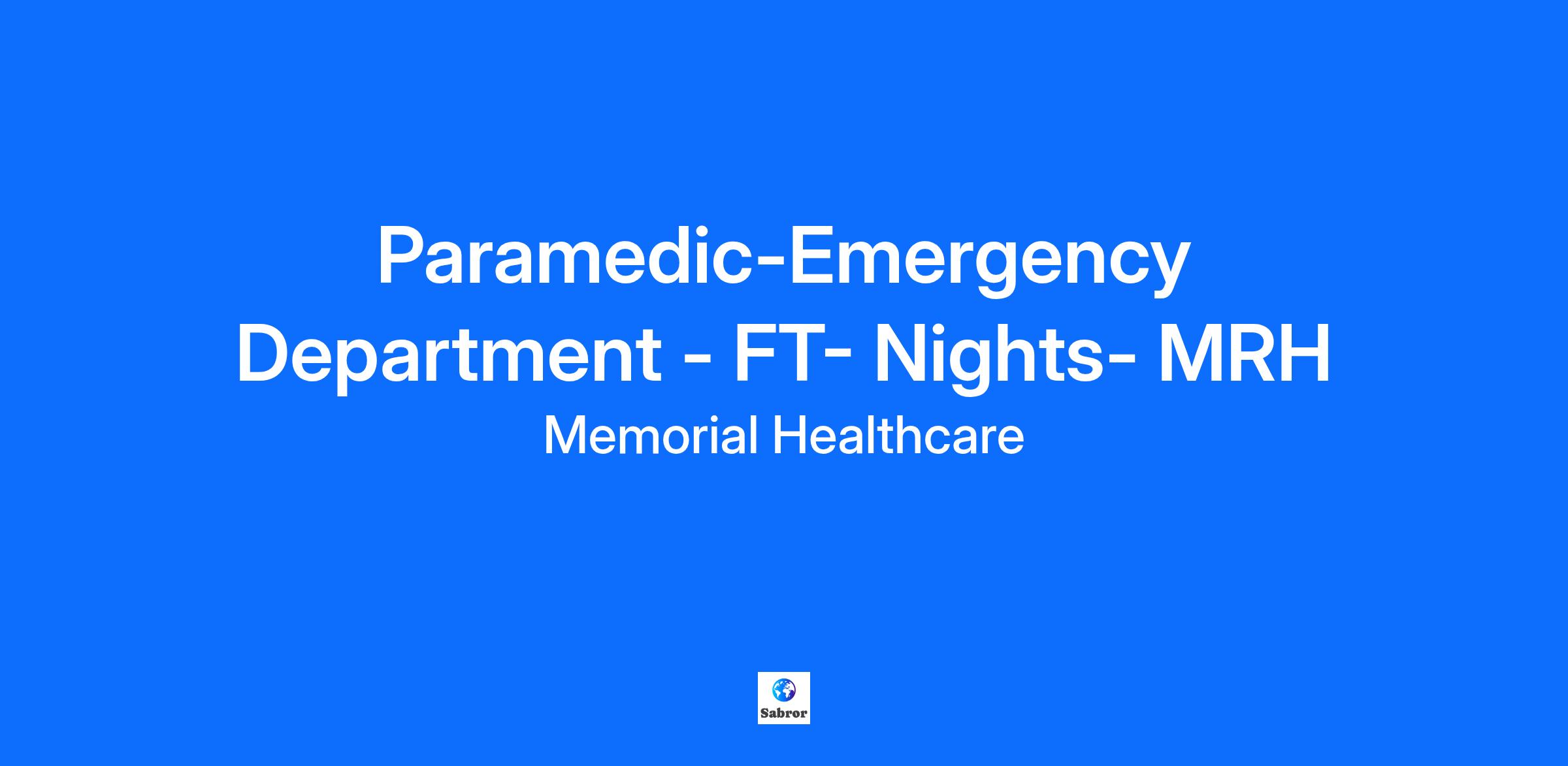 Location: Hollywood, Florida At Memorial, we are dedicated to improving the health, well-being and, most of all, quality of life for the people entrusted to our care. An unwavering commitment to our service vision is what makes the difference. It is the foundation of The Memorial Experience. Summary: Provides patient care under the direction of a physician, physician's assistant or registered nurse. Responsibilities: Assists physicians and nurses with performing medical procedures, including examinations, minor surgical interventions, orthopedic treatment, and resuscitation.Documents and communicates assessment findings or changes in physical, mental and emotional conditions to medical/nursing staff.Assists with keeping department areas clean, stocked, and orderly.Upon successful completion of training and demonstration of clinical competency, will be able to perform the following functions in Emergency Departments when approved by and under the supervision of the Emergency Services Medical Director: Ultrasound Guided Peripheral IV Placement, Intraosseous (IO) placement, Insertion of Nasogastric Tube, Triage (all aspects except Acuity Level Designation), IV Fluid Administration, Medication Administration (limited), Operation of IV infusion device (IV pump).Performs technical procedures as delegated, including but not limited to establishing IV access, performing ECGs and vital statistics/telemetry monitoring, collecting specimens, providing wound care, and transporting patients. Competencies: ACCOUNTABILITY, CUSTOMER SERVICE, ORGANIZATION SKILLS (3), PATIENT AND FAMILY CENTERED CARE, PATIENT SAFETY - ANCILLARY/SUPPORT, PROBLEM SOLVING, RESPONDING TO CHANGE, STANDARDS OF BEHAVIOR Education and Certification Requirements: Vocation Technical (Required)BLS American Heart E-Card (BLS AHA ECARD) - American Heart Association (AMERICAN HEART), BLS American Heart RQI E-Card (BLS AHA-RQI ECARD) - American Heart Association (AMERICAN HEART), BLS Cert American Heart_non ecard (BLS AHA) - American Heart Association (AMERICAN HEART), BLS Certification Grace (BLS GRACE) - Employee Grace Period for Essential Credential (GRACE), BLS Cert Red Cross (BLS RC) - Red Cross (RED CROSS), Paramedic License (PMD LICENSE) - State of Florida (FL) Additional Job Information: Complexity of Work: Requires critical thinking skills, effective communications skills, decisive judgment and the ability to work with minimal supervision. Must be able to work in a stressful environment and take appropriate action. Required Work Experience: No prior work experience required. Other Information: Department specific credentials - See below:Advanced Cardiac Life Support (ACLS) required for Tele, ICU, L&D, OB, Cath Lab, OR, PACU, ER, CV, and Procedural areas.PALS required for Pediatric areas with the exception of NICU.For added clarification, see Mandatory Education Requirements grid. Working Conditions and Physical Requirements: Bending and Stooping = 60% Climbing = 0% Keyboard Entry = 60% Kneeling = 60% Lifting/Carrying Patients 35 Pounds or Greater = 60% Lifting or Carrying 0 - 25 lbs Non-Patient = 60% Lifting or Carrying 2501 lbs - 75 lbs Non-Patient = 40% Lifting or Carrying > 75 lbs Non-Patient = 0% Pushing or Pulling 0 - 25 lbs Non-Patient = 60% Pushing or Pulling 26 - 75 lbs Non-Patient = 60% Pushing or Pulling > 75 lbs Non-Patient = 60% Reaching = 60% Repetitive Movement Foot/Leg = 60% Repetitive Movement Hand/Arm = 60% Running = 40% Sitting = 40% Squatting = 60% Standing = 60% Walking = 60% Audible Speech = 60% Hearing Acuity = 60% Smelling Acuity = 60% Taste Discrimination = 0% Depth Perception = 60% Distinguish Color = 60% Seeing - Far = 60% Seeing - Near = 60% Bio hazardous Waste = 60% Biological Hazards - Respiratory = 60% Biological Hazards - Skin or Ingestion = 60% Blood and/or Bodily Fluids = 60% Communicable Diseases and/or Pathogens = 60% Asbestos = 20% Cytotoxic Chemicals = 40% Dust = 60% Gas/Vapors/Fumes = 60% Hazardous Chemicals = 60% Hazardous Medication = 20% Latex = 40% Computer Monitor = 60% Domestic Animals = 40% Extreme Heat/Cold = 0% Fire Risk = 20% Hazardous Noise = 20% Heating Devices = 60% Hypoxia = 0% Laser/High Intensity Lights = 20% Magnetic Fields = 20% Moving Mechanical Parts = 60% Needles/Sharp Objects = 60% Potential Electric Shock = 60% Potential for Physical Assault = 60% Radiation = 40% Sudden Decompression During Flights = 0% Unprotected Heights = 0% Wet or Slippery Surfaces = 60% Shift: Nights Disclaimer: This job description is not intended, nor should it be construed to be an exhaustive list of all responsibilities, skills, efforts or working conditions associated with the job. It is intended to indicate the general nature and level of work performed by employees within this classification. Wages shown on independent job boards reflect market averages, not specific to any employer. We encourage candidates to talk to their Memorial Healthcare System recruiter to discuss actual pay rates, during the hiring process. Memorial Healthcare System is proud to be an equal opportunity employer committed to workplace diversity. Memorial Healthcare System recruits, hires and promotes qualified candidates for employment opportunities without regard to race, color, age, religion, gender, gender identity or expression, sexual orientation, national origin, veteran status, disability, genetic information, or any factor prohibited by law. We are proud to offer Veteran’s Preference to former military, reservists and military spouses (including widows and widowers). You must indicate your status on your application to take advantage of this program. Employment is subject to post offer, pre-placement assessment, including drug testing. If you need reasonable accommodation during the application process, please call 954-276-8340 (M-F, 8am-5pm) or email TalentAcquisitionCenter@mhs.net Be where care matters. At Memorial Healthcare System, we are dedicated to improving the health, well-being, and quality of li