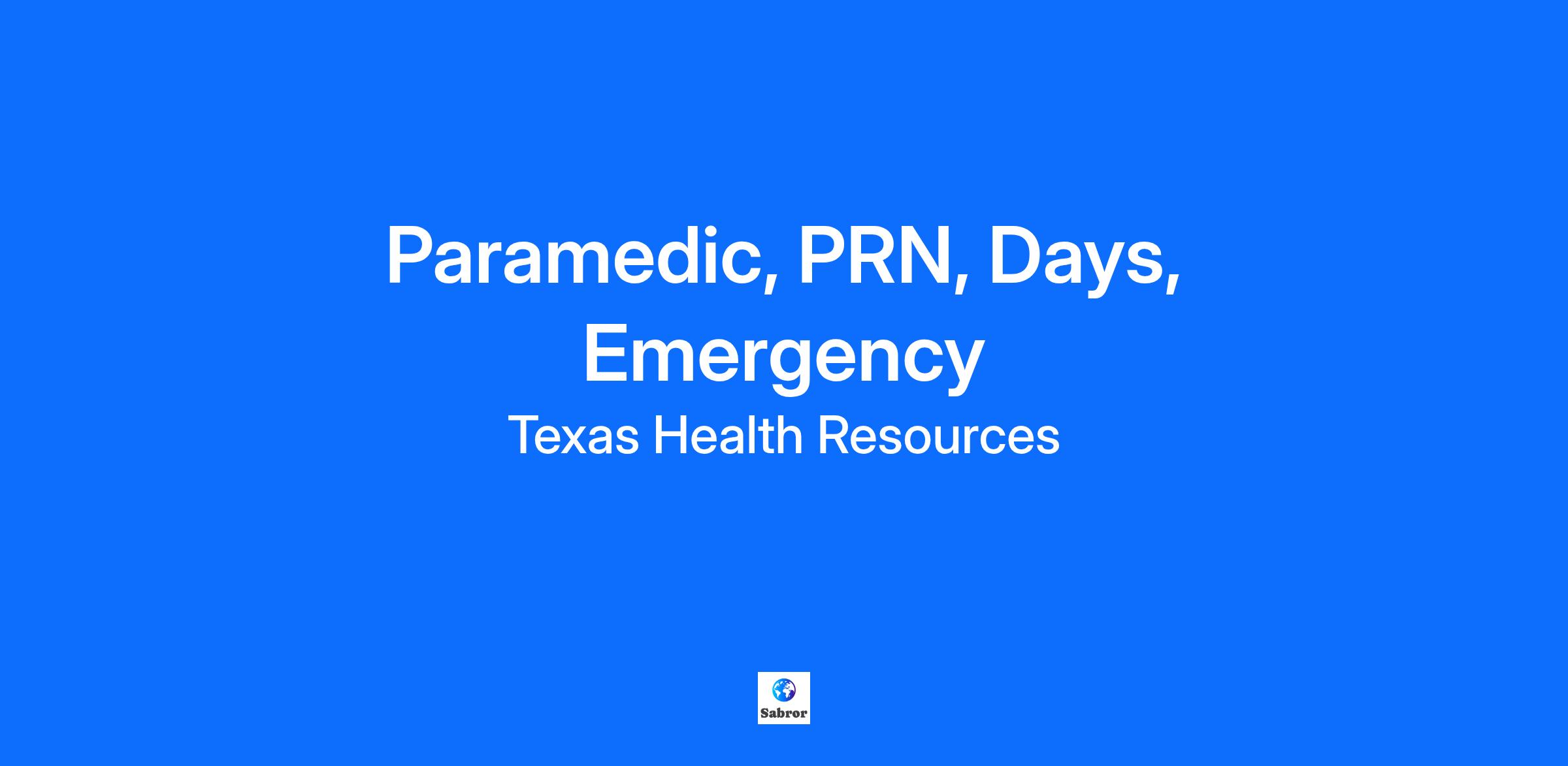 Paramedic (EMT-P) Emergency Department Fast-paced, high volume Emergency Department is looking for top skilled Paramedic. Is that you? Work location: Texas Health HEB, 1600 Hospital Parkway in Bedford, TX 76022. Work hours: PRN (as needed), Day Shift (7a to 7p). Weekend and holiday requirements. Great growth opportunity. Department highlights: · Self-Scheduling that helps with work/life balance as well as opportunities for educational and career growth · Robust Unit Based Council (UBC) and engaged leadership team · Fast-Paced, high-volume department averaging 200 patients/day · The professional paramedic exhibits understanding of basic human needs and demonstrates recognition and understanding of patient’s affiliations. What You Will Do Provides Safe Patient Care Under Physician Delegation: · Administers IV fluid without additives, saline flush, IV antibiotics, all IV medications excluding controlled and RSI medications. ACLS drugs (including drips) using barcode medication verification (BMV) during medication administrations. All IM and oral medications excluding controlled drugs. Plans the care of the patient · Completes accurate documentation in the electronic health record · Provides consistent attention to airway, intake, elimination, sleep, rest, mobility and hygiene needs · Applies antiembolic stockings and sequential compression devices · Cervical collar management · External defibrillation · Nasal cannula or oxygen mask application · Oral airway insertion and removal · Ultrasound-guided peripheral IV Access · Draw blood from ports · Other duties as assigned by RN Additional perks of being a Texas Health Paramedic · Delivery of high quality of patient care through nursing education, nursing research and innovations in nursing practice. · Strong Unit Based Council (UBC). · A supportive, team environment with outstanding opportunities for growth. Texas Health HEB is a 252-bed, acute-care, full-service hospital serving our community since 1973. Our location in the DFW mid cities area provides convenient care to the residents of Hurst, Euless, Bedford and the surrounding communities. We specialize in women’s services, perioperative services, heart and vascular care, acute care/med surg, intermediate care/step-down, oncology and emergency medicine. Additional specialties include nuclear medicine, interventional radiology, respiratory therapy, and neuroscience care, including neurosurgery and stroke. Texas Health HEB is ANCC Magnet Designated, Joint Commission-certified in Chest Pain (PHAC), a Primary Stroke Center, a Level III Trauma Center, Level II NICU and Level III for maternal care. We’re a top choice in North Texas for emergency services, surgical services, women’s health, cardiac care and much more. Learn more about our culture, benefits, and recent awards. Do you still have questions or concerns? Feel free to email your questions to recruitment@texashealth.org. Here’s What You Need · High School diploma or equivalent (GED) required · 3 months paramedic experience or completion of a paramedic internship, required. 1 year Paramedic experience in EMS or Fire Dept preferred · EMT-P - Emergency Medical Technician-Paramedic required or · LP - Licensed Paramedic · ACLS - Advanced Cardiac Life Support, within 90 days of hire required and · BCLS - Basic Cardiac Life Support prior to providing independent patient care and maintained quarterly required and · PALS - Pediatric Advanced Life Support, within 90 days of hire required and · CPI - Crisis Prevention Intervention Training (ED Only), within 60 days of hire required.