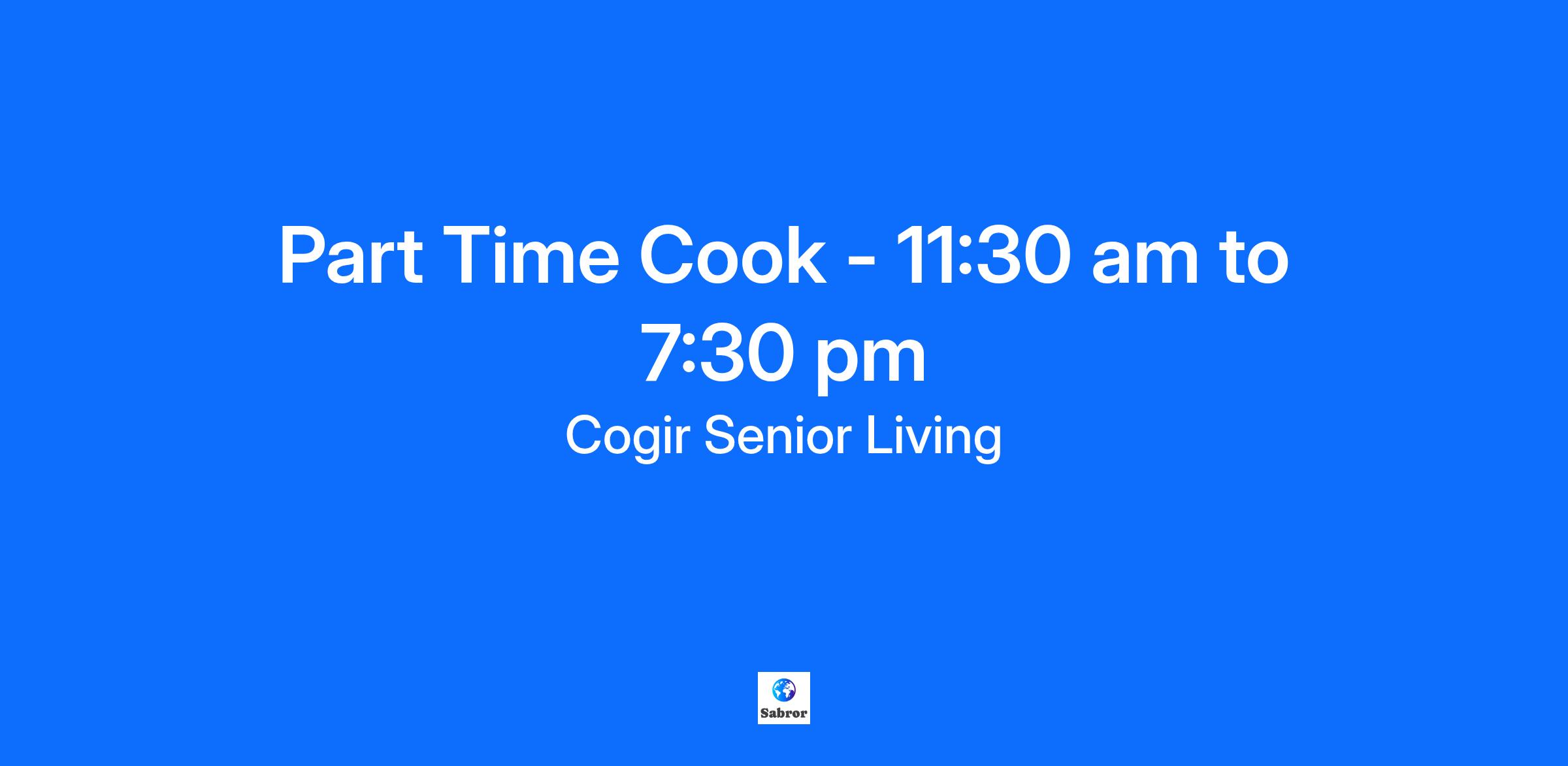 Part Time Cook - 11:30 am to 7:30 pm
