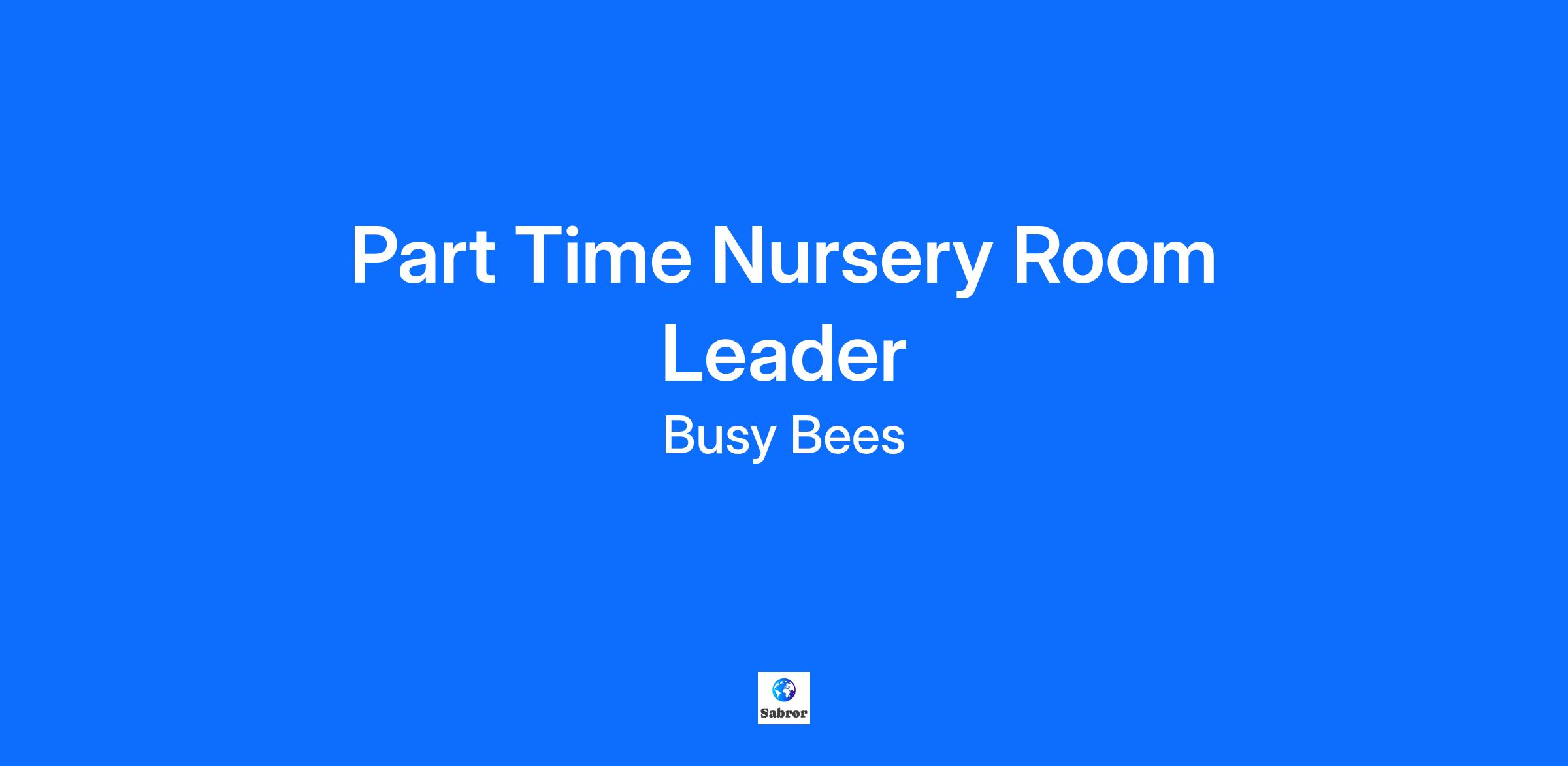 Part Time Nursery Room Leader