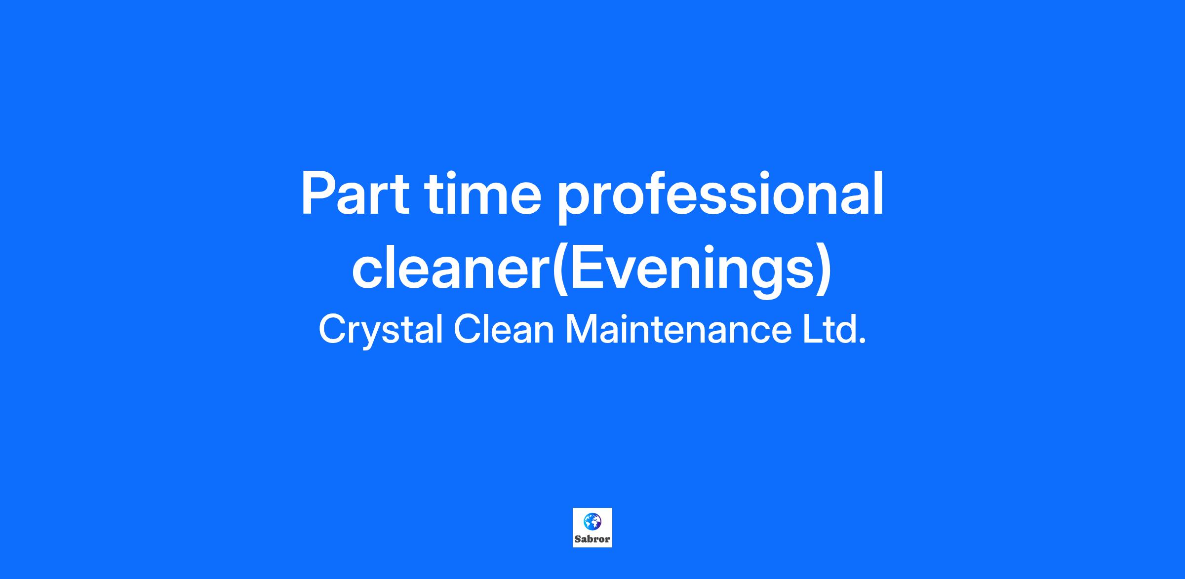 Crystal Clean Maintenance is a family-owned company that has been in business for over 60 years, employing over 250 full and part-time cleaners across the Maritimes. We take pride in our team and recognize that our service is only as good as the members of our team. Equal opportunity employer. Main Duties General cleaning for corporate clients, which includes: Cleaning and disinfecting high traffic areas and washrooms and other areas as requested by the customer. Replenish supplies in restrooms, break rooms and other areas. Sweep, mop, vacuum. Empty trash cans and recyclables into disposal areas. Use of an auto scrubber. **We are looking for candidates for a full-time position, 5 days a week (25 hours per week) plus additional floor care hours as available. Hours: 5:00 p.m. – 10:00 p.m. Pay: $16.50 per hour Location: West end of Halifax** Work Environment Fast passed environment with physical demands includes walking and standing, bending, crouching Requirements Legally able to obtain employment in Canada without sponsorship. Detail oriented. Friendly and Professional. Able to work successfully alone or in a team-oriented environment. Desire to learn, seek new challenges and take on additional responsibilities. Reasoning ability. Good common sense with ability to solve practical problems. Identify potential safety or maintenance issues. Communicate them to your supervisor. Comply with all safety policies and procedures relating to performance of tasks Use of products or supplies and incident reporting. Must have knowledge of floor care, including stripping and waxing, carpet extraction, burnishing, etc. Language Skills Ability to communicate effectively in English Understand and follow directions in English. Benefits Competitive wages are paid twice monthly. Crystal Clean Maintenance has over 60 years of experience, employing over 150 full and part-time cleaners. We take pride in the team that we have built by recognizing that our service is only as good as the members of our team.