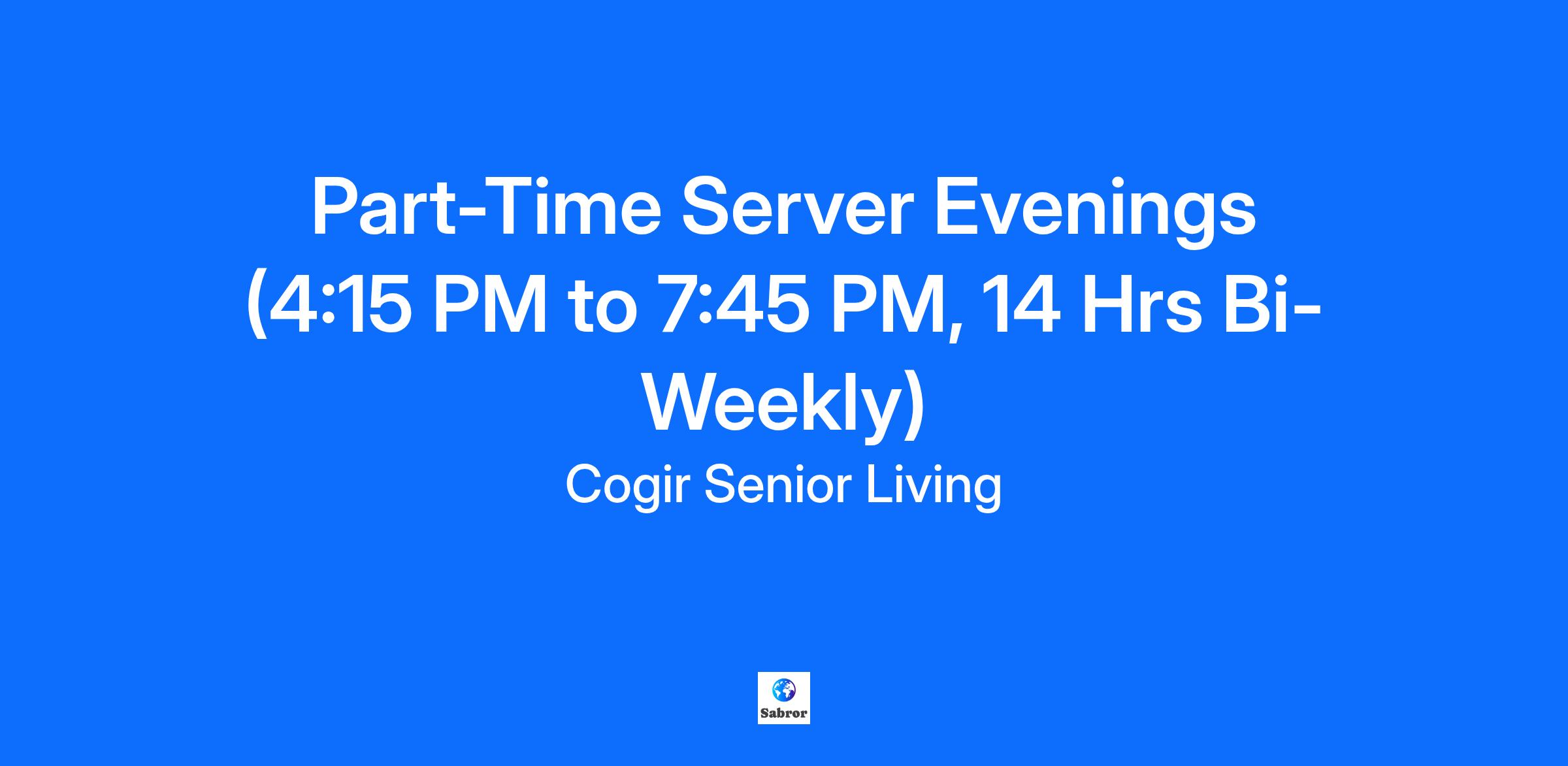 Part-Time Server Evenings (4:15 PM to 7:45 PM, 14 Hrs Bi-Weekly)