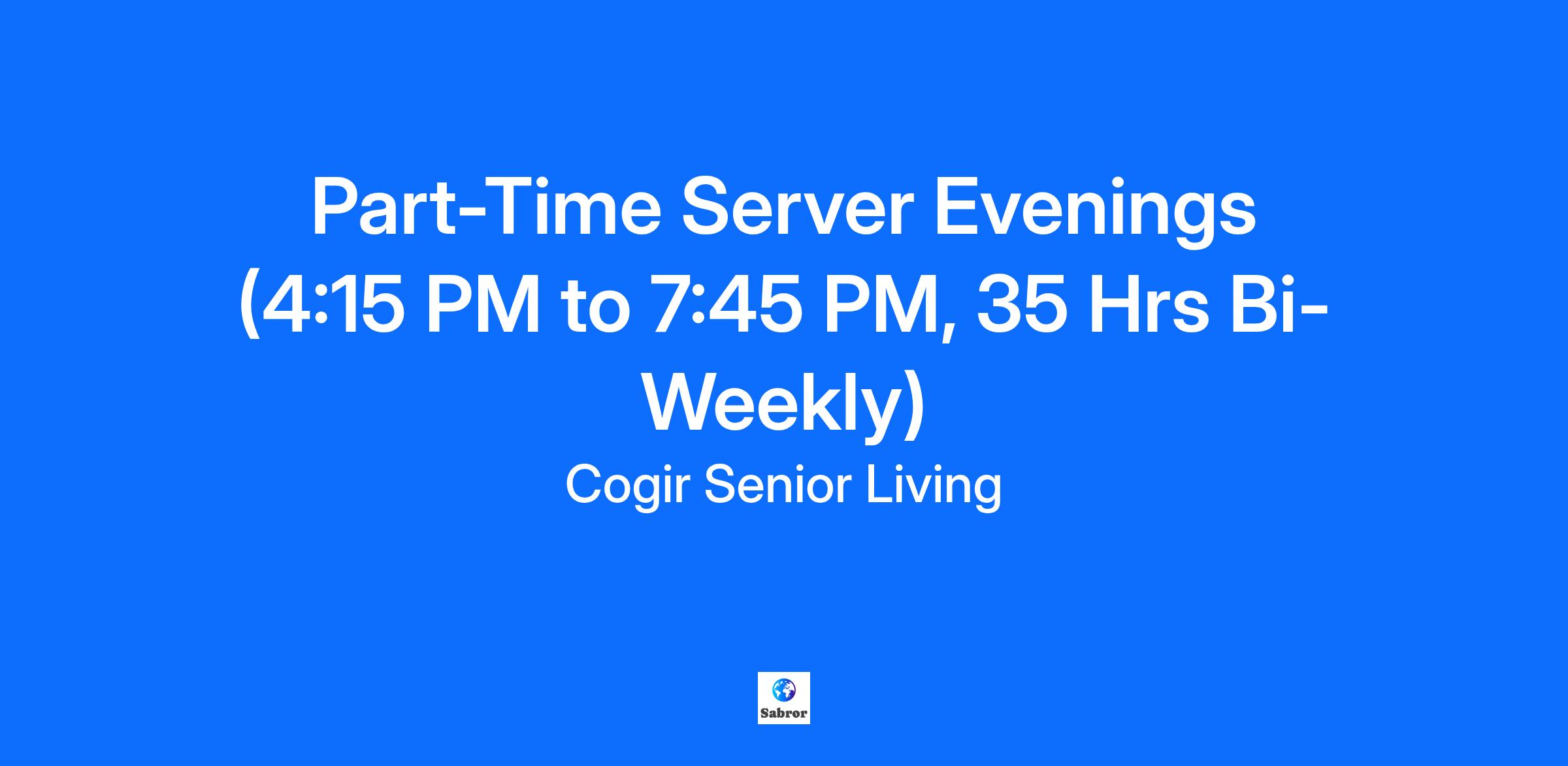 Part-Time Server Evenings (4:15 PM to 7:45 PM, 35 Hrs Bi-Weekly)