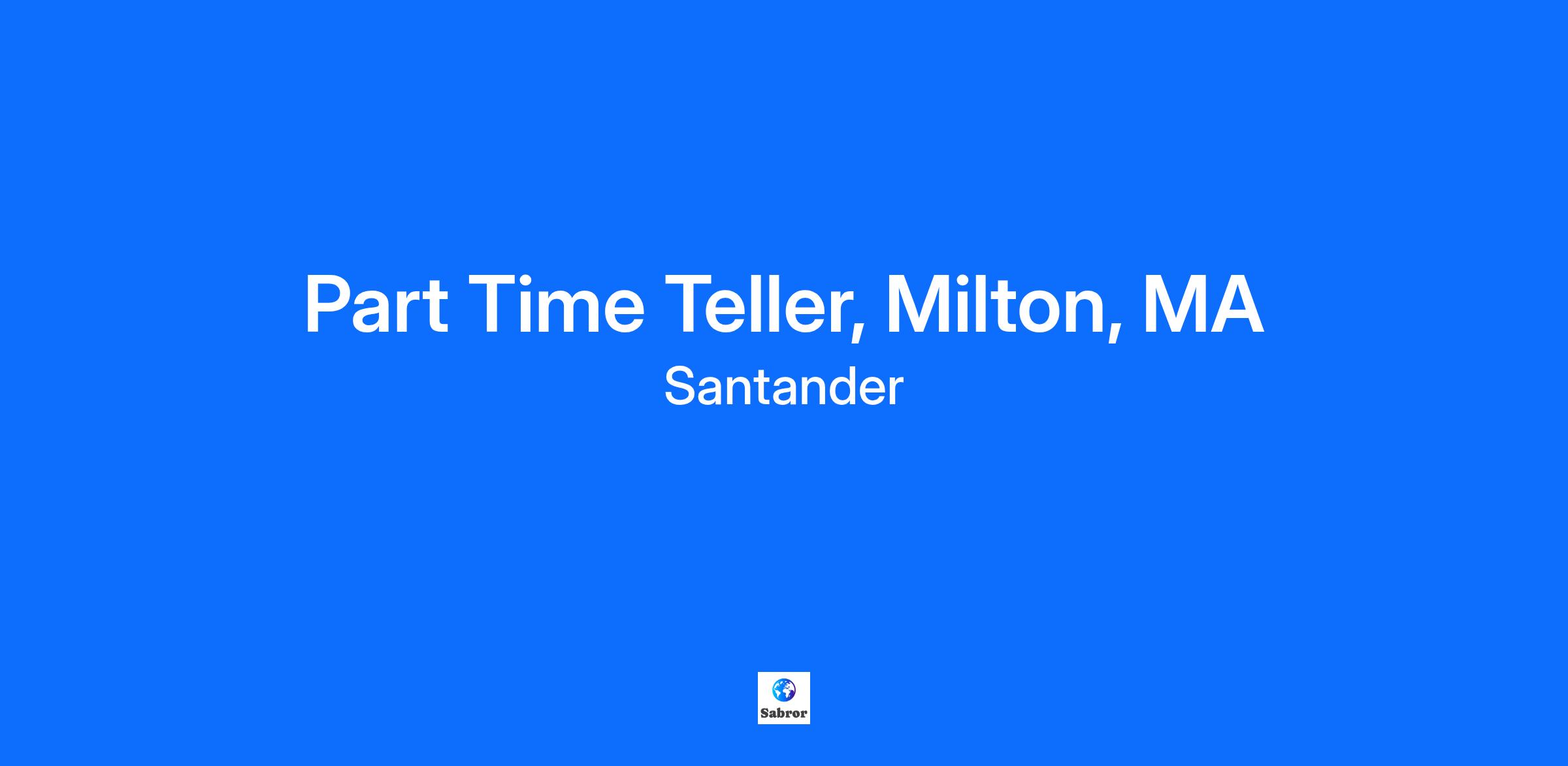 Part Time Teller, Milton, MA Country: United States of America Your Journey Starts Here: Santander is a global leader and innovator in the financial services industry. We believe that our employees are our greatest asset. Our focus is on fostering an enriching journey that empowers you to explore diverse career opportunities while nurturing your personal growth. We are committed to creating an environment where continuous learning and development are prioritized, enabling you to thrive both professionally and personally. Here, you will find ample opportunities to connect and collaborate with talented colleagues from around the world, sharing insights and driving innovation together. Join us at Santander, where you are supported by a culture of engagement and a commitment to your success. An exciting journey awaits, if you are interested in exploring the possibilities We Want to Talk to You! The Difference You Make: As a Teller, you engage in assisting with various financial needs and processing transactions. You provide exceptional customer service, resolve concerns, minimize risk, defend against fraud, refer product solutions, and escalate complex issues for timely resolution. Provide an elevated level of exceptional customer service by welcoming customers, minimizing wait times and assisting with their banking needs. Process transactions, including deposits, withdrawals, and transfers. Handle cash and maintain accurate cash drawer balances. Adhere to all bank policies and procedures, including compliance and risk management protocols to prevent fraudulent situations. Recognize opportunities and cross-sell bank products to deepen customer relationships. Engage customers and leverage digital tools to educate them on self-service options. Assist with custodianship, audits, and other operational tasks. Maintain a clean and organized work area, to create a welcoming environment for customers. Responsibilities may extend to supporting nearby branch locations based on business necessity. What You Bring: To perform this job successfully, an individual must be able to perform each essential duty satisfactorily. The requirements listed below are representative of the knowledge, skill, and/or ability required. Reasonable accommodations may be made to enable individuals with disabilities to perform the essential functions. High school diploma, GED: or equivalent work experience - Required. 6+ Months Cash Handling experience - Required. 6+ Months Demonstrated customer service experience - Required. Excellent customer service skills and a passion for helping others. Ability to identify and escalate concerns of risk to appropriate channels. Ability to follow directions, policies, and procedures. Effective listening and communication skills. Comfortable in using digital tools and technology to enhance customer engagement. Energetic, organized and able to multi-task in a fast-paced, changing environment. Understands the necessity and value of accuracy and attention to detail. Computer proficiency and basic math skills. Ability to work branch hours, which can include weekends and evenings. Certifications: No Certifications listed for this job. It Would Be Nice For You To Have: Established work history or equivalent demonstrated through a combination of work experience, training, military service, or education. Experience in Microsoft Office products. What Else You Need To Know: The base pay range for this position is posted below and represents the annualized salary range. For hourly positions (non-exempt), the annual range is based on a 40-hour work week. The exact compensation may vary based on skills, experience, training, licensure and certifications and location. Base Pay Range Minimum: $29,250.00 USD Maximum: $45,000.00 USD Link to Santander Benefits: Santander Benefits - 2025 Santander OnGoing/NH eGuide (foleon.com) Risk Culture: We embrace a strong risk culture and all of our professionals at all levels are expected to take a proactive and responsible approach toward risk management. EEO Statement: At Santander, we value and respect differences in our workforce. We actively encourage everyone to apply. Santander is an equal opportunity employer. All qualified applicants will receive consideration for employment without regard to race, color, religion, sex, sexual orientation, gender identity, national origin, genetics, disability, age, veteran status or any other characteristic protected by law. Working Conditions: Frequent minimal physical effort such as sitting, standing and walking is required for this role. Depending on location, occasional moving and lifting light equipment and/or furniture may be required. Employer Rights: This job description does not list all of the job duties of the job. You may be asked by your supervisors or managers to perform other duties. You may be evaluated in part based upon your performance of the tasks listed in this job description. The employer has the right to revise this job description at any time. This job description is not a contract for employment and either you or the employer may terminate your employment at any time for any reason. What To Do Next: If this sounds like a role you are interested in, then please apply. We are committed to providing an inclusive and accessible application process for all candidates. If you require any assistance or accommodation due to a disability or any other reason, please contact us at TAOps@santander.us to discuss your needs. The Santander Effect Our work touches 140 million lives every day. How? By always innovating, sharing our experiences, questioning how we do things and adapting to new challenges. As we keep reinventing ourselves for the digital age, you’ll find that with us, even your smallest action will have a massive impact. That’s the Santander Effect.
