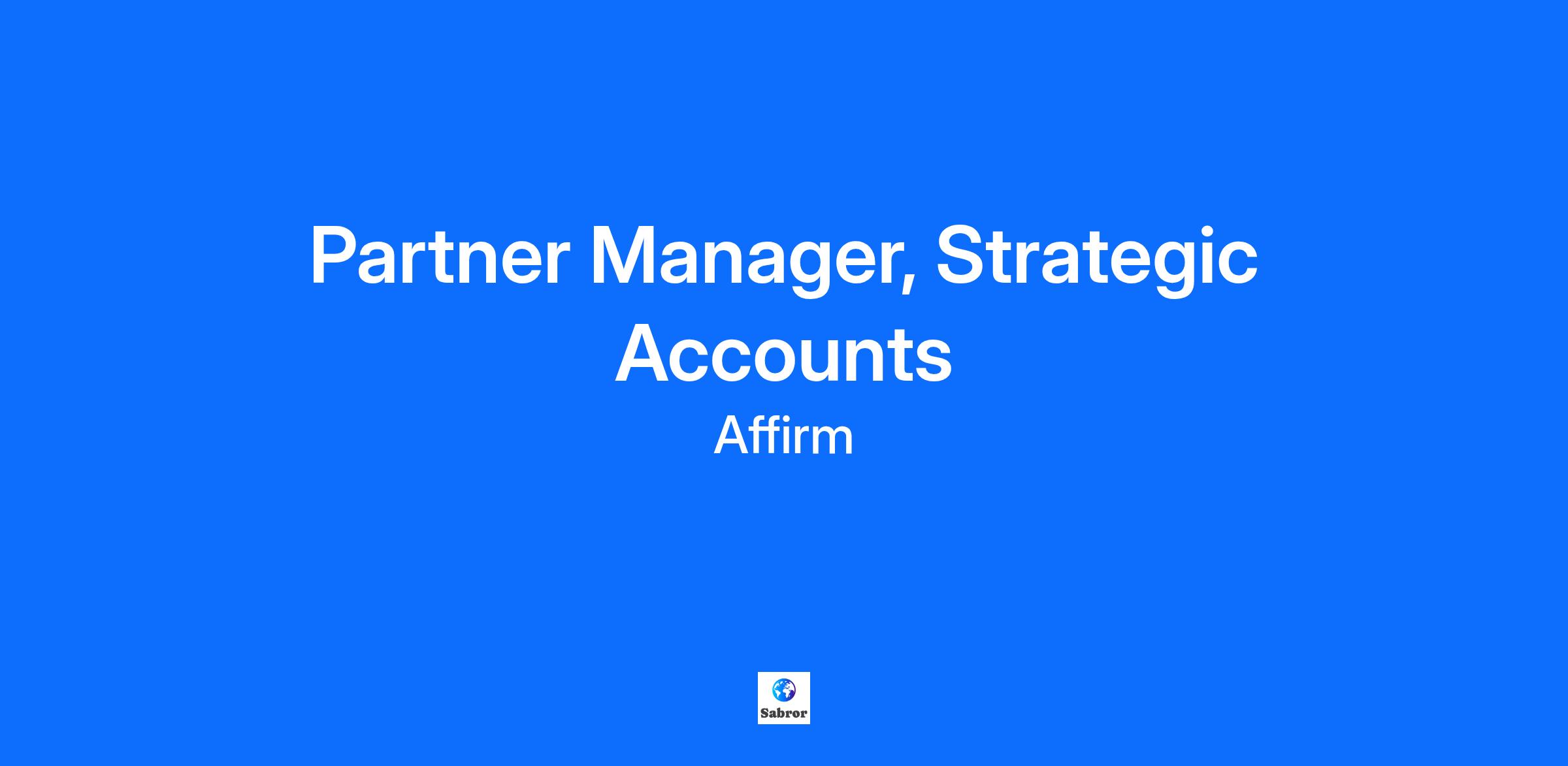 Affirm is reinventing credit to make it more honest and friendly, giving consumers the flexibility to buy now and pay later without any hidden fees or compounding interest. The Partner Manager for Strategic Accounts will own one of Affirm's most critical and strategic third-party partnerships to expand the distribution of Affirm's services to merchants and end users, with the ultimate goal of driving large-scale GMV and revenue growth. This is an integral, business-critical role requiring outstanding relationship management and strategic planning skills to influence internal and external stakeholders and create strategic opportunities. What You'll Do * Directly manage one of Affirm’s most strategic platform distribution partners, spearheading strategic initiatives to foster business expansion and generate growth for Affirm * Drive execution of the partnership’s expansion strategy into new markets, verticals, and product lines * Create and execute a partner management strategy to increase GMV, revenue, and users, while broadening Affirm's relationship coverage and influence with the partner * Assess partner performance and propose strategies to boost product adoptionand ensure continual growth through the partnership * Orchestrate cross-functional teams across our product, technical, analytics, marketing, and risk organizations to execute partnership initiatives * Negotiate and facilitate complex commercial contracts with the partner What We Look For * 6+ years of external B2B client/partner-facing experience, preferably in a high-growth tech environment * Vertical experience in e-commerce, fintech, payments, and/or consumer financing is preferred * Prior role experience in strategic partnerships, business development, or enterprise client management is preferred * Excellent customer and/or partnership relationship management skills with the ability to manage high profile accounts * Experience in managing cross-functional projects with a high attention to detail * An exceedingly strong communicator, both in written (e.g. proposals, memos, e-mails) and verbal communications (e.g. presenting) * Strong analytical skills to evaluate business performance and communicate program performance to both internal and external stakeholders * Proven ability to oversee and facilitate complex commercial contract negotiations and successful deal execution (e.g. RFPs, renewals, deal expansions) * Create and maintain comprehensive documentation of partnership processes, programs, and key performance indicators * Ability to take initiative, adapt quickly to changing priorities, and go beyond defined responsibilities to ensure the success of projects and the broader team Base Pay Grade - K Equity Grade - 5 Employees new to Affirm typically come in at the start of the pay range. Affirm focuses on providing a simple and transparent pay structure which is based on a variety of factors, including location, experience and job-related skills. For sales roles, the range provided is the role’s On Target Earnings ("OTE") range, which includes the annual base pay and the sales incentive target. Base pay is part of a total compensation package that may include monthly stipends for health, wellness and tech spending, and benefits (including 100% subsidized medical coverage, dental and vision for you and your dependents). In addition, the employees may be eligible for equity rewards offered by Affirm Holdings, Inc. (parent company). CAN On Target Earnings pay range per year: $163,500 - $238,500 #LI-Remote Affirm is proud to be a remote-first company! The majority of our roles are remote and you can work almost anywhere within the country of employment. Affirmers in proximal roles have the flexibility to work remotely, but will occasionally be required to work out of their assigned Affirm office. A limited number of roles remain office-based due to the nature of their job responsibilities. We’re extremely proud to offer competitive benefits that are anchored to our core value of people come first. Some key highlights of our benefits package include: * Health care coverage - Affirm covers all premiums for all levels of coverage for you and your dependents * Flexible Spending Wallets - generous stipends for spending on Technology, Food, various Lifestyle needs, and family forming expenses * Time off - competitive vacation and holiday schedules allowing you to take time off to rest and recharge * ESPP - An employee stock purchase plan enabling you to buy shares of Affirm at a discount We believe It’s On Us to provide an inclusive interview experience for all, including people with disabilities. We are happy to provide reasonable accommodations to candidates in need of individualized support during the hiring process. [For U.S. positions that could be performed in Los Angeles or San Francisco] Pursuant to the San Francisco Fair Chance Ordinance and Los Angeles Fair Chance Initiative for Hiring Ordinance, Affirm will consider for employment qualified applicants with arrest and conviction records. By clicking "Submit Application," you acknowledge that you have read Affirm's Global Candidate Privacy Notice [https://www.affirm.com/global-candidate-privacy-notice] and hereby freely and unambiguously give informed consent to the collection, processing, use, and storage of your personal information as described therein.