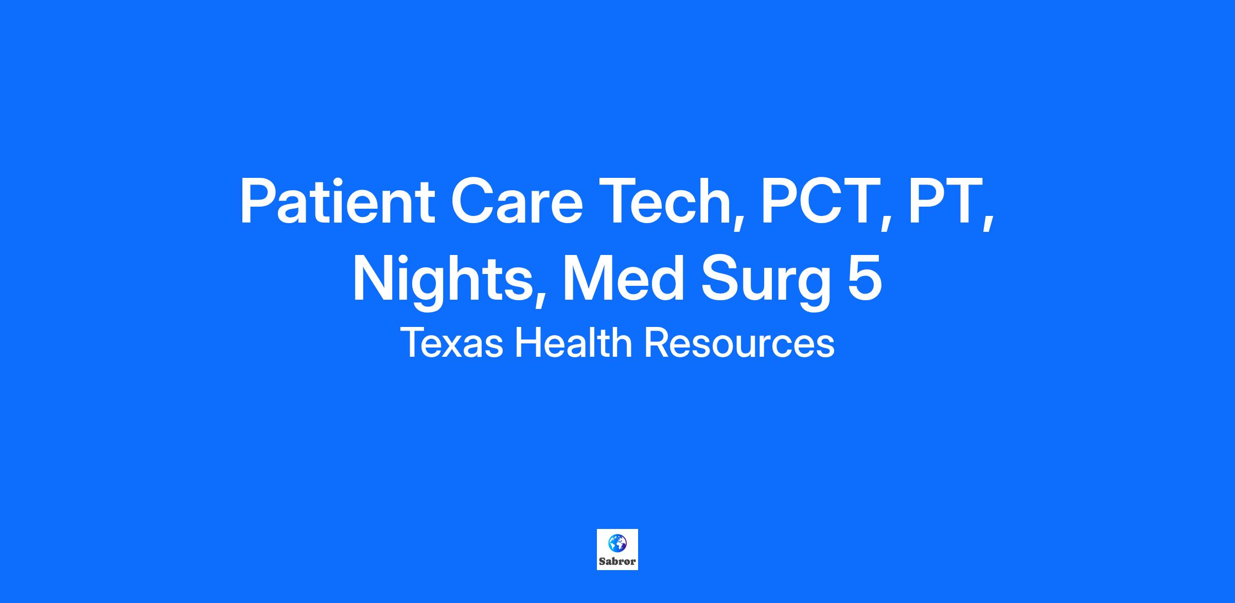 Patient Care Tech (PCT), Tower 5 Med Surg Unit Fast-paced Unit is looking for top skilled PCT. Is that you? Work location: Texas Health HEB, 1600 Hospital Parkway in Bedford, TX 76022. Work hours: Part Time, Night Shift (7p to 7a), 2 shifts, 24 hours per week. Great growth opportunity and complete benefits available. Unit highlights: · Self-Scheduling that helps with work/life balance as well as opportunities for educational and career growth · The professional PCT exhibits understanding of basic human needs as well as demonstrates recognition and understanding of patient’s affiliations. · Fast-paced, teaching environment, growth opportunity. What You Will Do Provides assistance to patient according to plan of care. • Collects patient data, identifies and reports significant findings to nurse. • Assists in admission/transfer/discharge. • Provides and Revises patient activities of daily living based on patient/family preferences. • Performs technical procedures safely and proficiently. • Takes action to reduce or eliminate patient risk. • Enters orders into computer or manual system if applicable. • Documents accurately and appropriately. • In collaboration/consultation with the nurse, adapts care to reflect patient population. • In collaboration/consultation with nurse, incorporates cultural/religious needs and beliefs into delivery of care. • Keeps patient environment clean and maintains safe environment. • Anticipates patient/family and visitor needs and takes action to meet those needs and rounds as appropriate Additional perks of being a Texas Health employee: · Benefits include 401k, PTO, medical, dental, Paid Parental Leave, flex spending, tuition reimbursement, Student Loan Repayment Program as well as several other benefits. · Great growth opportunity. · Delivery of high quality of patient care through education, nursing research and innovations in nursing practice. · Strong Unit Based Council (UBC). · A supportive, team environment with outstanding opportunities for growth. Texas Health HEB is a 252-bed, acute-care, full-service hospital serving our community since 1973. Our location in the DFW mid cities area provides convenient care to the residents of Hurst, Euless, Bedford and the surrounding communities. We specialize in women’s services, perioperative services, heart and vascular care, acute care/med surg, intermediate care/step-down, oncology and emergency medicine. Additional specialties include nuclear medicine, interventional radiology, respiratory therapy, and neuroscience care, including neurosurgery and stroke. Texas Health HEB is ANCC Magnet Designated, Joint Commission-certified in Chest Pain (PHAC), a Primary Stroke Center, a Level III Trauma Center, Level II NICU and Level III for maternal care. We’re a top choice in North Texas for emergency services, surgical services, women’s health, cardiac care and much more. Learn more about our culture, benefits, and recent awards. Do you still have questions or concerns? Feel free to email your questions to recruitment@texashealth.org. Here’s What You Need · High School Diploma or Equivalent (GED) · CLIAFE - Must comply with CLIA regulations regarding foreign education equivalency required, if applicable. · Current TX CNA or PCT training with NHA, NAHP or NCCT or an accredited community college program or a THR approved program or · Current EMT for TX or · Military experience with medical training equivalent (Equivalent to EMT-B) or · 1 year of applicable PCT experience in lieu of an active and approved certification or · Nursing student who has completed fundamentals or foreign nurse degree program. · Previous hospital experience is preferred. · BCLS - Basic Cardiac Life Support prior to providing independent patient care and maintained quarterly · CPI - Crisis Prevention and Intervention Training within 60 days of hire required.