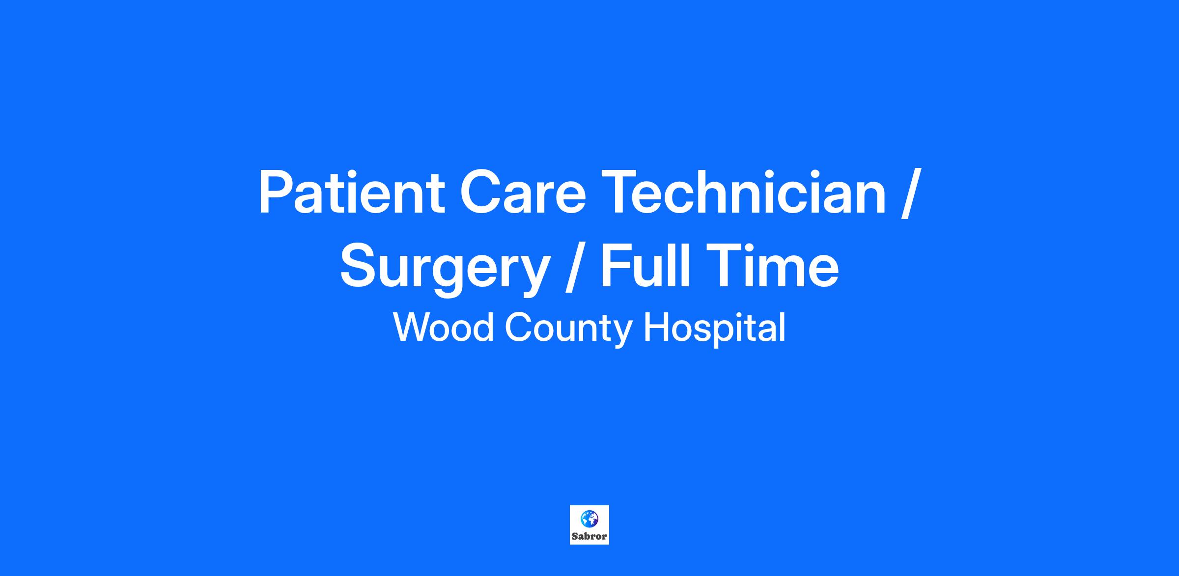 Elevate your career at Wood County Hospital, where you're not just a number – you're a vital part of a team making a real difference. Patient Care Technician / Surgery / Full Time Delivers direct/indirect care to patients of all ages from neonate, infant, pediatric, adolescent, and adult to geriatric, under the delegation/direction/supervision of a physician, registered nurse, and/or licensed practical nurse. Assists in maintaining a safe, clean environment and performs clerical/administrative functions as assigned. Demonstrates critical thinking/clinical reasoning in decision making to assure the delivery of safe, quality, timely, compassionate, and cost-effective care to the patient populations served by the department(s)/unit(s)/area(s).Effectively communicates and collaborates both intra- and interdepartmentally with patients, families, physicians, administration and other healthcare team members. Documents accurately and in a timely manner. Adheres to organizational policies and procedures; and regulatory/ accrediting body requirements. Job Duties: Provides/assists with and accurately documents patient monitoring. Provides/assists with and accurately documents activities of daily living (ADLs) Changes bed linens and straightens/organizes the patient’s room throughout shift; provides extra linens, blankets, as needed; safeguards personal items. Transports patients Accurately documents the appropriate set-up, use, adjustment, application, discontinuation, and/or cleaning of patient care equipment. Minimum Requirements: Minimum Education/Experience: High School Diploma or Equivalent Minimum Certification: Current American Heart Association (AHA) Healthcare Provider CPR (BLS) certification required. Preferred Certification/License: STNA, Medical Assistant, or CNA preferred. Preferred Experience: Previous neonatal, pediatric, adolescent, adult, and/or geriatric patient care experience preferred. Benefit Summary: Join our team, and you’ll have access to a cutting-edge facility with state-of-the-art technology. You’ll also interact with some of the region's top notch healthcare professionals. You’ll find plenty of opportunities to grow and advance your career. We’ll also reward your hard work with: Great health, dental and vision plans Competitive wages Prescription drug coverage Flexible spending accounts Life insurance w/AD&D Generous short term and long-term disability plans Employer-matched 403(b) Employer sponsored cash balance pension plan. Vacation and Holiday time. Generous tuition reimbursement And a lot more! *Questions? Text or call 419-601-1956*