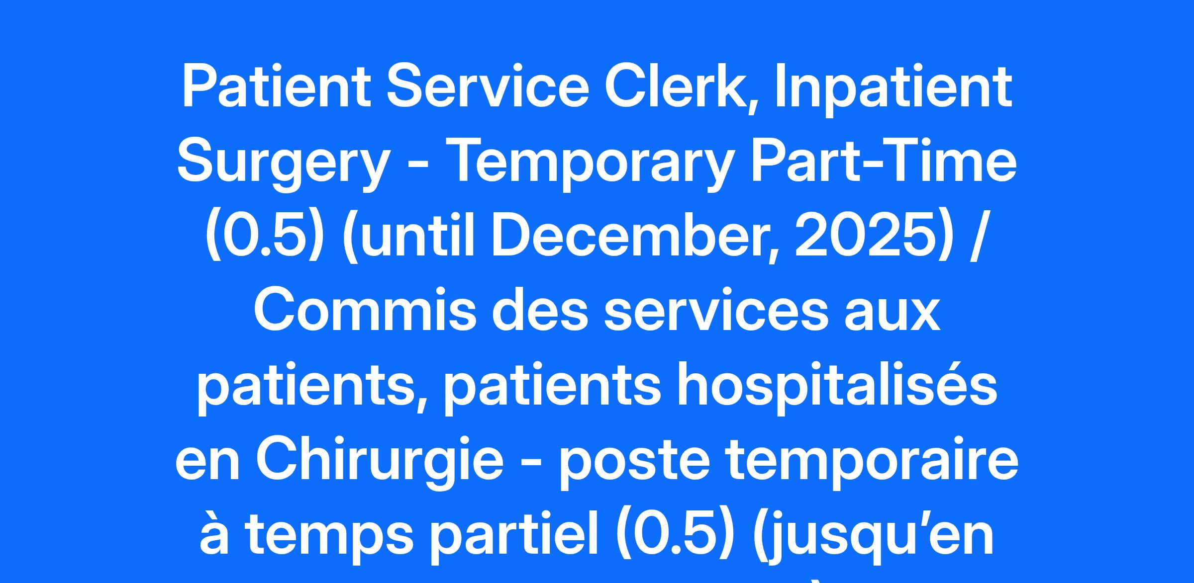 Compensation Pay Range: $25.26-$31.04 Job Description: Please Note: If you are a current CHEO employee with access to Workday, please apply to this posting via the Workday application as an internal applicant. To successfully apply for this position, please submit your application by 11:59 pm the day before the advertised closing date in the posting to ensure your application is received. Ottawa is built on un-ceded Algonquin Anishinabek territory. The peoples of the Algonquin Anishinabek Nation have lived on this territory for millennia and we honour them and this land. Their culture and presence have nurtured and continue to nurture this land. CHEO also honours all First Nations, Inuit and Métis peoples and their valuable past and present contributions to this land. CHEO is one of the few stand-alone, global leaders in pediatric health and is home to more than 6,500 staff, clinicians, scientists and researchers, as well as volunteers – all of whom work together to help children and youth achieve their best lives. Within its own walls and through partnerships with community providers, CHEO has transformed from a 20th century acute care hospital into a 21st century integrated child and youth health system. Ranked in the top 1% of Canadian hospitals for the digitization of its clinical infrastructure, CHEO combines excellence in clinical care, research, and education to advance seamless care that’s provided where, when, and how it is needed. CHEO’s Research Institute is dedicated to world-class clinical, translational, and basic science research covering a wide range of children’s health concerns. CHEO has been named Canada’s best health-care employer by Forbes in 2024 and 2025 and is ranked second among Canadian hospitals on its list of Canada’s Best Employers for multiple consecutive years. For the 14th consecutive year in a row, the editors of Canada's Top 100 Employers has recognized CHEO as a top employer in the National Capital Region. Every year CHEO helps more than 500,000 children and youth from Eastern Ontario, western Quebec, Nunavut and Northern Ontario. POSITION SUMMARY The Patient Service Clerk schedules patient appointments and registers patients; prepares patient charts; maintains patient lists; verifies billing slips; maintains inventory and performs other clerical tasks. MAIN RESPONSIBILITIES Patient Registration: Create new patient profiles in EPIC Patient registration in Cadence (Epic Hyperspace) in accordance to registration standards Referral Management Input electronic referrals in Epic Referral Management and update referrals according to triage Scan referrals into Epic with appropriate naming convention Patient Scheduling Schedule new patients from workqueues according to priority and wait times. Schedule return patients from recall list and follow-up workqueues according to required follow-up date Schedule interpreters for families as required Schedule clinic orders and manage order workqueues Clinic check-ins Greet patient and parent(s). Verify demographic information in accordance to registration procedures. Interpret MOH Eligibility and make updates in patient record accordingly Collect self-pay payment and complete Fee For Service form Collect fees as required Clinic check-outs Complete check-outs and schedule follow up appointments or put patients on recall lists/ workqueues Monitoring patient lists and workqueues Monitor all workqueues and recall lists associated within primary area of work to ensure quality and advise supervisor of outliers and changes to the waitlist In consultation with clinical staff , implement visit cancellation and rebooking, Patient and family centered care Receive incoming telephone calls and respond to patient inquiries. Contact clinic physicians, nurses and allied health team members as appropriate to manage inquiries. Communication with clinical team through Inbasket Telephone communication and telephone messaging within CHEO established policies/procedures Telephone pre-visit screening for infection control Utilize Epic to notify clinicians of patient arrival Appointment confirmation and follow-up from automated system Patient/family direction and public relation Direct patients/families to a designated location within the hospital Supporting clinic operations Request patient files from medical records, as appropriate. Ensure that progress notes and sheets are available and stamped with the right date, where required. Pick up patient charts in medical records on a daily basis, where required. Ensure that all charts are available and request missing ones. Maintain an inventory of stock. Maintain filing. Ensure orders with notes are filed. Locate old charts as appropriate. Maintenance and ordering of clinic supplies. Facilitation of clerical duties related to equipment repairs including filling of special form and taking the equipment to the appropriate location Retrieve labels for specimens. Training and Orientation Orientation of volunteers Orientation of clerical staff to clinics and on Epic Adherence to policies, procedures and standards Perform work in accordance with the provisions of the Occupational Health and Safety Act and Regulations and all CHEO corporate/departmental policies and procedures related to Occupational Health and Safety. Perform work in accordance to CHEO privacy and confidentiality policies Perform work in accordance to Epic training and documented standards Attend staff meetings when scheduling allows and review circulated minutes Perform other related duties as assigned by supervisor. QUALIFICATIONS Criminal Record Check (Essential) Secondary School Graduation Diploma (Essential) Bilingualism (English/French) (Essential) Approximately 6 months of related experience (Essential) Knowledge of computer software (Epic, Sunrise, Outlook,) (Essential) Experience working in a clinical environment live on Epic Ambulatory (Preferred) Experience in patient registration using Cadence (Epic) Preferred)