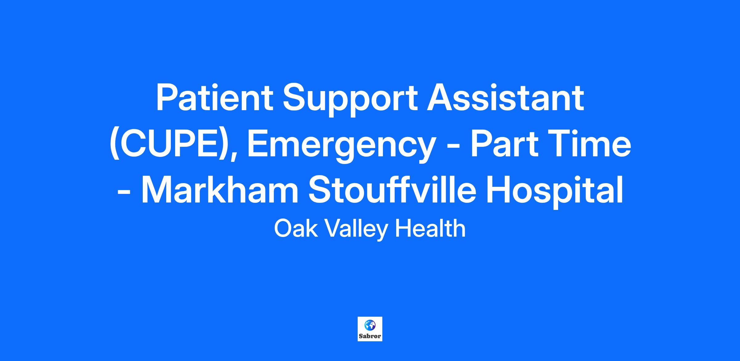 Please Note: If you are a current Oak Valley Health employee, apply to this job via the internal Workday application. Land acknowledgement: Oak Valley Health is honoured to provide care on the traditional and treaty territory of the Anishinaabeg, and acknowledge our closest Indigenous communities, the Chippewas of Georgina Island and the Mississaugas of Scugog Island. The land is encompassed within Treaty 13, Treaty 20, and the Williams Treaty. Today, this area is home to many diverse Indigenous Peoples, and we acknowledge the health disparities and barriers Indigenous Peoples face in accessing care. To support true healing, we are committed to understanding these challenges, learning from Indigenous knowledge, and taking action together to improve safe and equitable health care for current and future generations. Who you are: You encompass Oak Valley Health’s core values and live the words of respect, trust, commitment, compassion and courage You are a patient and/or client centered individual who performs at an exemplary standard You are a team player with excellent communication, critical thinking and prioritization skills Posting Closing Date: October 3rd What we are looking for: As a patient support assistant, you will work in partnership with the RN and RPN to provide patient care and will become an integral member of the interprofessional team. The focus is on quality and patient/family centred care with a strong emphasis on customer satisfaction. The responsibilities include assisting the patient with the basic activities of daily living, e.g. bathing, nutrition, positioning and ambulation. In addition, you will be responsible for non-patient care support duties including stocking treatment areas and carts, maintaining linen supplies and the cleanliness of the patient rooms (for admission and discharge), utility rooms, nursing station, tub and shower rooms and patient care equipment. As an effective team member you will utilize your strong communication skills and be actively involved in quality management initiatives. Physical Demands: Frequent moderate and heavy exertion (e.g. pushing stretchers, wheelchairs, etc.) Lifting over 60 lbs. What you bring to the role: Completion of a recognized personal support worker certificate or health care aide program from a community college or equivalent education Emergency Department experience is preferred Current BCLS certification Previous related experience, preferably in an acute care facility Proficient computer and documentation skills Knowledge of universal precautions and medical terminology an asset Strong customer service, interpersonal and written and verbal communication skills Demonstrated ability to work well independently and as part of an interprofessional team Strong organizational skills and the ability to prioritize workload Demonstrated good attendance and performance records with the ability to maintain these same standards Demonstrates a commitment to a healthy and safe workplace for self and others (staff, patients, families, etc.) by taking all reasonable precautions and working in compliance with hospital related policies, health and safety legislation and best practices and completing relevant mandatory education as required Work Schedule: The successful candidate would be required to work 12 hour shifts: Days ( 0730-1930), Evenings (1000-2200) Nights (1930-0730). Please note schedules may change due to operational needs. Compensation: CU01A Range: $27.86 - $30.61 Who we are: Oak Valley Health is one of Ontario’s leading community healthcare organizations. Across our two hospital sites (Markham and Uxbridge) a Reactivation Care Centre (RCC), a Community Health Centre (CHC), and Hospital-to-Home programs, we provide high quality, patient-centred care to more than 468,000 patients each year. We offer diagnostic and emergency services, and deliver clinical programs in acute care medicine and surgery, addictions and mental health, and childbirth and children’s services. We are also proud to be part of the Eastern York Region North Durham Ontario Health Team (OHT). Our 542 physicians, 35 midwives, over 3,000 staff and 1,000 volunteers serve patients and families with an Honoured to Care mindset, and are focused on delivering an extraordinary patient experience to the residents of Markham, Whitchurch-Stouffville, Uxbridge and beyond. We are dedicated to providing access to the right care, at the right time, in the right place by the right people and at the right cost. Oak Valley Health Equity, Diversity, Inclusion and Belonging statement Oak Valley Health takes pride in serving some of Canada’s most diverse communities. We are committed to fostering an environment of equity and inclusivity where every person can work and receive care safely, openly and honestly. All qualified applicants will receive consideration and we encourage applications from Indigenous peoples, members of LGBTQ2+ communities, members of racialized groups, persons with disabilities, and all others who may contribute to the further diversification of Oak Valley Health. Furthermore, Oak Valley Health is committed to meeting the needs of all individuals in accordance with the Accessibility for Ontarians with Disabilities Act (AODA) and the Ontario Human Rights Code. Should you require accommodations during the recruitment and selection process, please contact Human Resources. We are honoured to be recognized as one of Forbes Canada's Best Employers for Diversity. We ranked within the top 150 organizations across the country. Learn more about our commitment to EDIB. Oak Valley Health is one of Ontarioʼs leading community health care organizations. Across our two hospitals, Markham Stouffville Hospital and Uxbridge Hospital, as well as our Reactivation Care Centre, we deliver safe, high-quality care to more than 441,000 patients annually through diagnostic and emergency care services, clinical programs in acute care medicine and surgery, addict