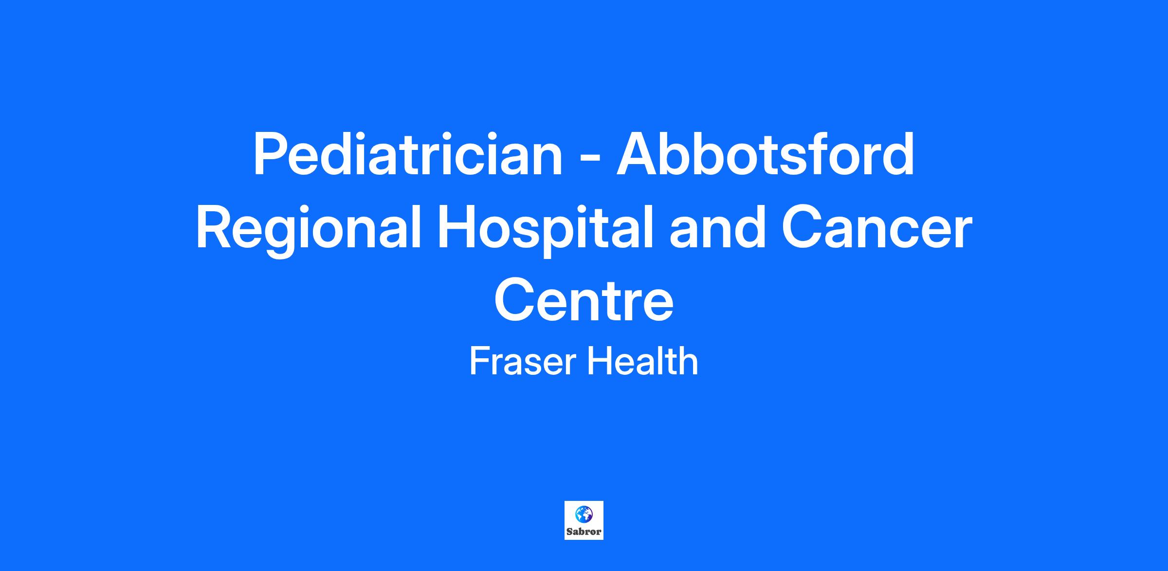 Job Summary The Fraser Health Authority (FHA), British Columbia's and Canada’s largest and fastest growing health authority, is seeking a qualified 1.0 FTE Pediatrician to join the medical staff at the Abbotsford Regional Hospital & Cancer Centre (ARHCC) providing urgent pediatric services. This opportunity is designed to expand the existing community based pediatric practice at ARHCC. Applications from new graduates are welcome, and mentoring will be provided over two years to those applicants. As a member of the Fraser Health medical staff, you will participate in the University of British Columbia (UBC) medical education program and are expected to apply for a clinical faculty appointment in the Division of Pediatrics, UBC. The successful applicant will be expected to establish a practice in the area, and there is also the opportunity to participate in FHA subspeciality clinics. We work closely with surrounding hospitals, ensuring that children and youth living in the nearby areas have access to pediatric inpatient services. We have worked diligently to develop seamless local and provincial partnerships with the pediatric tertiary referral centre at BC Children’s Hospital and other local hospitals. Rapid population growth with family housing requires ongoing recruitment and service expansions to our program. Provisional license is acceptable and supervision available for US board certified physicians. Interested candidates may submit a letter of interest, a copy of your CV, and three reference letters or referee contact information by no later than November 1, 2025. Anticipated start date: February 1, 2026 or sooner. Compensation Fee for Service, MOCAP - On Call Payments Qualifications CMPA, CPSBC Eligible, FRCPC Eligible, NRP, PALS Locations Abbotsford Regional Hospital and Cancer Centre About Fraser Health Fraser Health is the heart of health care for over two million people in Metro Vancouver and the Fraser Valley in British Columbia, Canada, on the traditional, ancestral and unceded lands of the Coast Salish and Nlaka’pamux Nations and is home to 32 First Nations within the Fraser Salish region. People - those we care for and those who care for them - are at the heart of everything we do. Our hospital and community-based services are delivered by a team of 54,000+ staff, medical staff and volunteers. We are committed to planetary health and value diversity in the work force. We strive to maintain an environment of respect, caring and trust. Fraser Health’s hiring practices aspire to ensure all individuals are treated in an inclusive, equitable and culturally safe manner. Together, we are the heart of health care. Instagram | Facebook | LinkedIn | X | Indeed | Glassdoor IMPORTANT: Recruitment scam warning Please be on alert for recruitment scams. We are aware of several scams targeting individuals by falsely claiming to represent Fraser Health. Always take precautions when sharing personal details with unverified sources. Please note that we will never ask for money or payment, nor ask you to download or install an app at any point during our recruitment process.