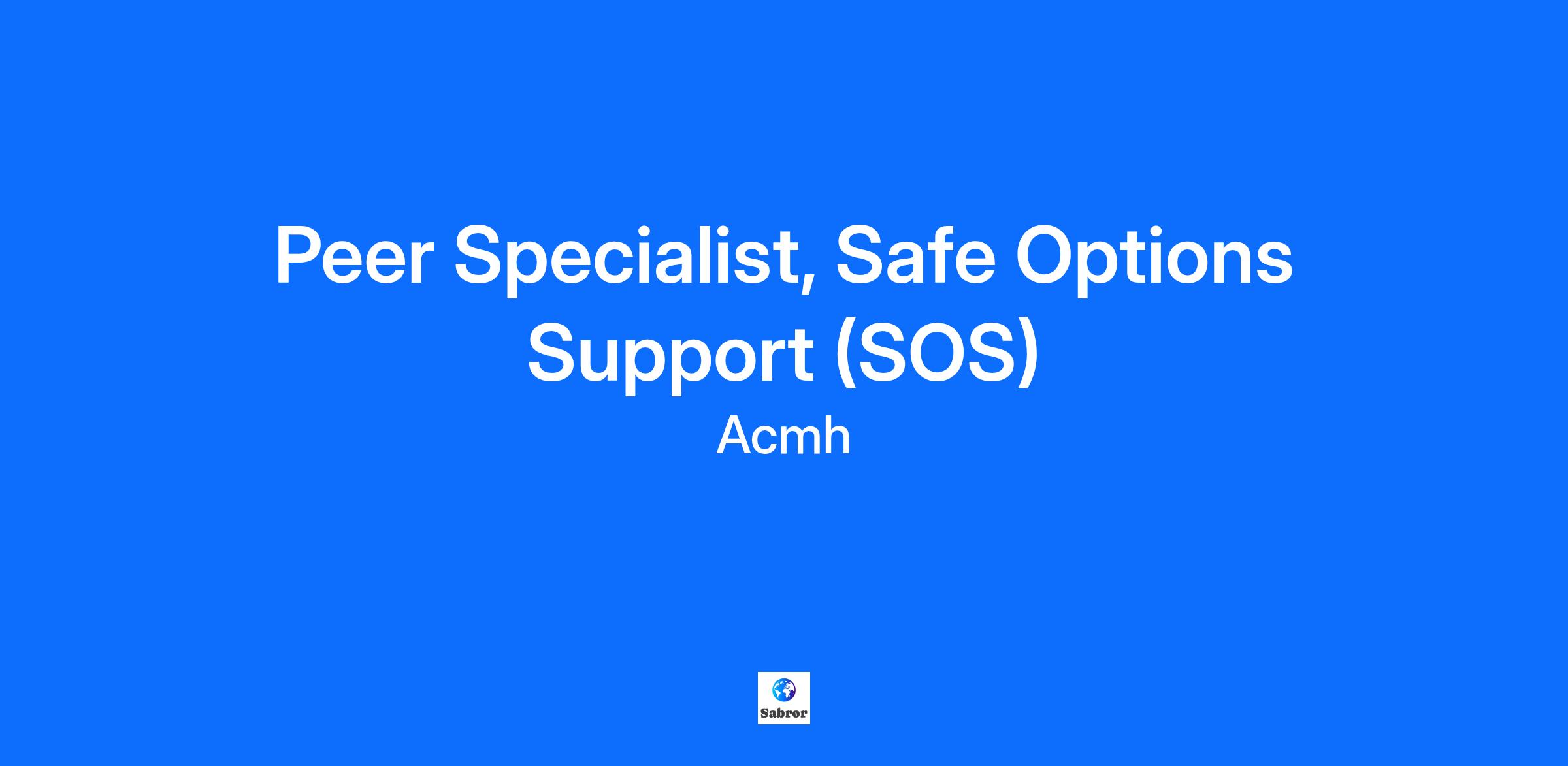 Position: Peer Specialist, Safe Options Support (SOS)