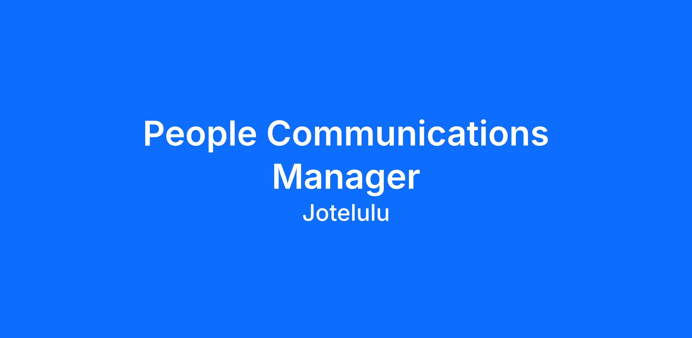 This role thrives on collaboration. You’ll work closely with People Business Partners, Workplace, Leadership, and Marketing to align internal and external narratives, support organizational change, and build a consistent, authentic employer value proposition. From All Hands to internal campaigns, from employee stories to employer branding initiatives, your work will shape how Jotelulu is experienced from the inside out.