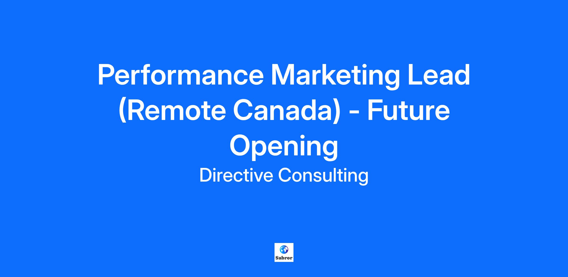 Performance Marketing Lead (Remote Canada) - Future Opening