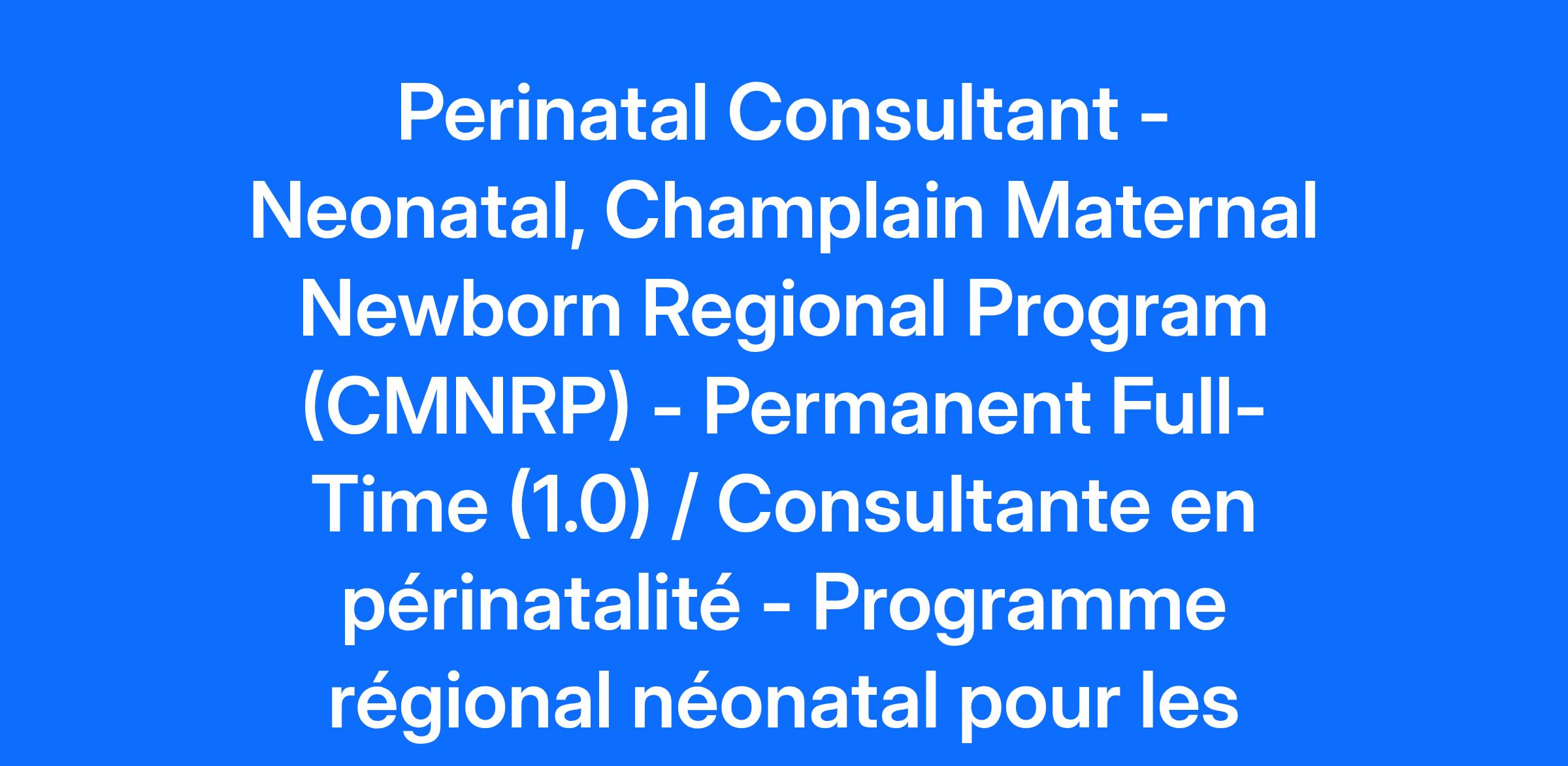 Compensation Pay Range: $43.10-$62.40 Job Description: Please Note: If you are a current CHEO employee with access to Workday, please apply to this posting via the Workday application as an internal applicant using the Jobs Hub. To successfully apply for this position, please submit your application by 11:59 pm the day before the advertised closing date in the posting to ensure your application is received. Ottawa is built on un-ceded Algonquin Anishinabek territory. The peoples of the Algonquin Anishinabek Nation have lived on this territory for millennia and we honour them and this land. Their culture and presence have nurtured and continue to nurture this land. CHEO also honours all First Nations, Inuit and Métis peoples and their valuable past and present contributions to this land. CHEO is one of the few stand-alone, global leaders in pediatric health and is home to more than 6,500 staff, clinicians, scientists and researchers, as well as volunteers – all of whom work together to help children and youth achieve their best lives. Within its own walls and through partnerships with community providers, CHEO has transformed from a 20th century acute care hospital into a 21st century integrated child and youth health system. Ranked in the top 1% of Canadian hospitals for the digitization of its clinical infrastructure, CHEO combines excellence in clinical care, research, and education to advance seamless care that’s provided where, when, and how it is needed. CHEO’s Research Institute is dedicated to world-class clinical, translational, and basic science research covering a wide range of children’s health concerns. CHEO has been named Canada’s best health-care employer by Forbes in 2024 and 2025 and is ranked second among Canadian hospitals on its list of Canada’s Best Employers for multiple consecutive years. For the 14th consecutive year in a row, the editors of Canada's Top 100 Employers has recognized CHEO as a top employer in the National Capital Region. Every year CHEO helps more than 500,000 children and youth from Eastern Ontario, western Quebec, Nunavut and Northern Ontario. Please note, this role involves frequent travel in the Ontario Health East region to provide education and training. POSITION SUMMARY The Champlain Maternal Newborn Regional Program (CMNRP) is a regional network, hosted by CHEO, whose goal is to strengthen relationships among maternal-newborn healthcare providers and other related organizations, with the overarching goal of improving health outcomes and experiences for pregnant people and newborns within the Ontario Health East Region. The CMNRP team collaborates with health care providers, leaders, and organizations on many initiatives at the regional, provincial, and national levels toward the provision of quality perinatal and newborn care. The Perinatal Consultant is a member of a dynamic professional team whose mission is to support continuous quality improvement and excellence in perinatal and newborn care in Ontario Health East. The Perinatal Consultant - Neonatal is an experienced advanced practice nurse and Masters prepared clinician focused on leading the development and implementation of clinical standards and best practice guidelines in collaboration with regional, provincial, national, and international interest holders to drive system level improvement to care. Key responsibilities include participating in research, analyzing and interpreting research and data, conducting in-depth literature reviews, formulating recommendations based on evidence, program evaluation and providing education and training. The location of work is a hybrid between the CMNRP office and home. The ratio of time at each location is based on operational need. MAIN RESPONSIBILITIES Develop and implement clinical standards and best practice guidelines in collaboration with regional, provincial, national, and international interest holders. Analyze and interpret data and research findings, conduct in-depth literature reviews, and formulate recommendations based on evidence. Assume a leadership and mentorship role in influencing clinical practice and the provision of quality care. As a clinical subject matter expert, respond to requests for information, conduct program reviews, case reviews, site visits, education, and training. Promote evidence-based care, lead the adoption of best practice standards and facilitate access to clinical resources, best practice guidelines, and standards of practice. Develop collaborative relationships with health care professionals across all relevant disciplines and sectors and participate in related networks and programs. Collaborate with interest holders to develop, implement, and evaluate a regional perinatal professional development program based on standards of practice, required skills and competencies. Collaborate with stakeholder to develop and provide specialized in-services or education sessions based on practice updates and identified needs. Lead communities of practice, committees, and working groups. Plan, develop, implement, and evaluate core activities, projects, or programs aligned with the regional network strategic plan. Participate in regional, provincial, and national initiatives that complement program activities. Participate in the development and implementation of funding proposals, research projects, and quality improvement projects. Share knowledge, skills, and subject matter expertise to support the implementation of the regional network strategic plan and related program activities. Contribute to the development of the regional network strategic plan. Perform work in accordance with the provisions of the Occupational Health and Safety Act and Regulations and all CHEO corporate/departmental policies and procedures related to Occupational Health and Safety. Perform other related duties as required. QUALIFICATIONS Criminal Record Check (CRC) (Essential) Bilingualism (English and French) (Preferred) Access 