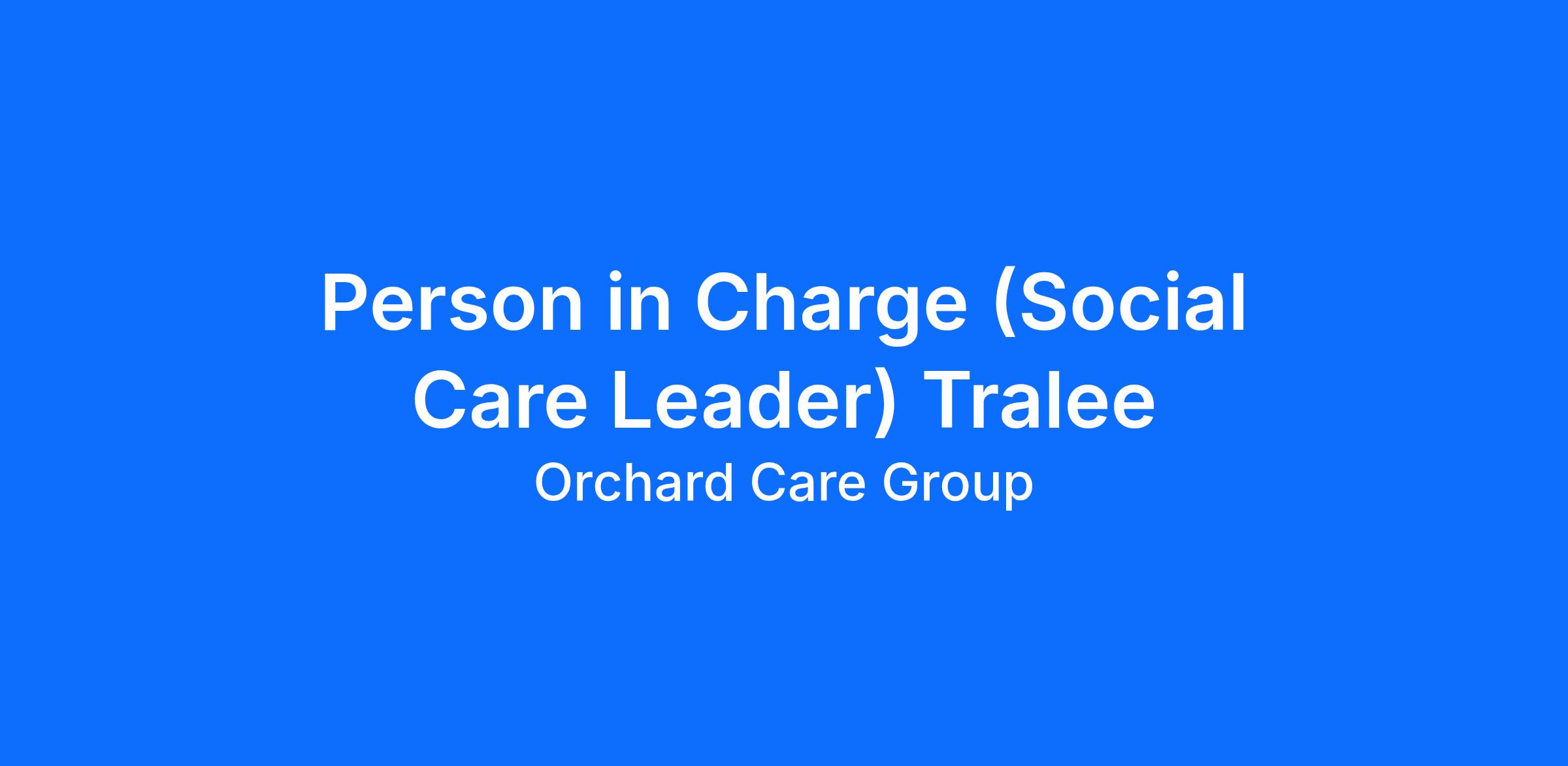 As Person in Charge in our Tralee Orchard Community Care services, you will play a crucial role