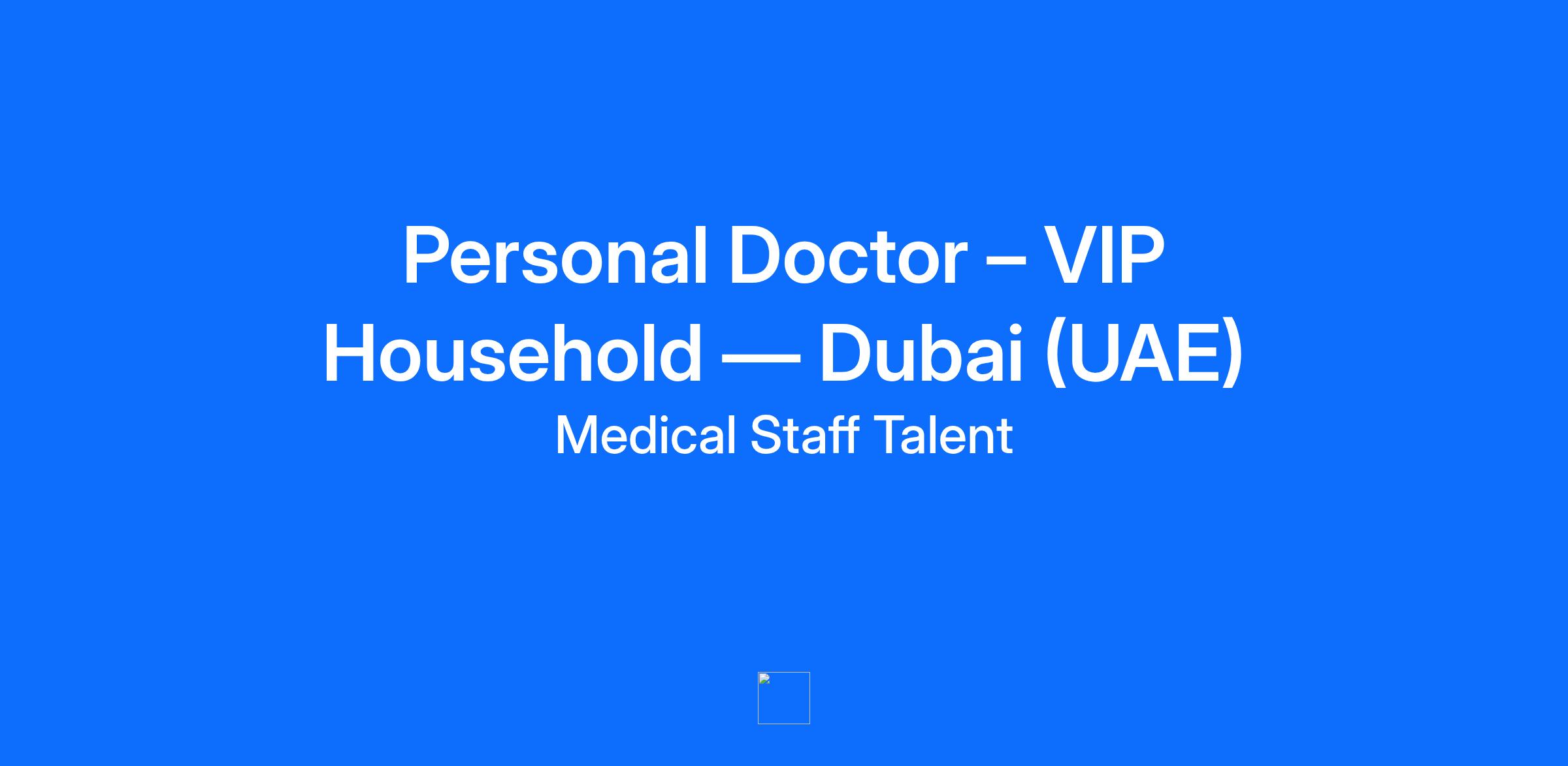 Personal Doctor – VIP Household — Dubai (UAE)