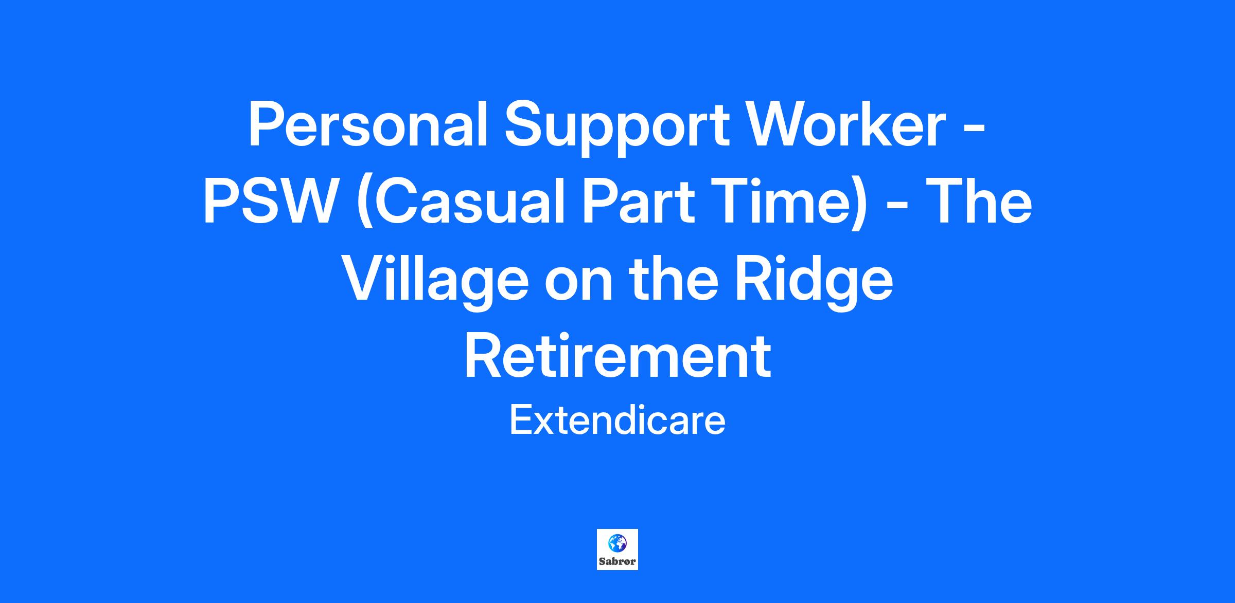 Personal Support Worker - PSW (Casual Part Time) - The Village on the Ridge Retirement